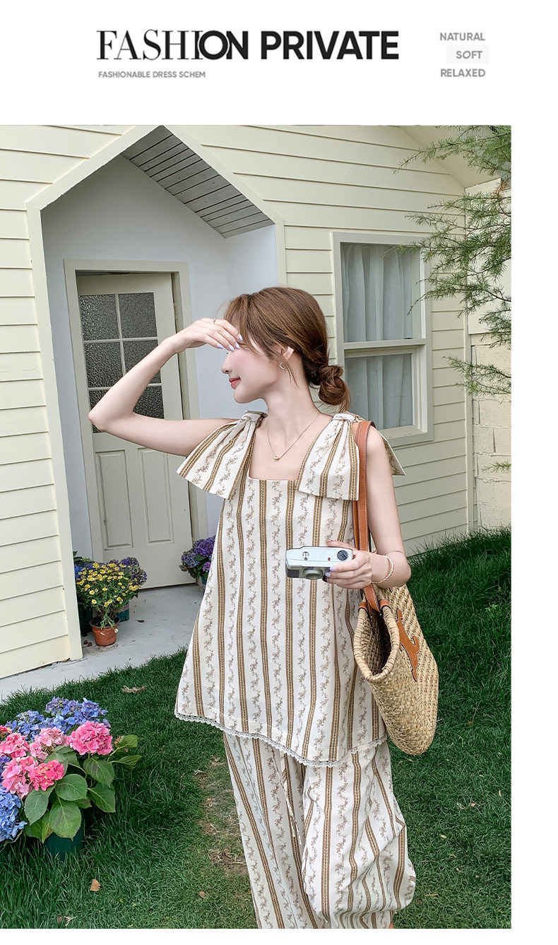 【商品名】【ボトムス】ストライプ柄キャミソール+ワイドパンツ セットアップ 夏 フレンチリゾート風【SHシリーズ】
