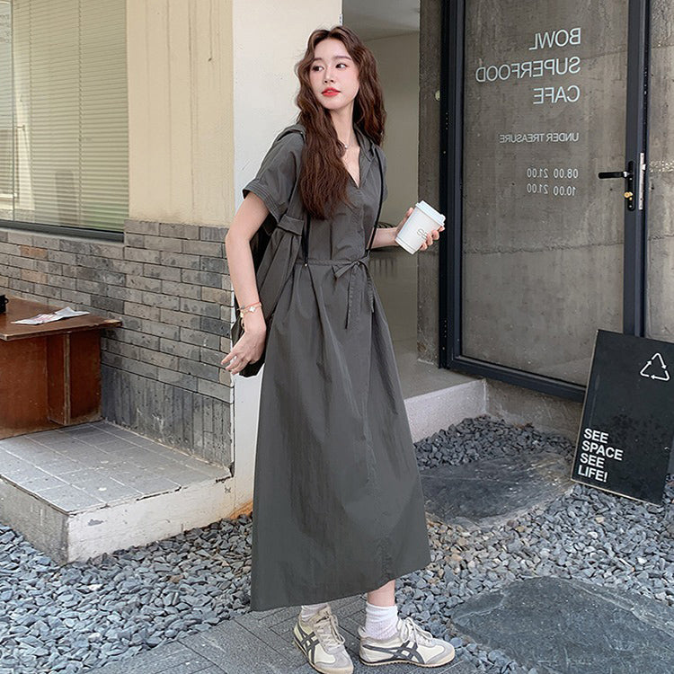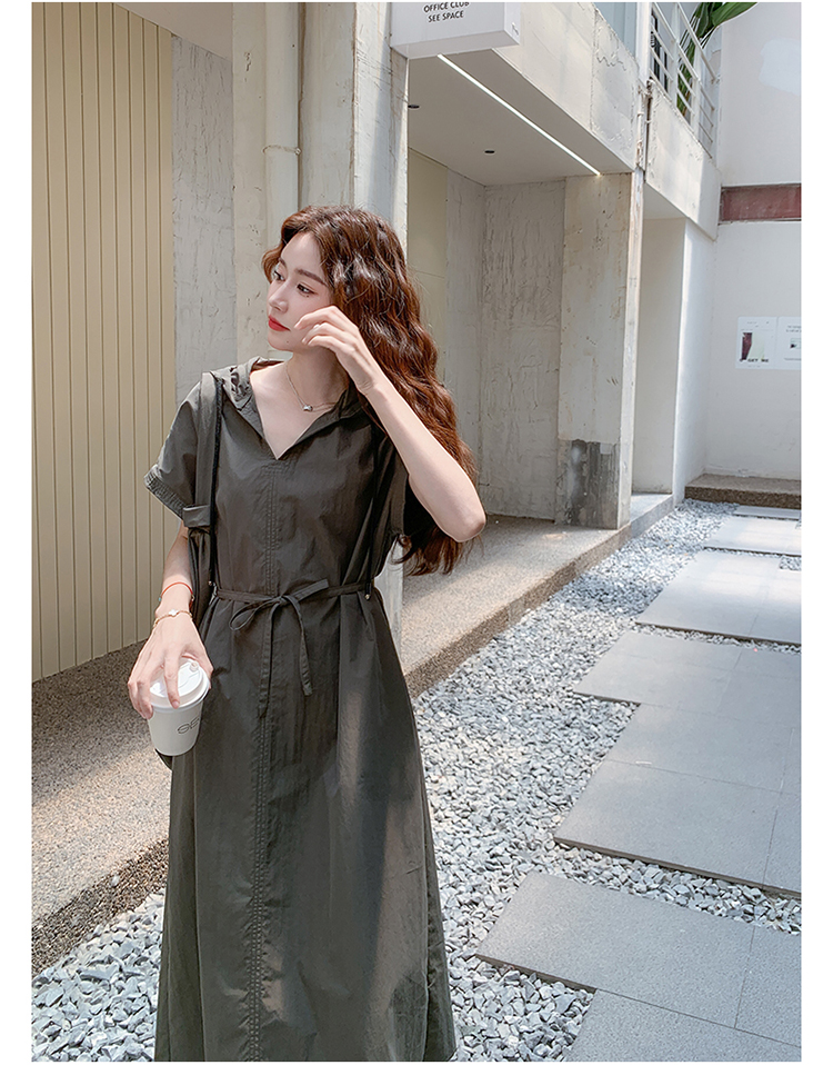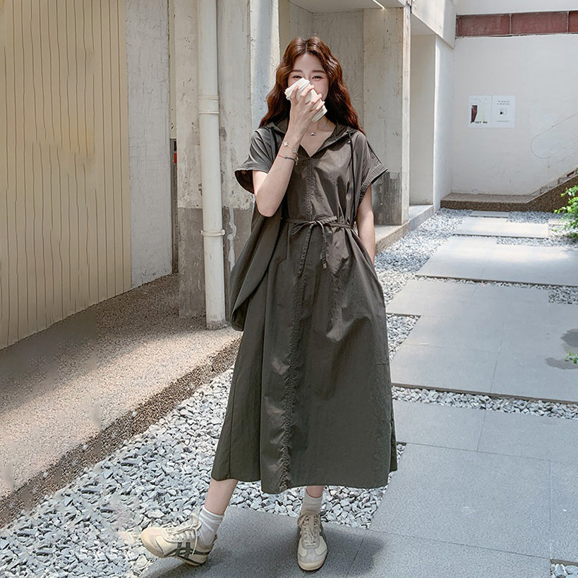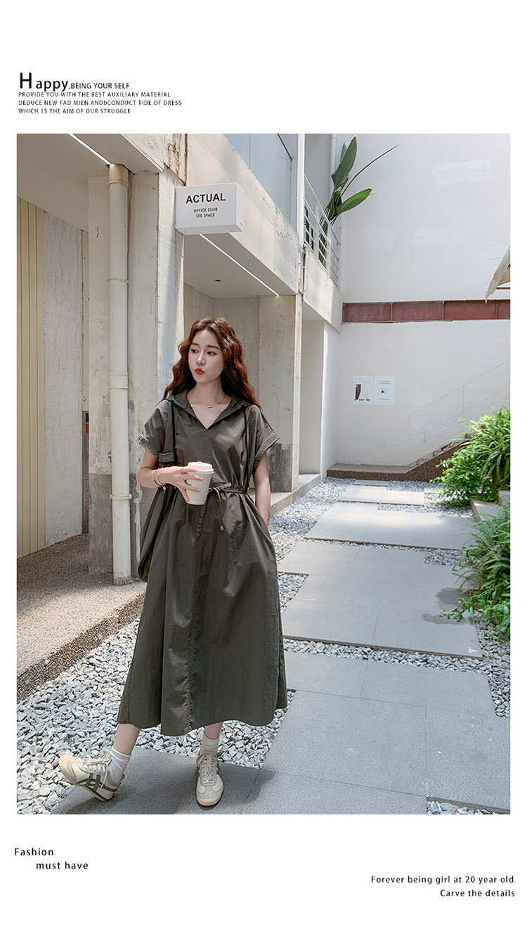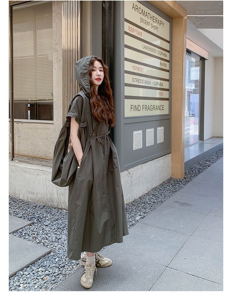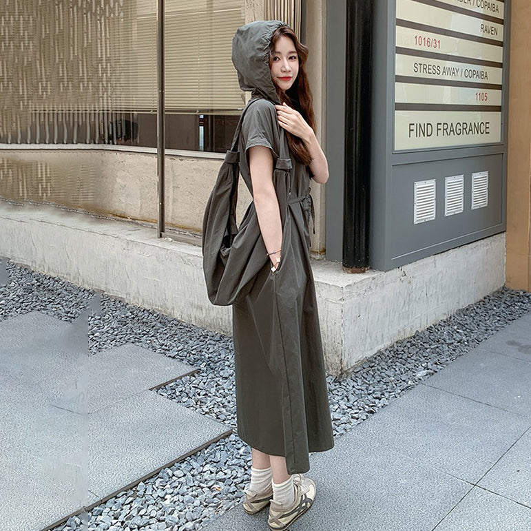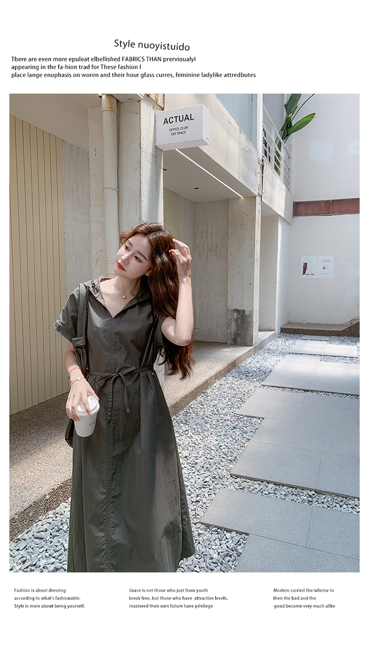 【ワンピース】今季大注目 アメカジ感漂う 半袖 ワークワンピース フード付きロング丈 夏【JZシリーズ】