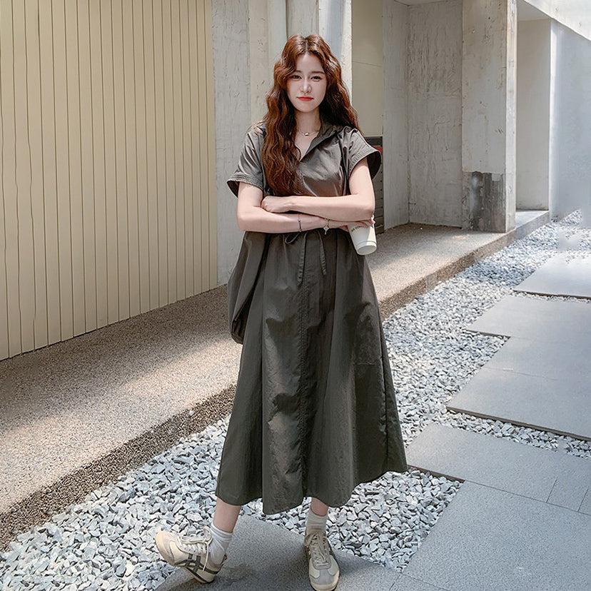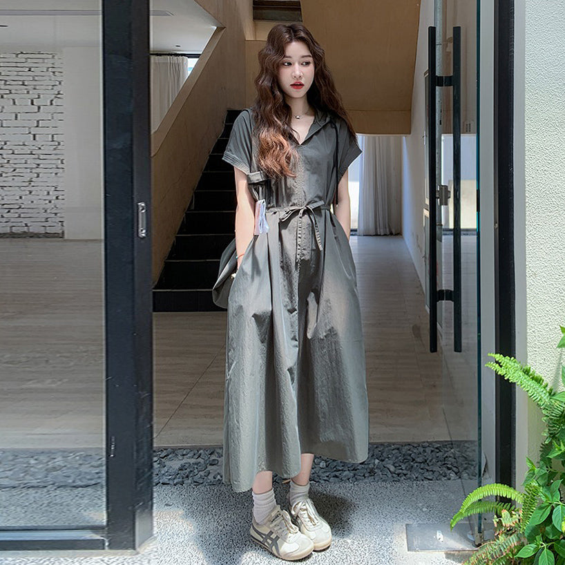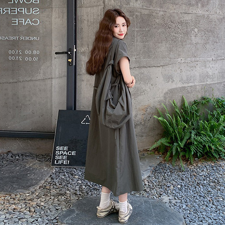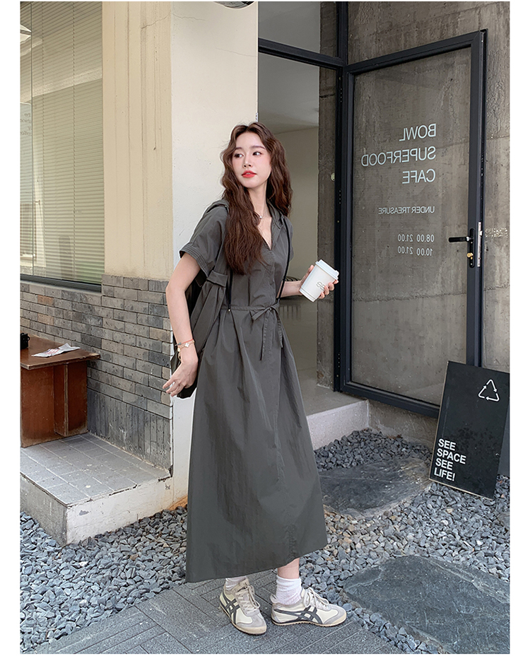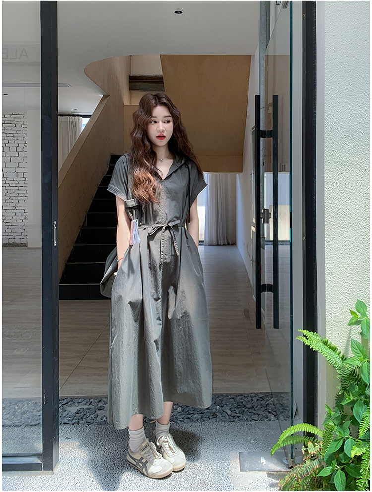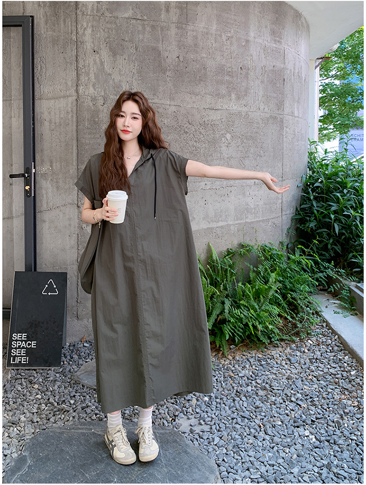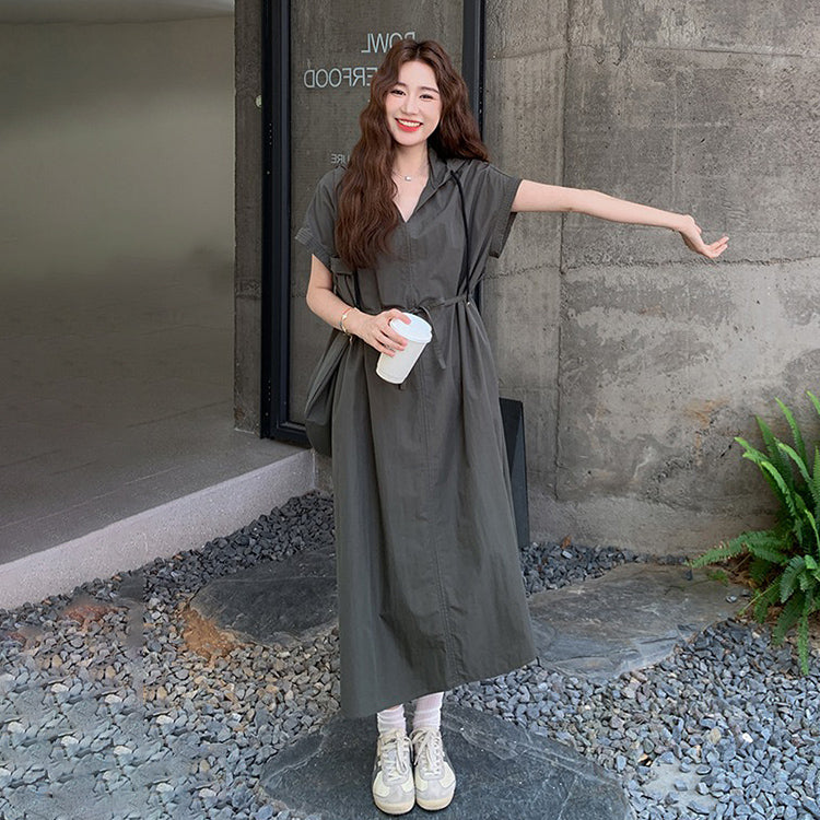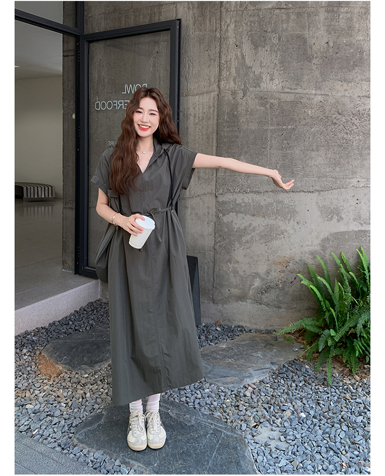 【ワンピース】今季大注目 アメカジ感漂う 半袖 ワークワンピース フード付きロング丈 夏【JZシリーズ】