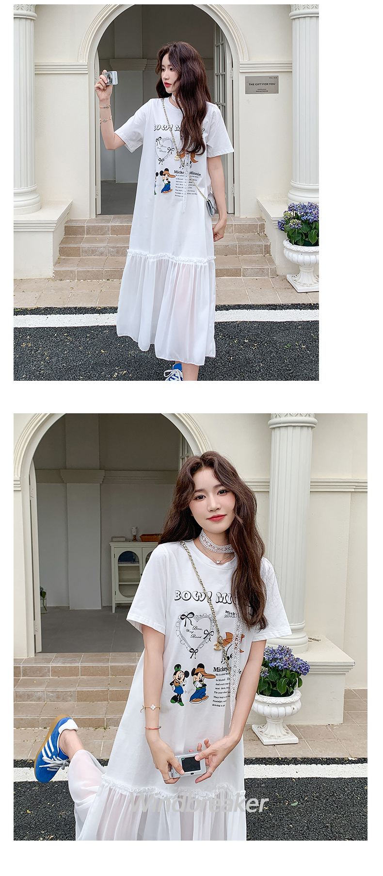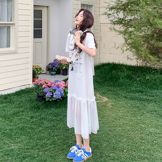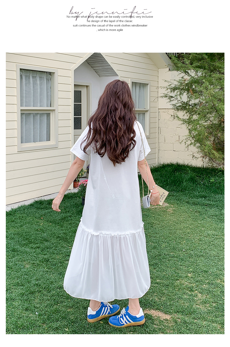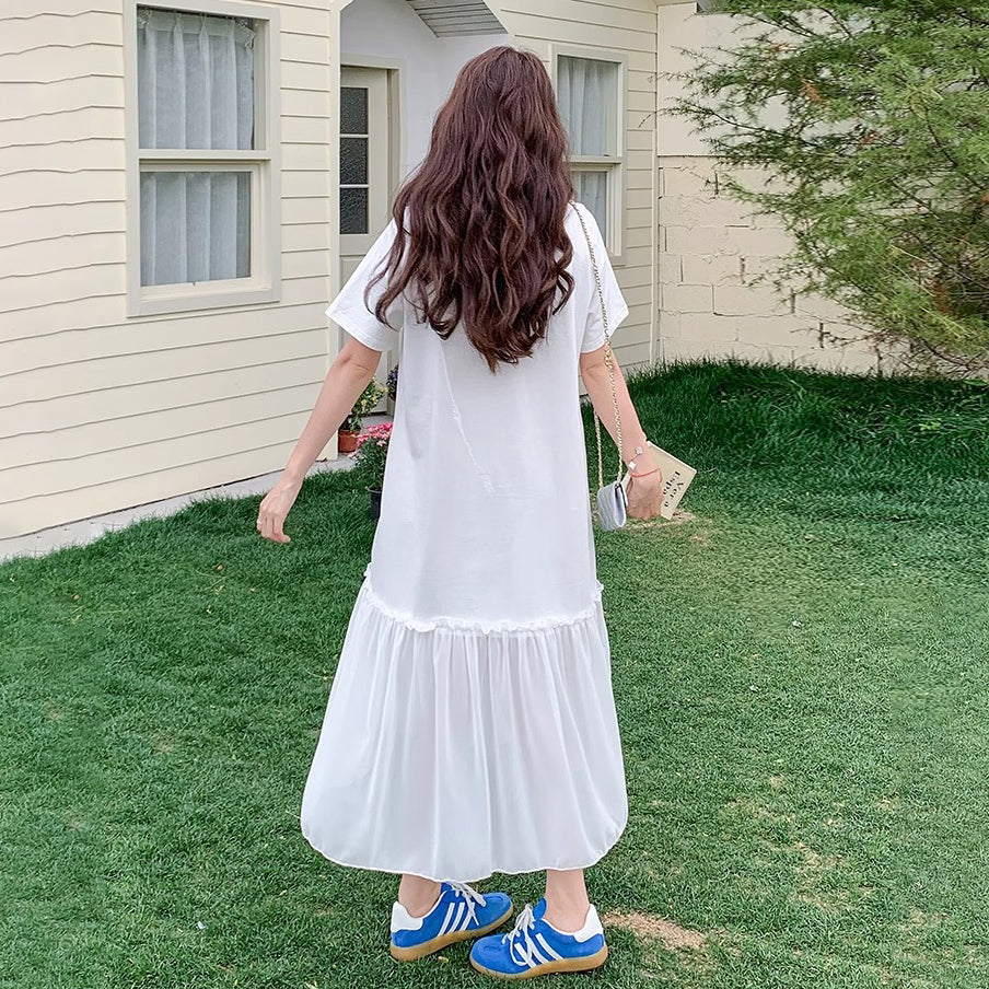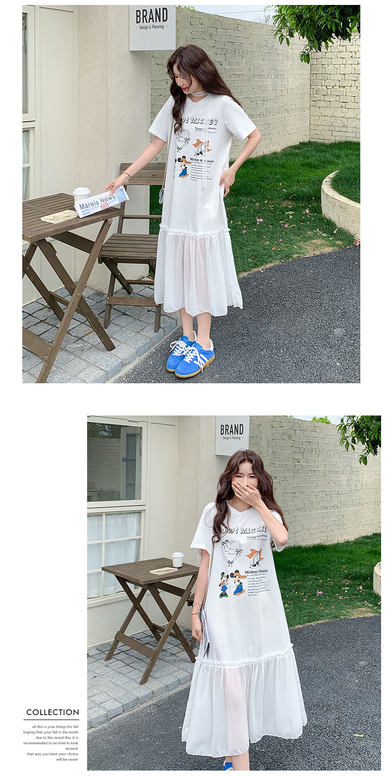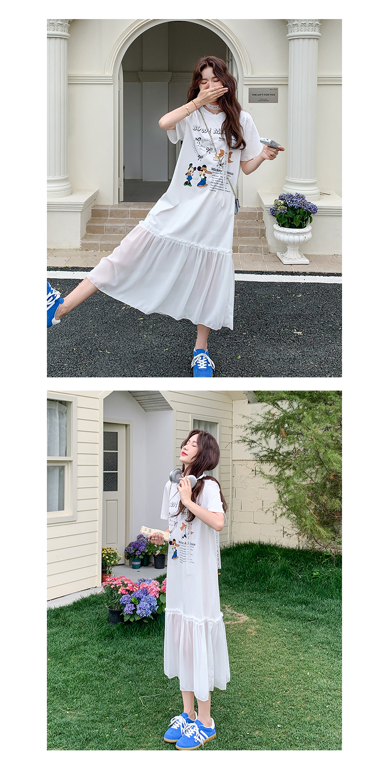 【商品名】【ワンピース】ゆるかわキャラ柄Tシャツ 半袖 ワンピース 配色デザインで注目度UP【JZシリーズ】
