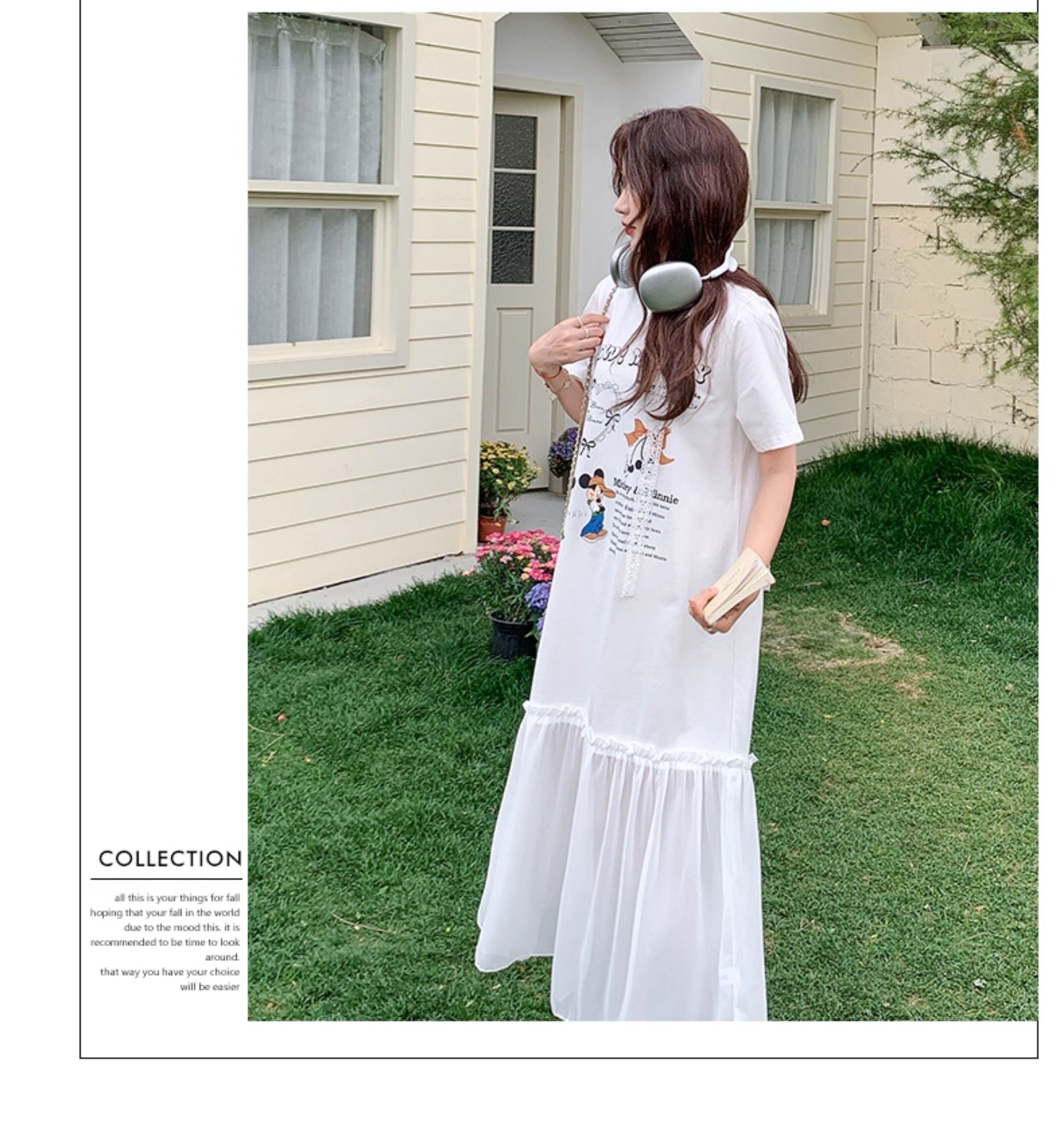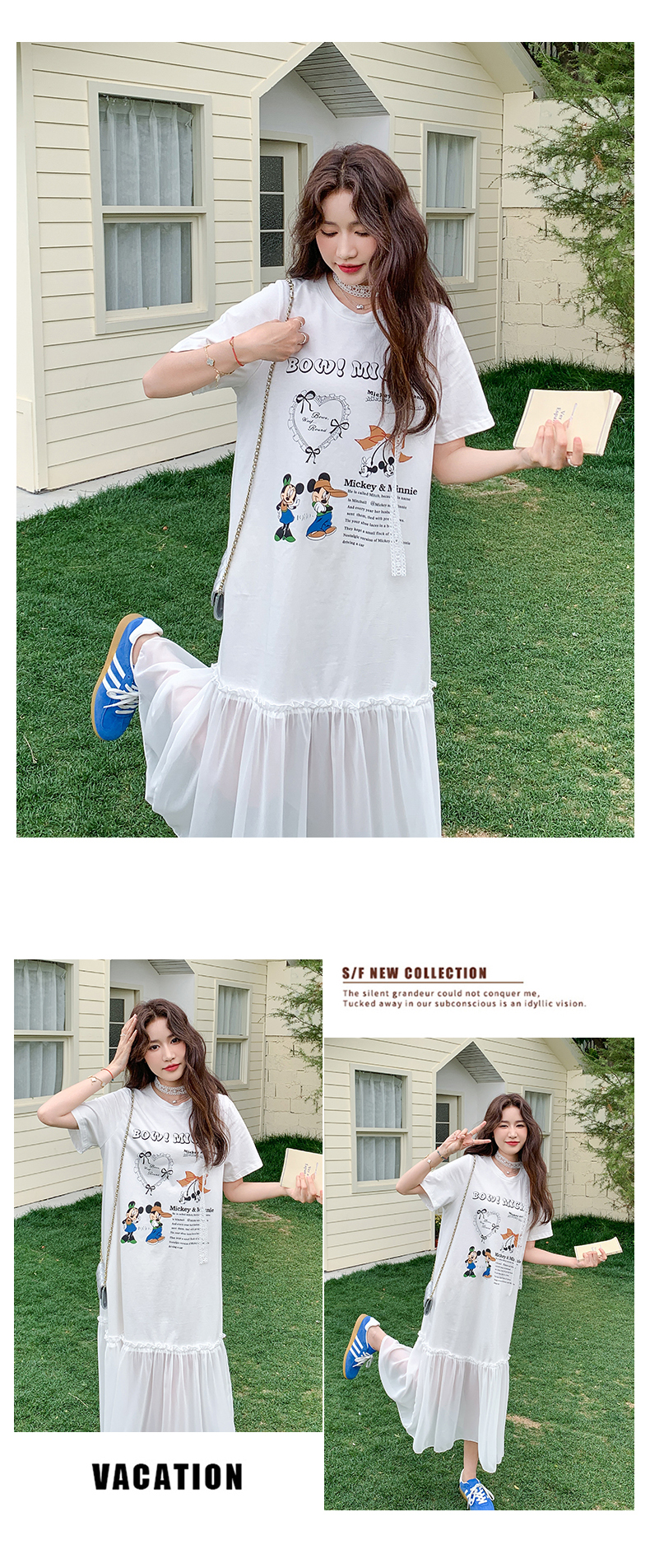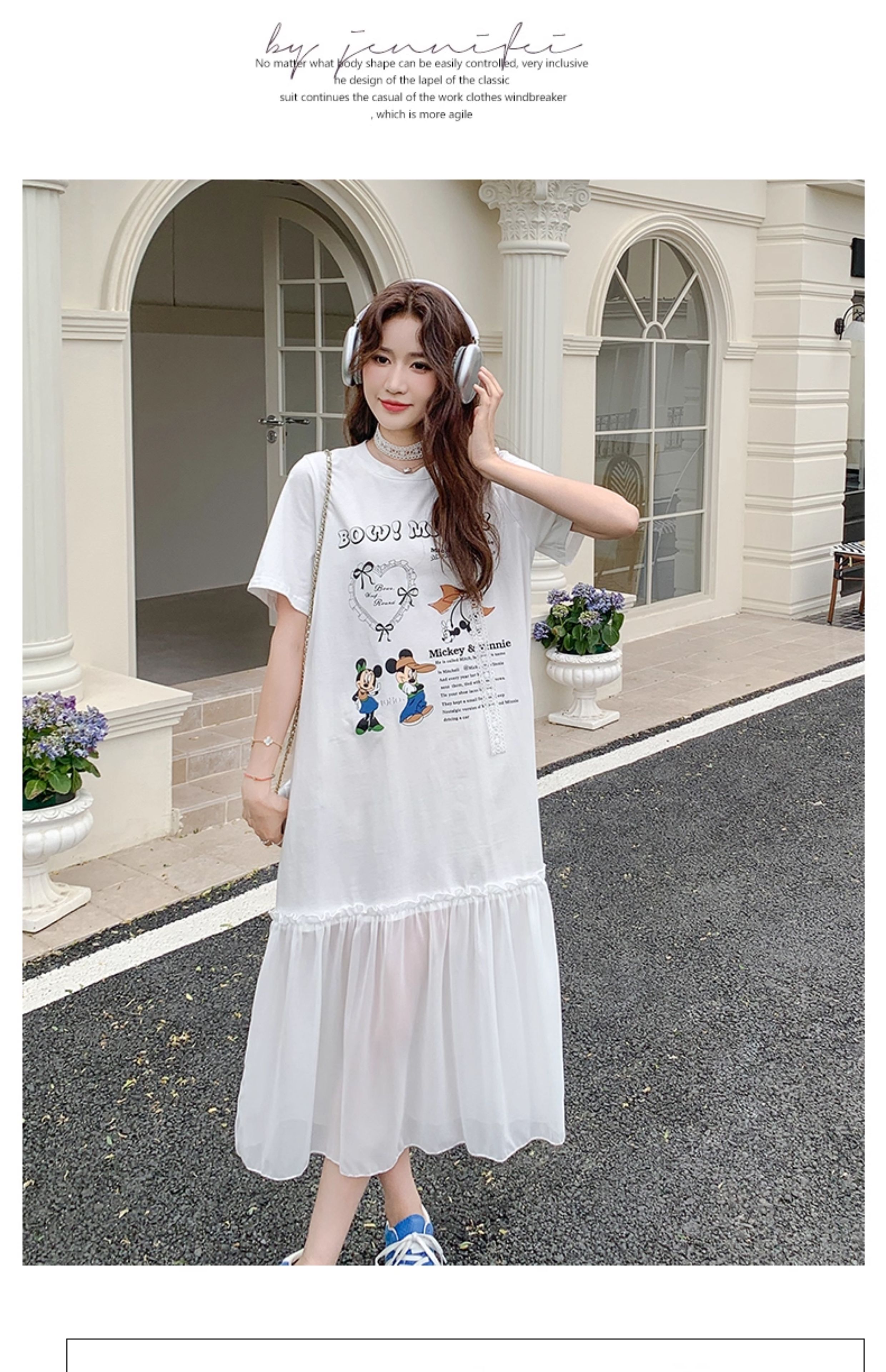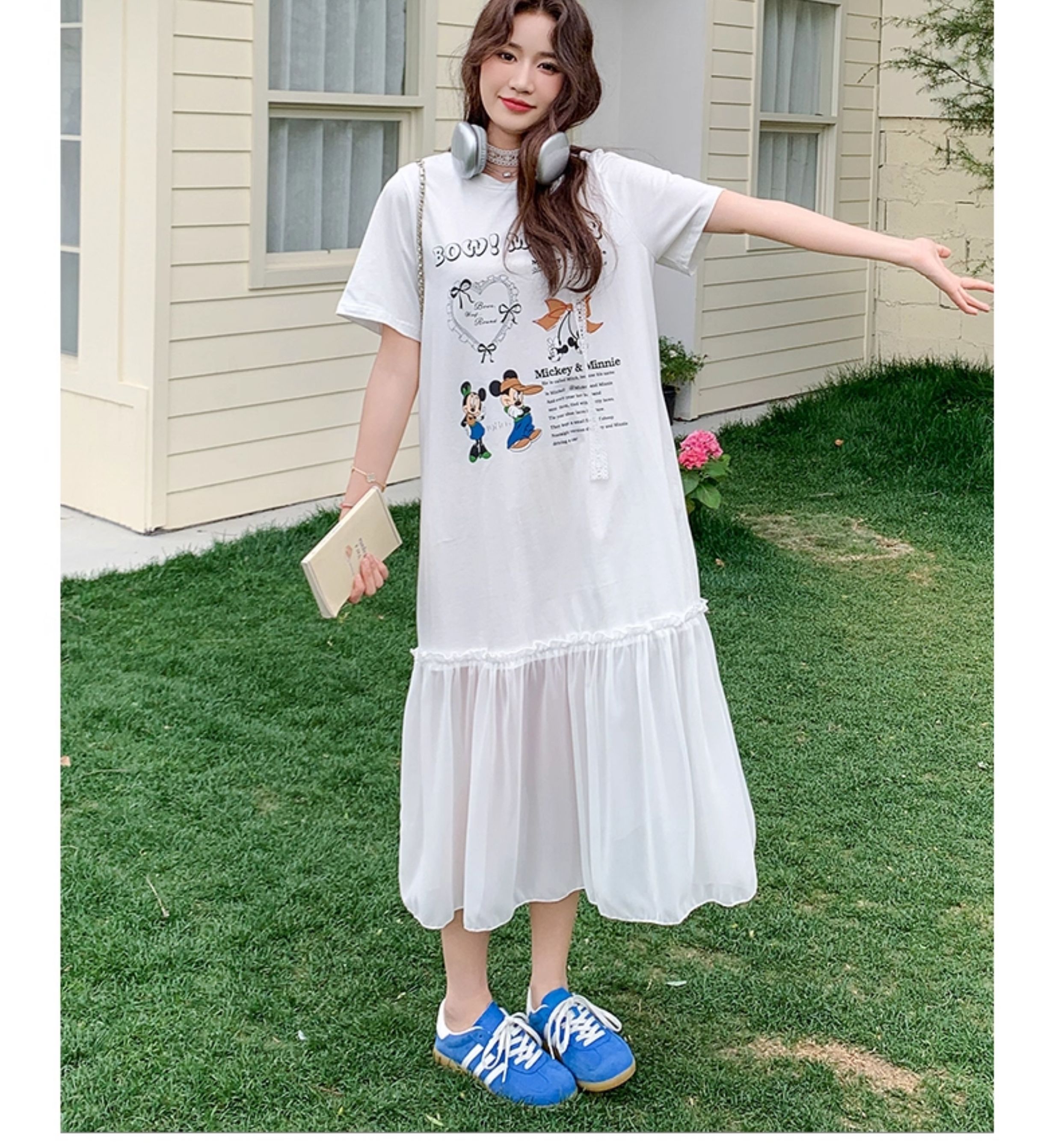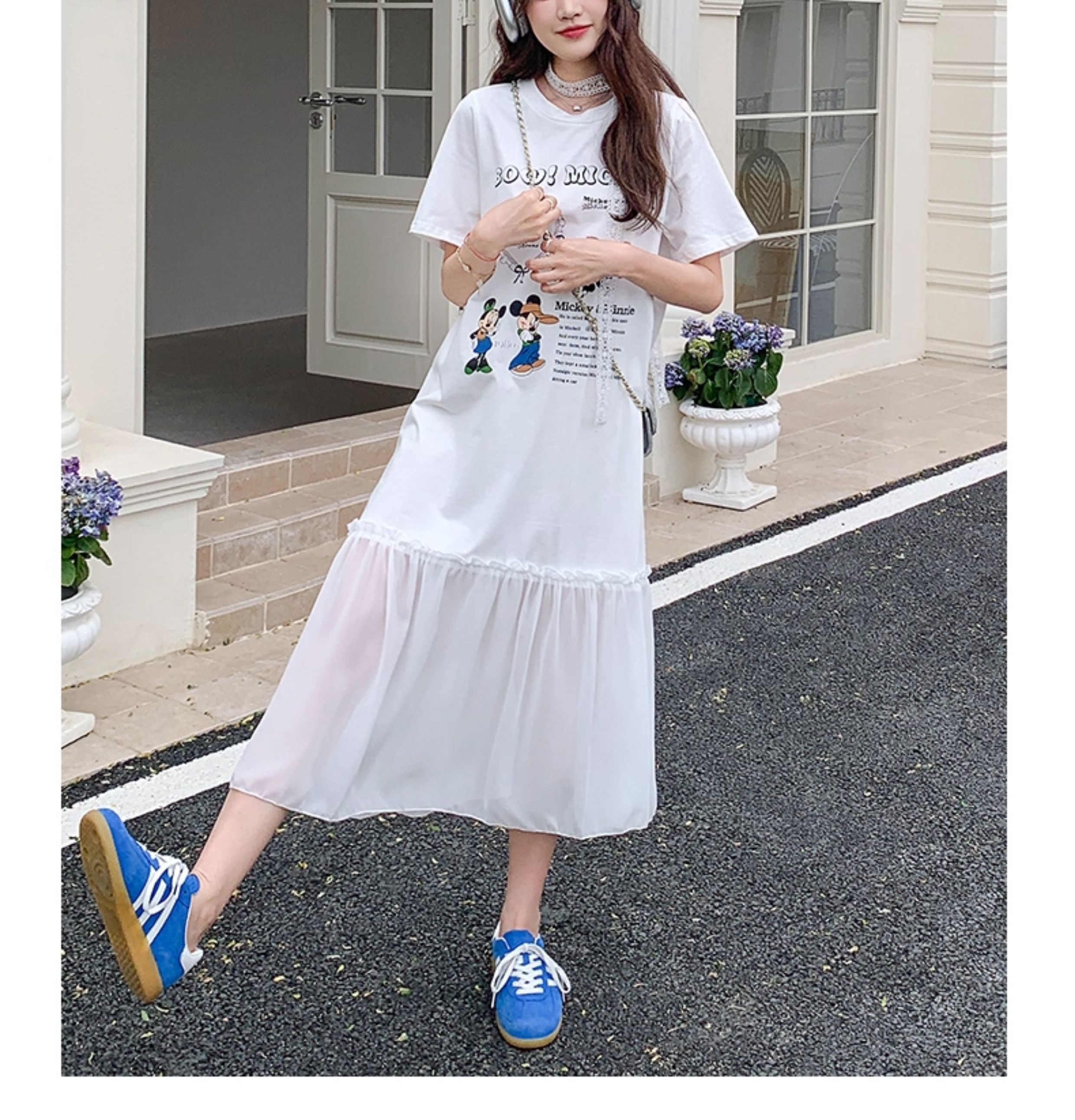 【商品名】【ワンピース】ゆるかわキャラ柄Tシャツ 半袖 ワンピース 配色デザインで注目度UP【JZシリーズ】