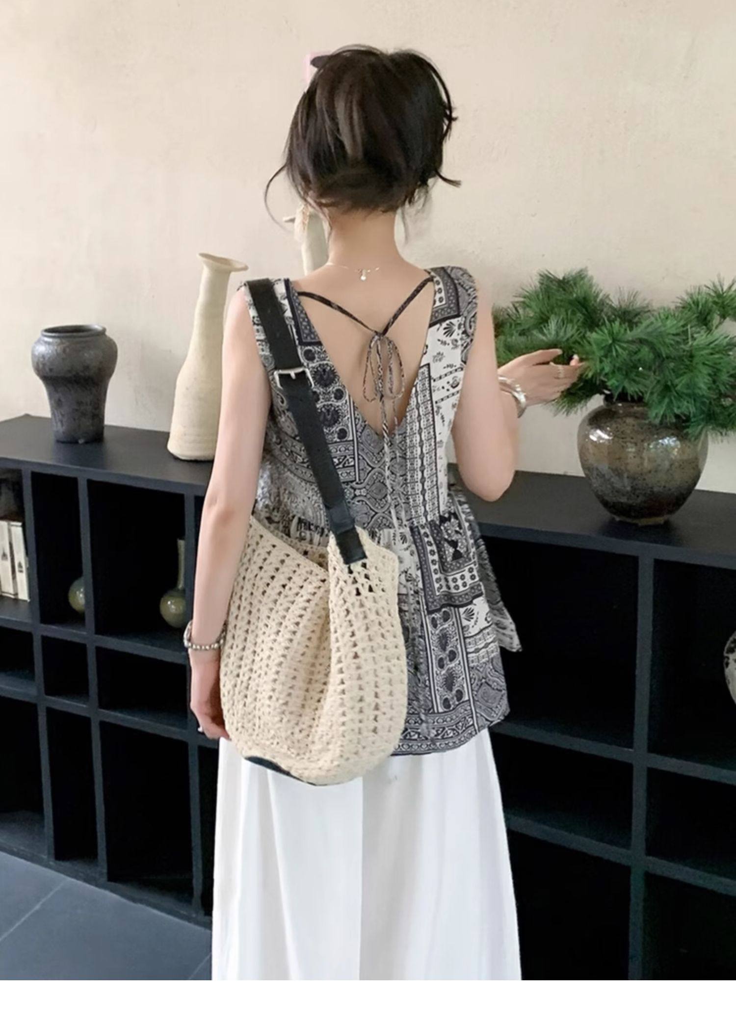 【トップス】夏 フレンチVネック×バックリボン キャミソール 大人ガーリーな夏トップス【SHシリーズ】