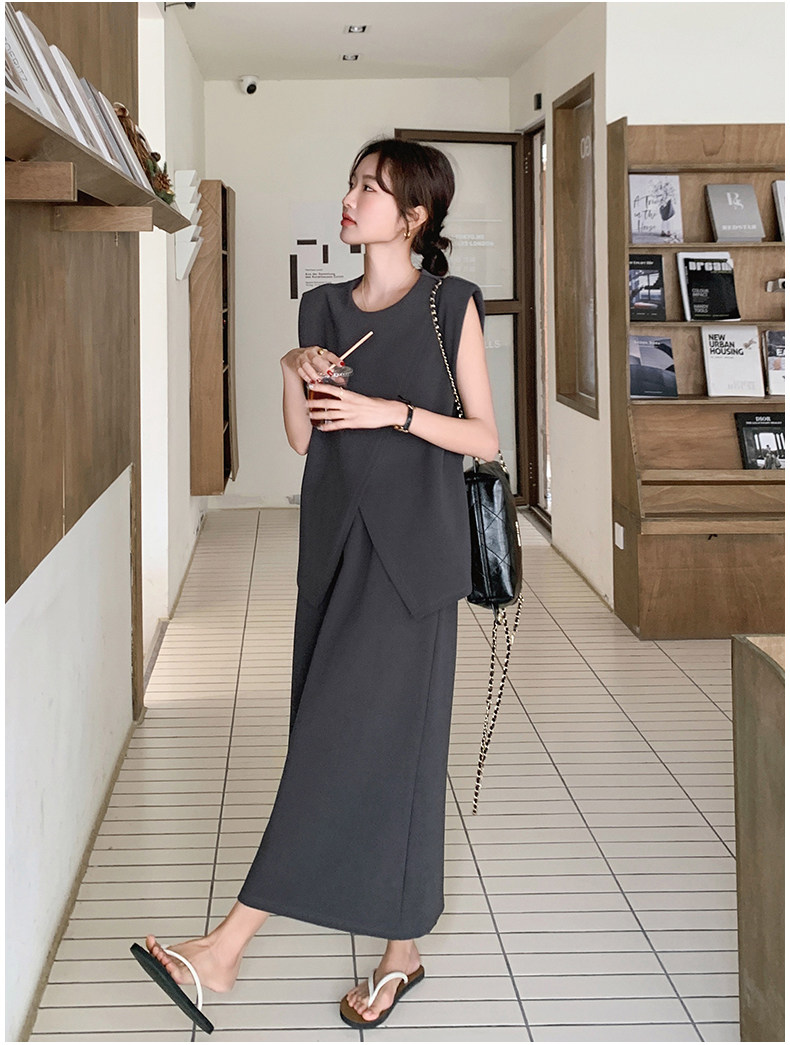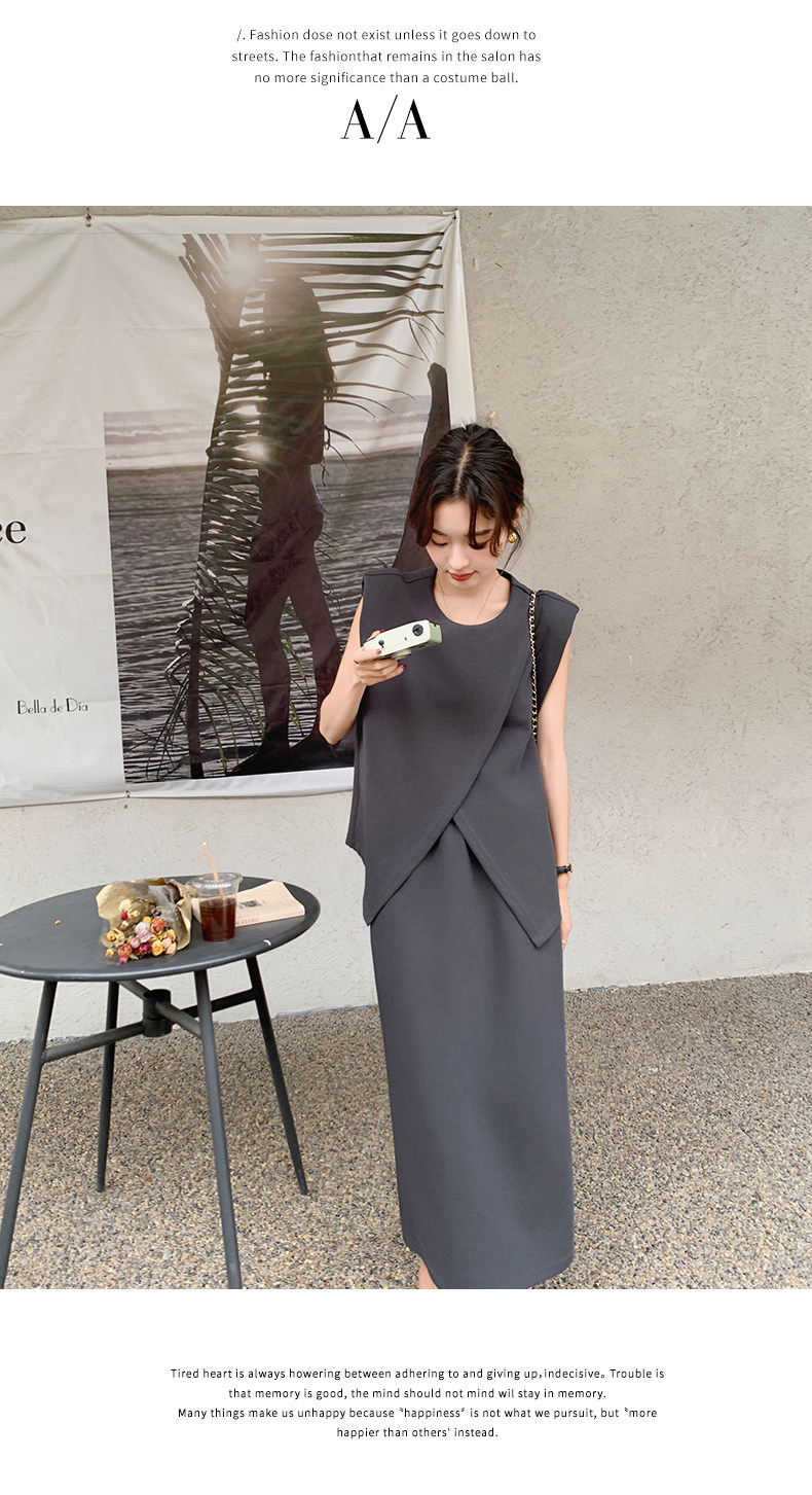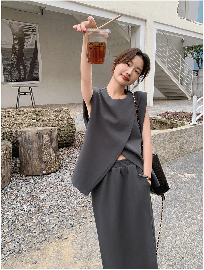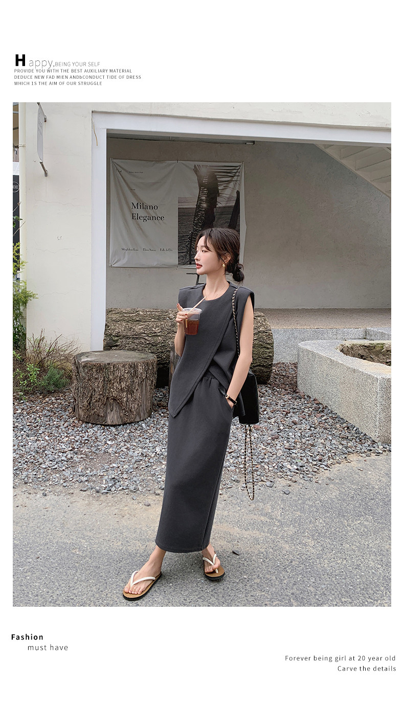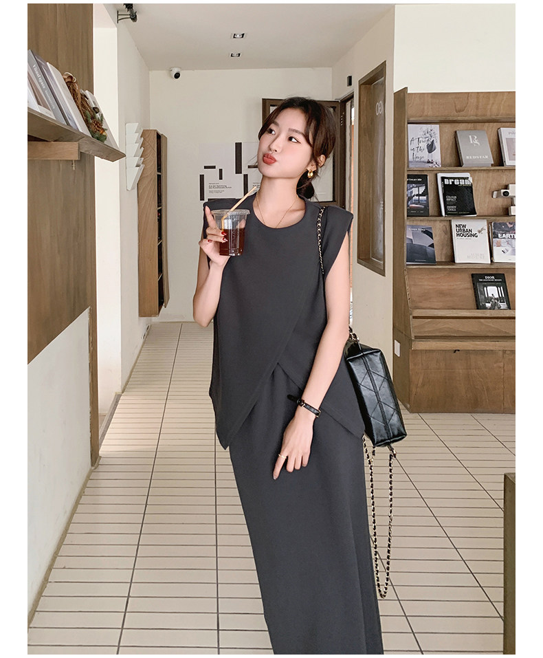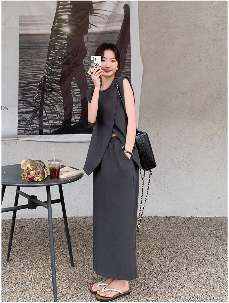 2点セット!【セットアップ】スリットベスト+ハイウエストスカート 上下セット 春夏秋トレンド感たっぷり【JZシリーズ】