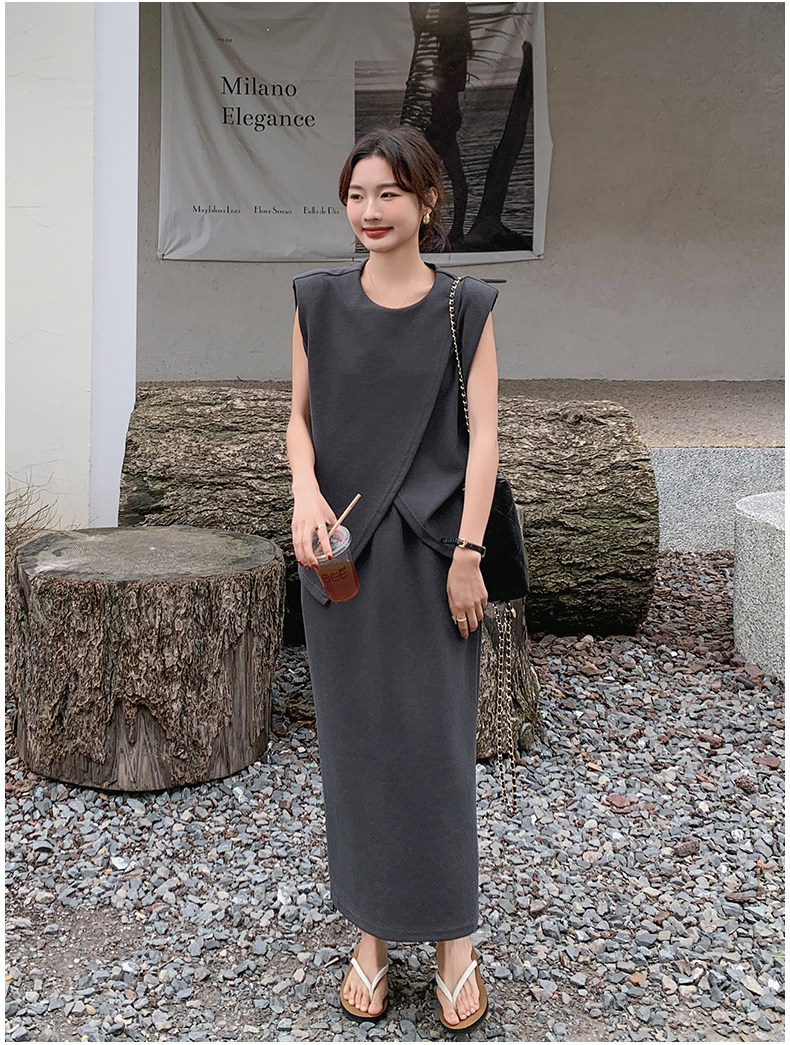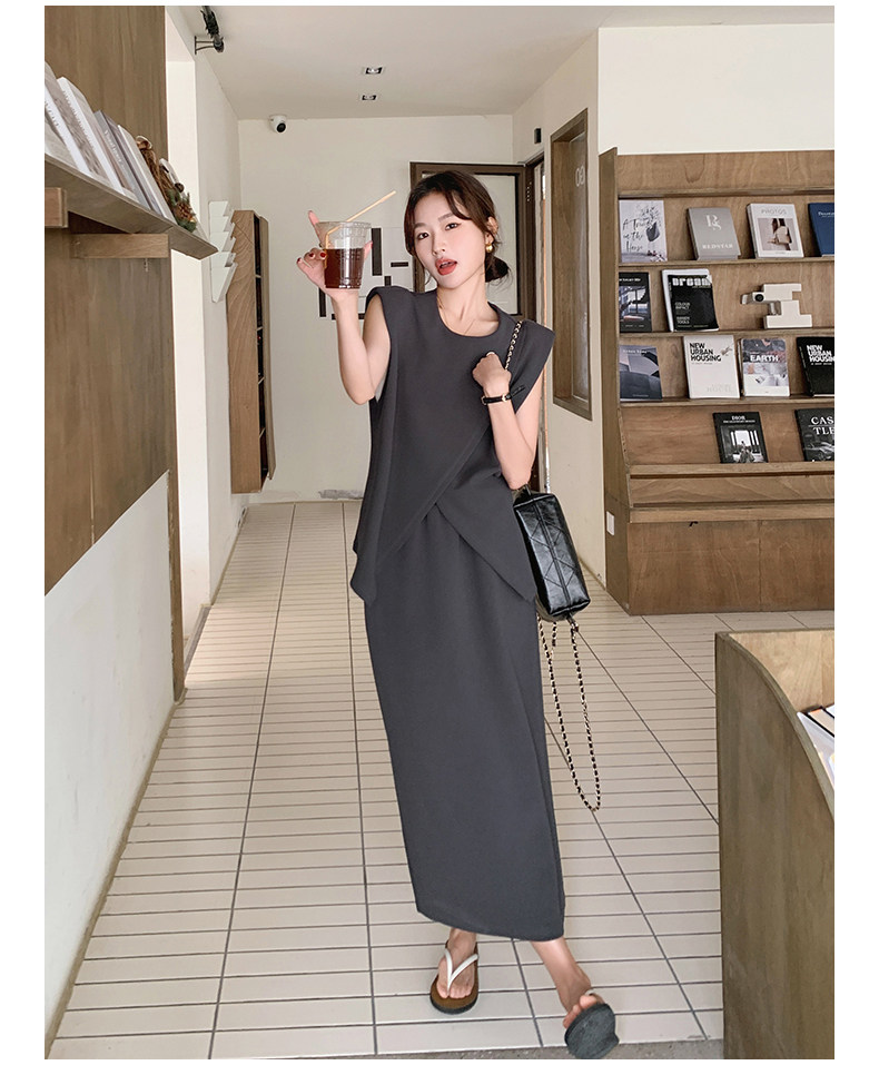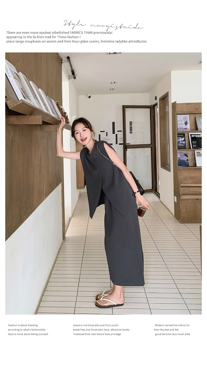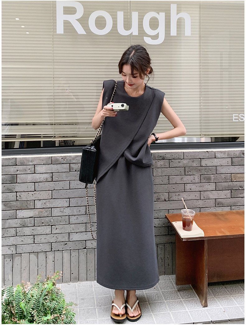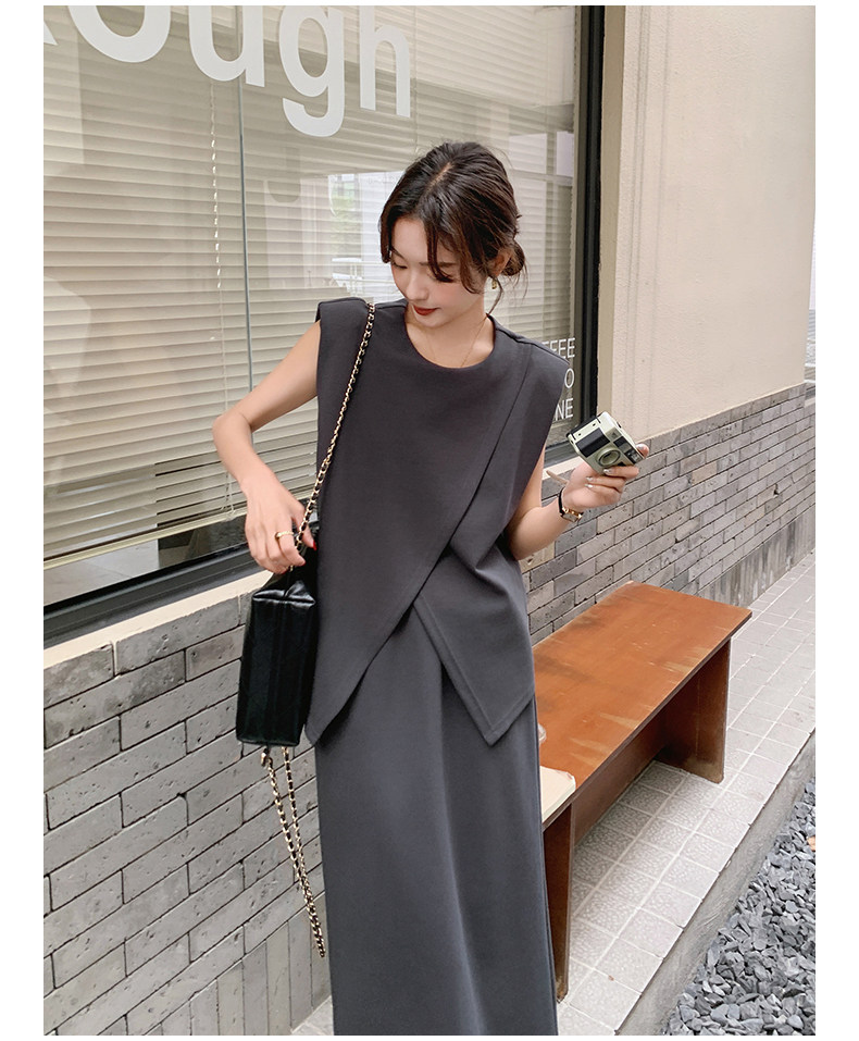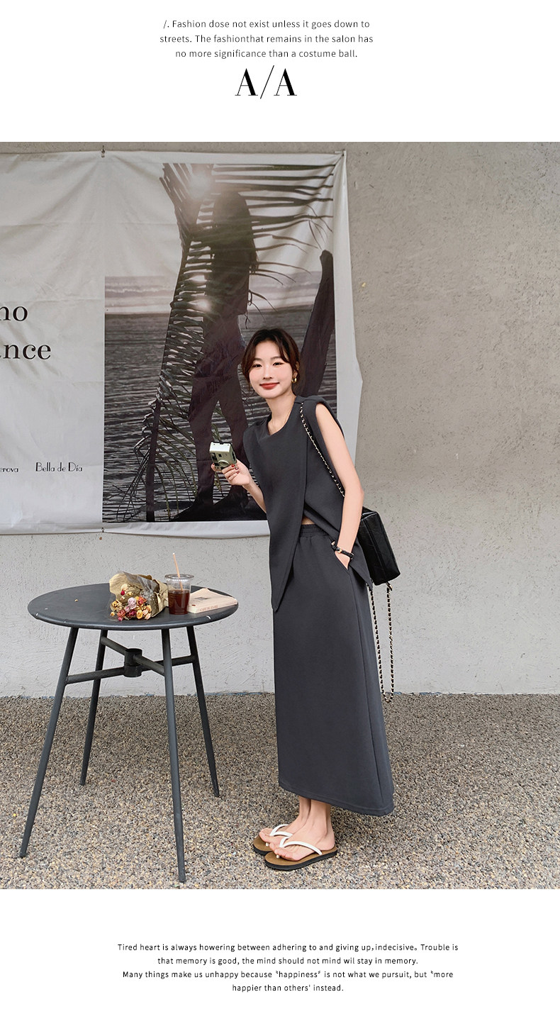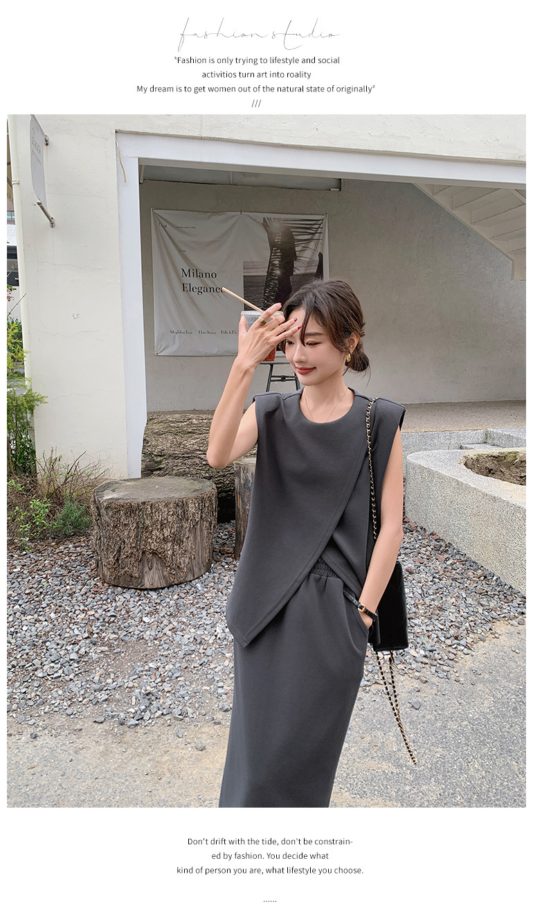 2点セット!【セットアップ】スリットベスト+ハイウエストスカート 上下セット 春夏秋トレンド感たっぷり【JZシリーズ】
