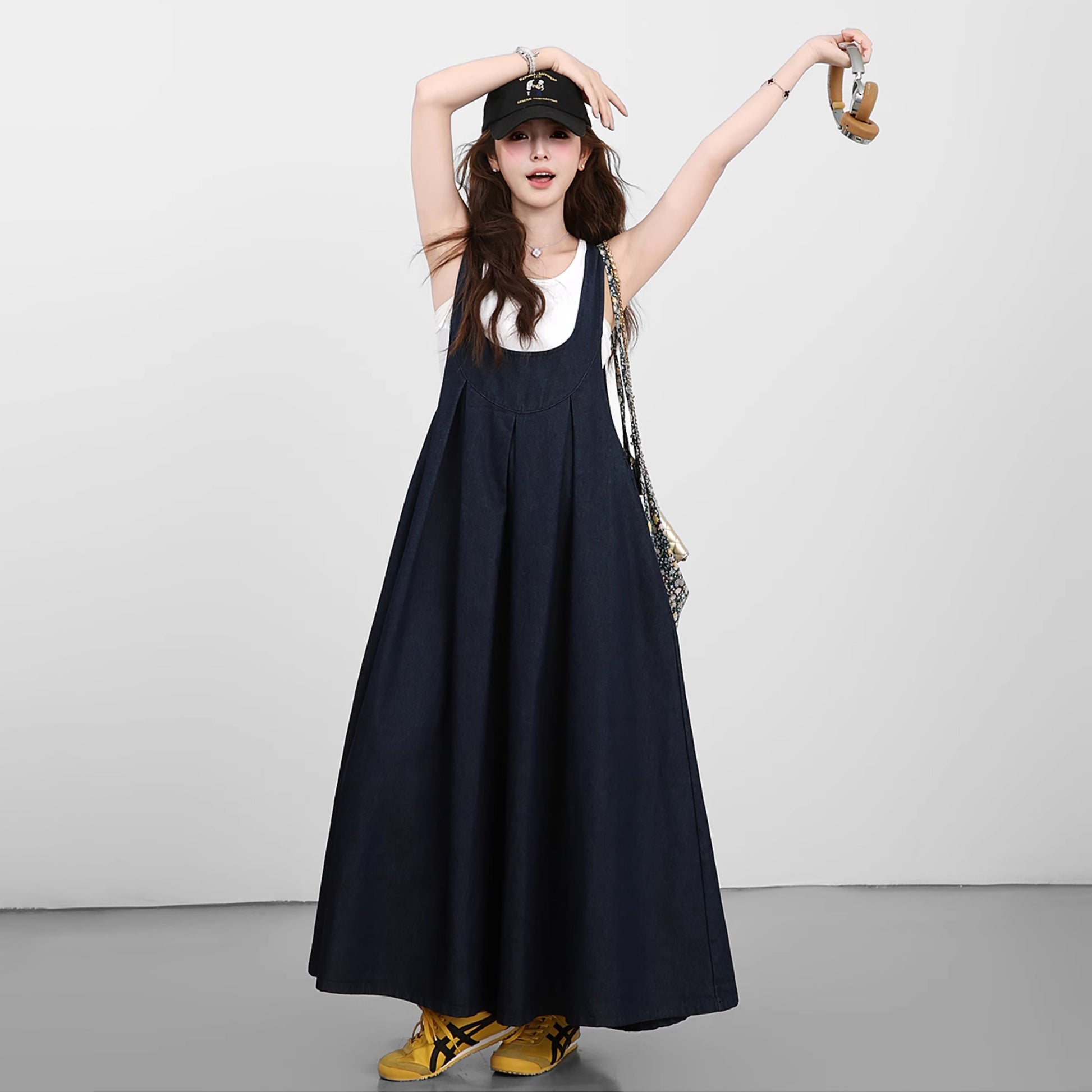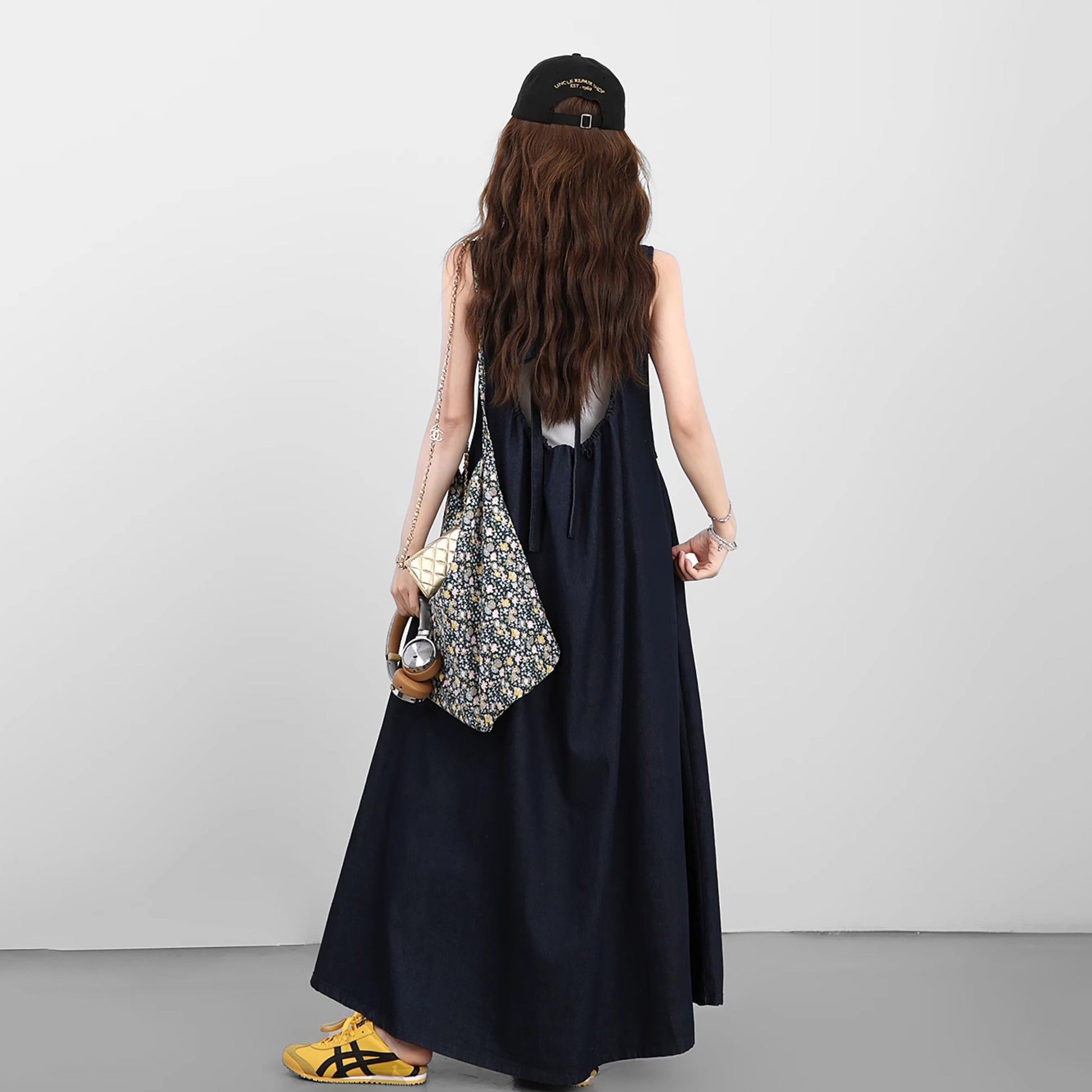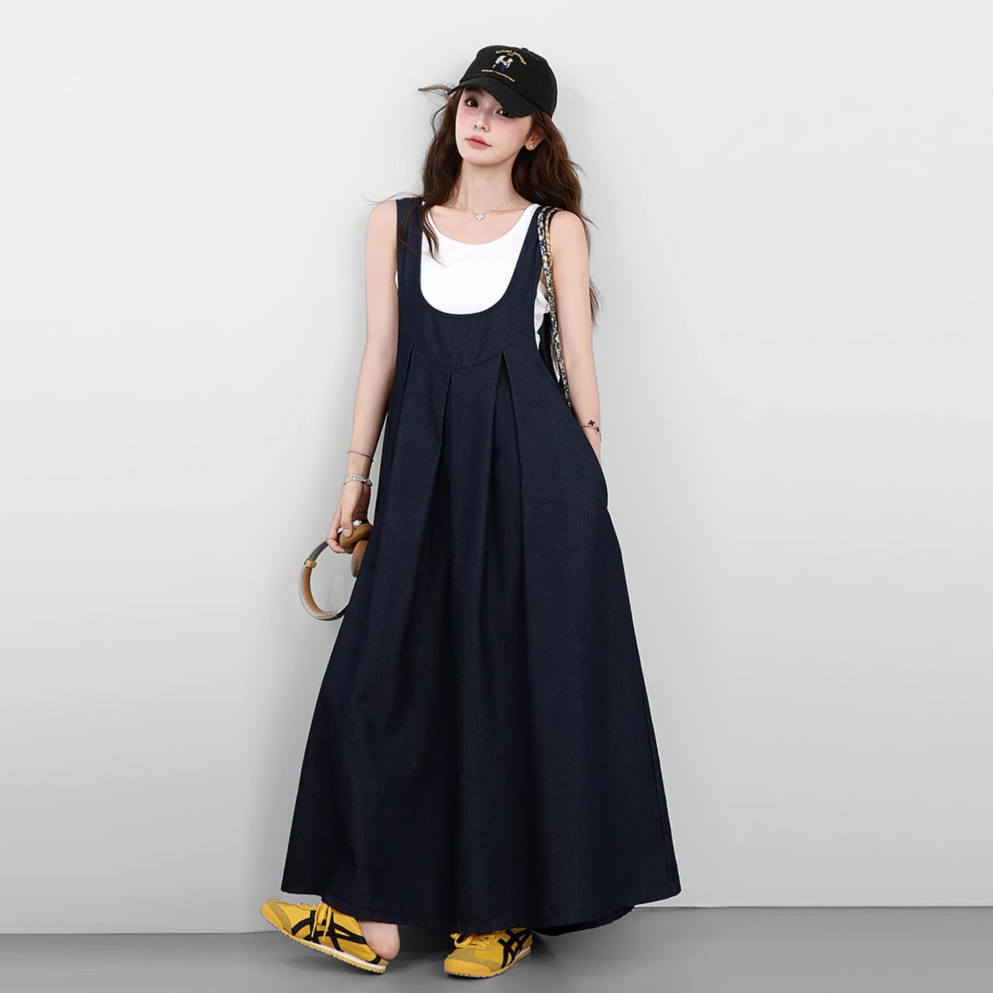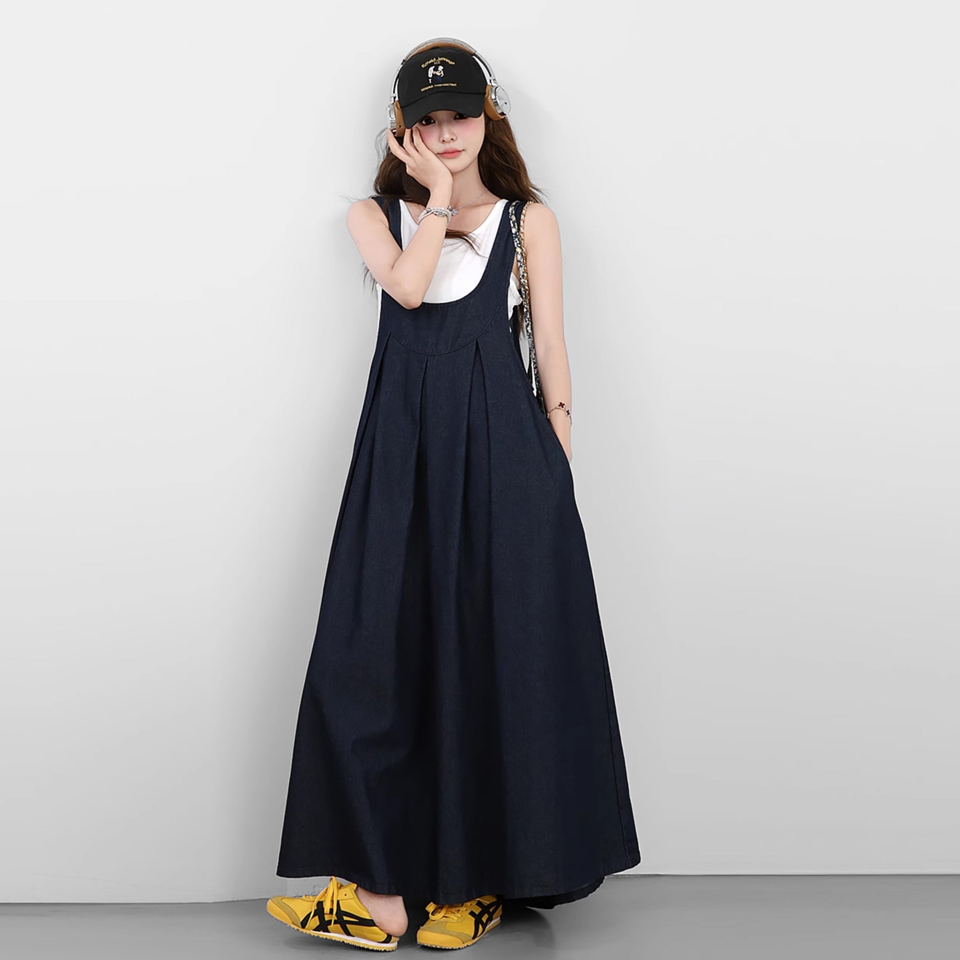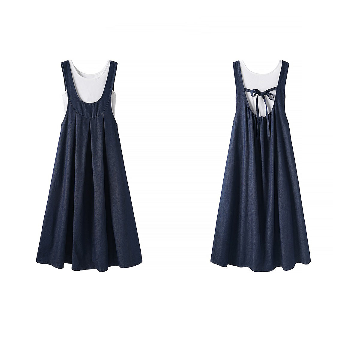 2点セット!【セットアップ】日雑風ベスト + デニム ノースリーブワンピースセットアップ 大人可愛い抜け感コーデに【JZシリーズ】