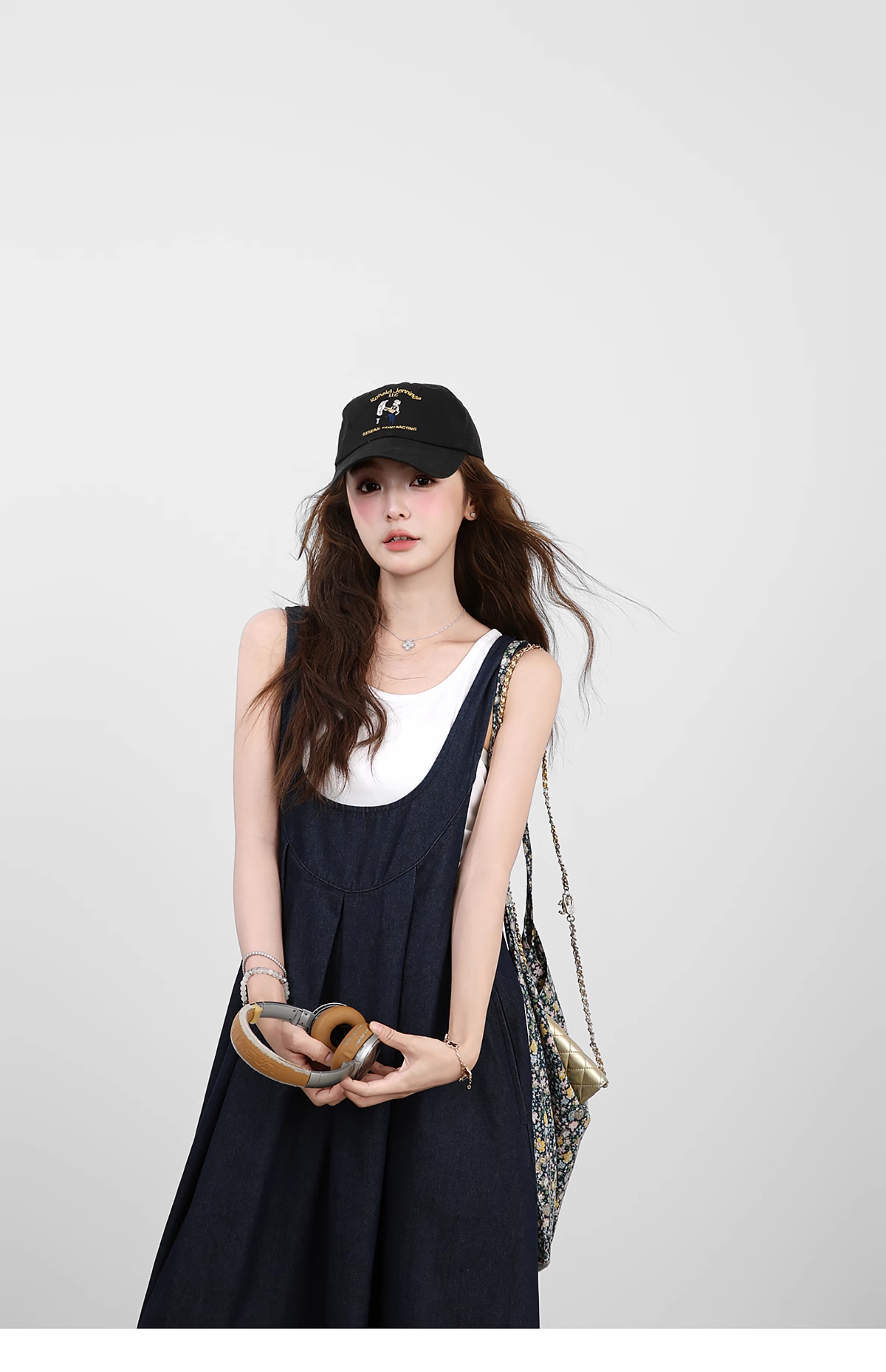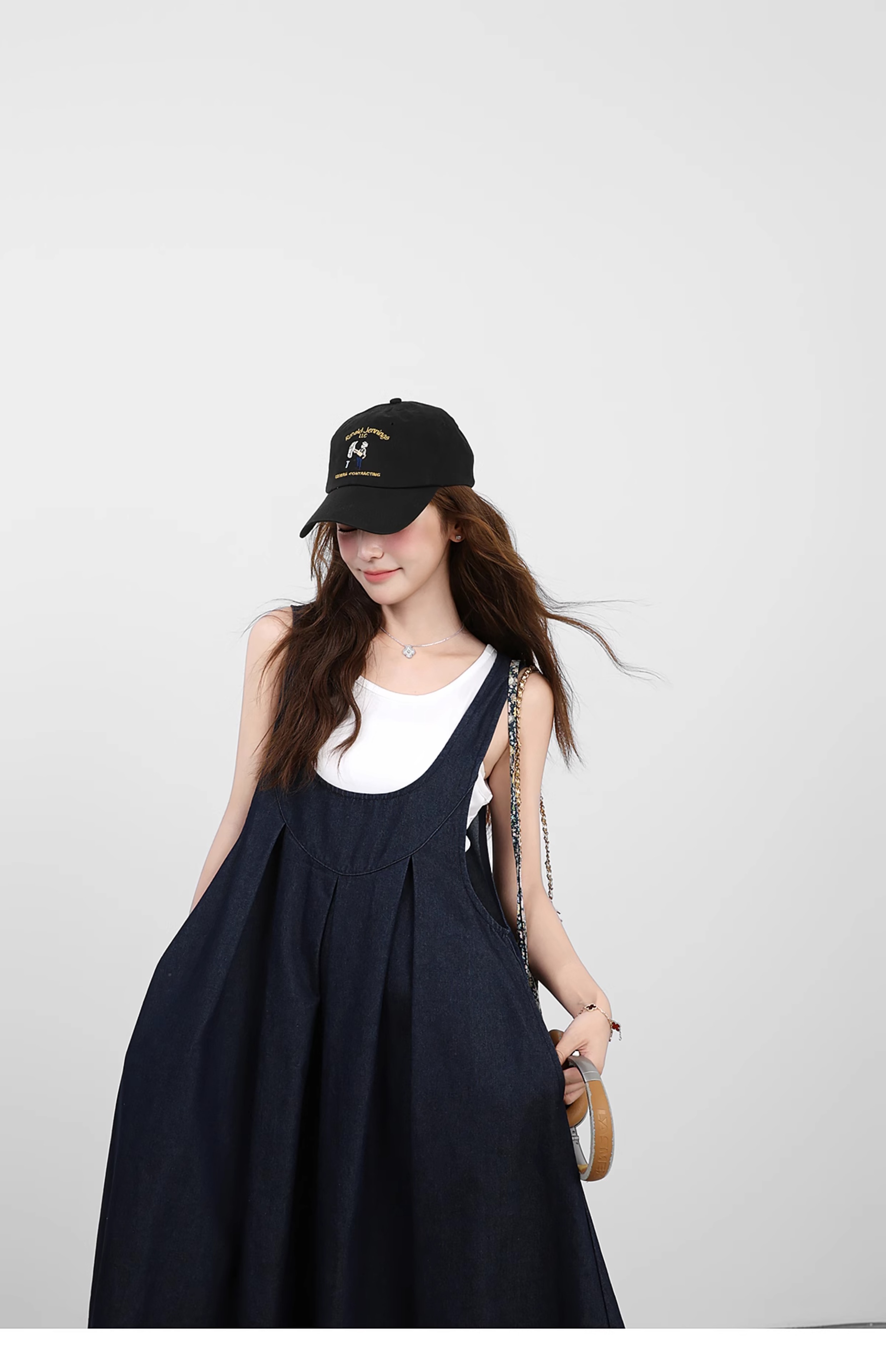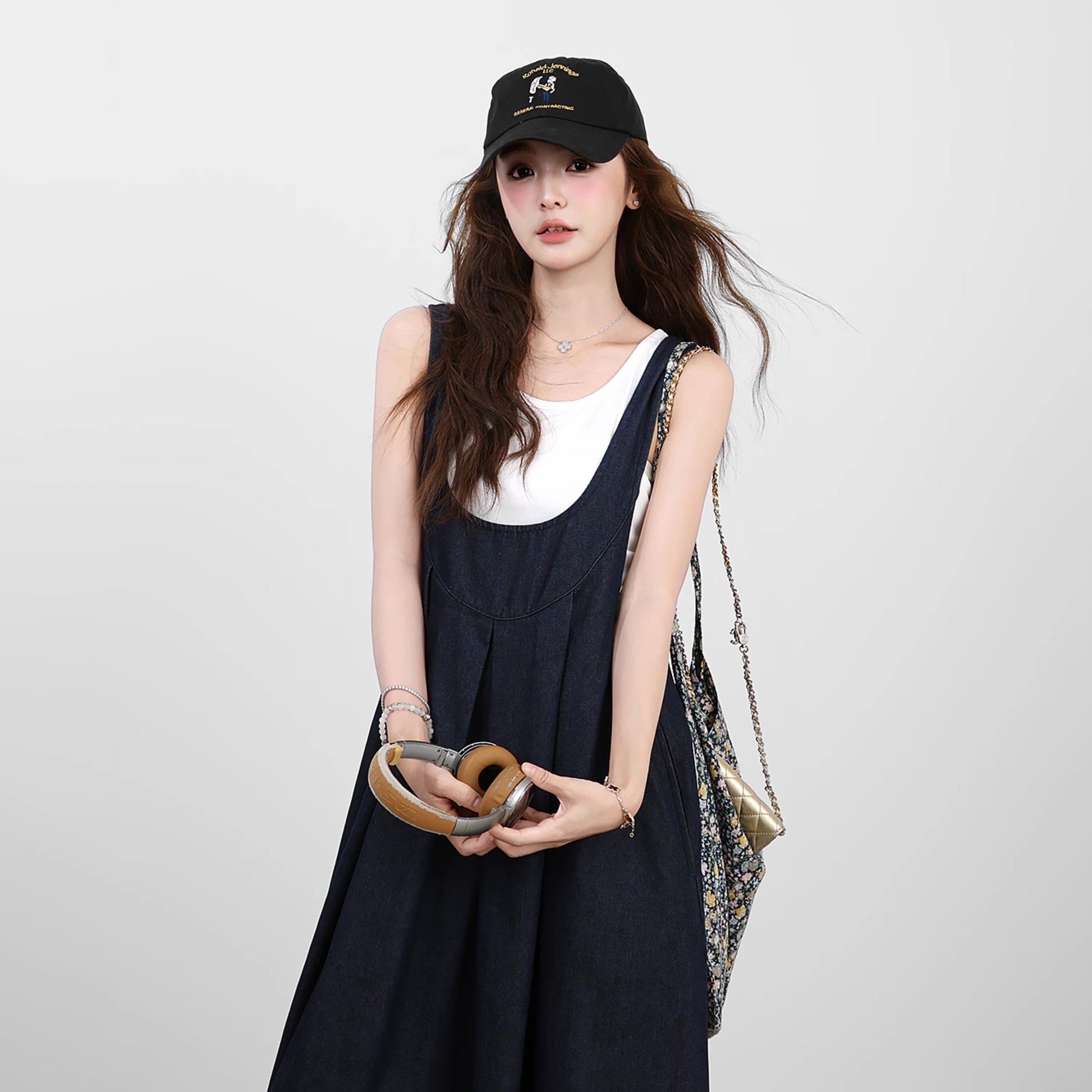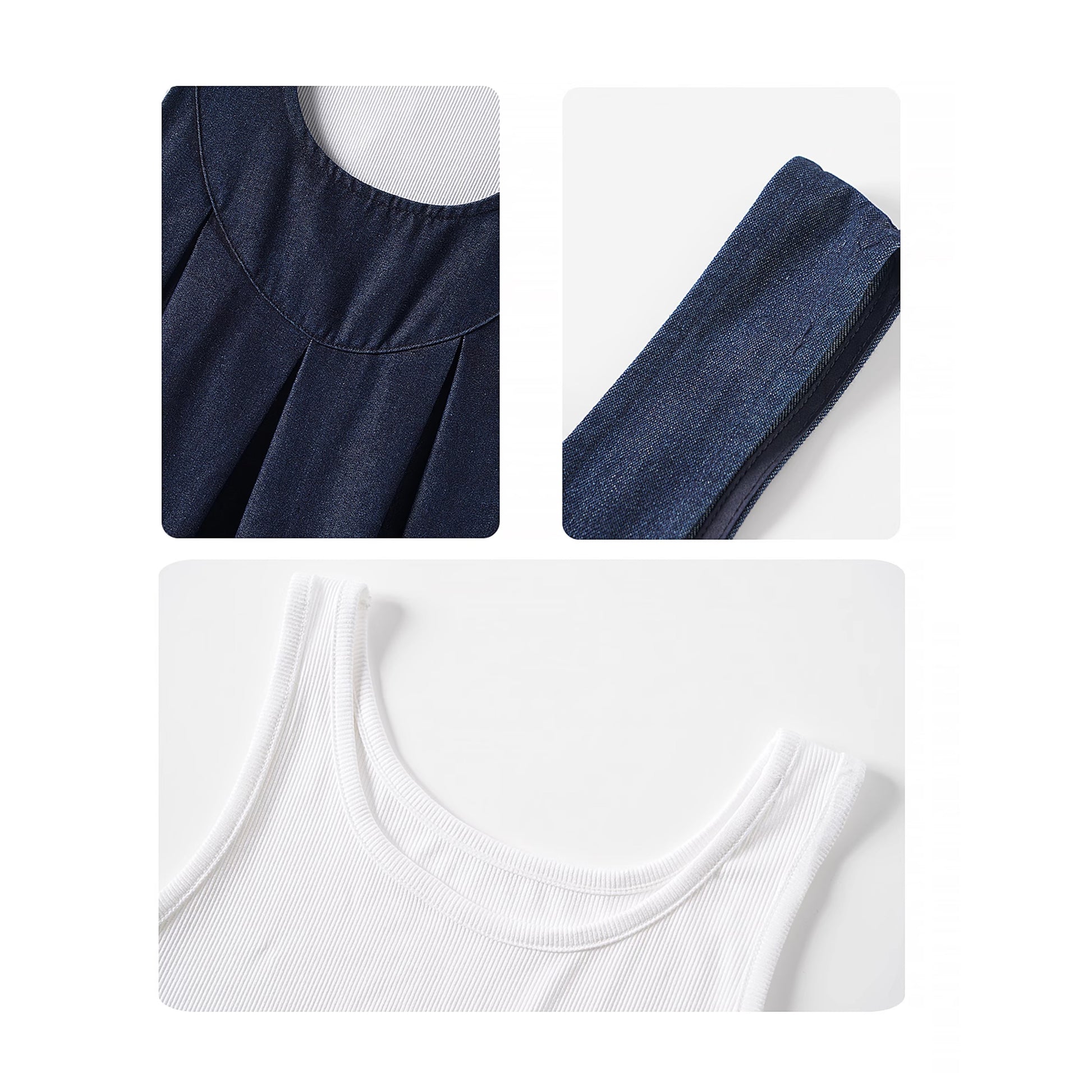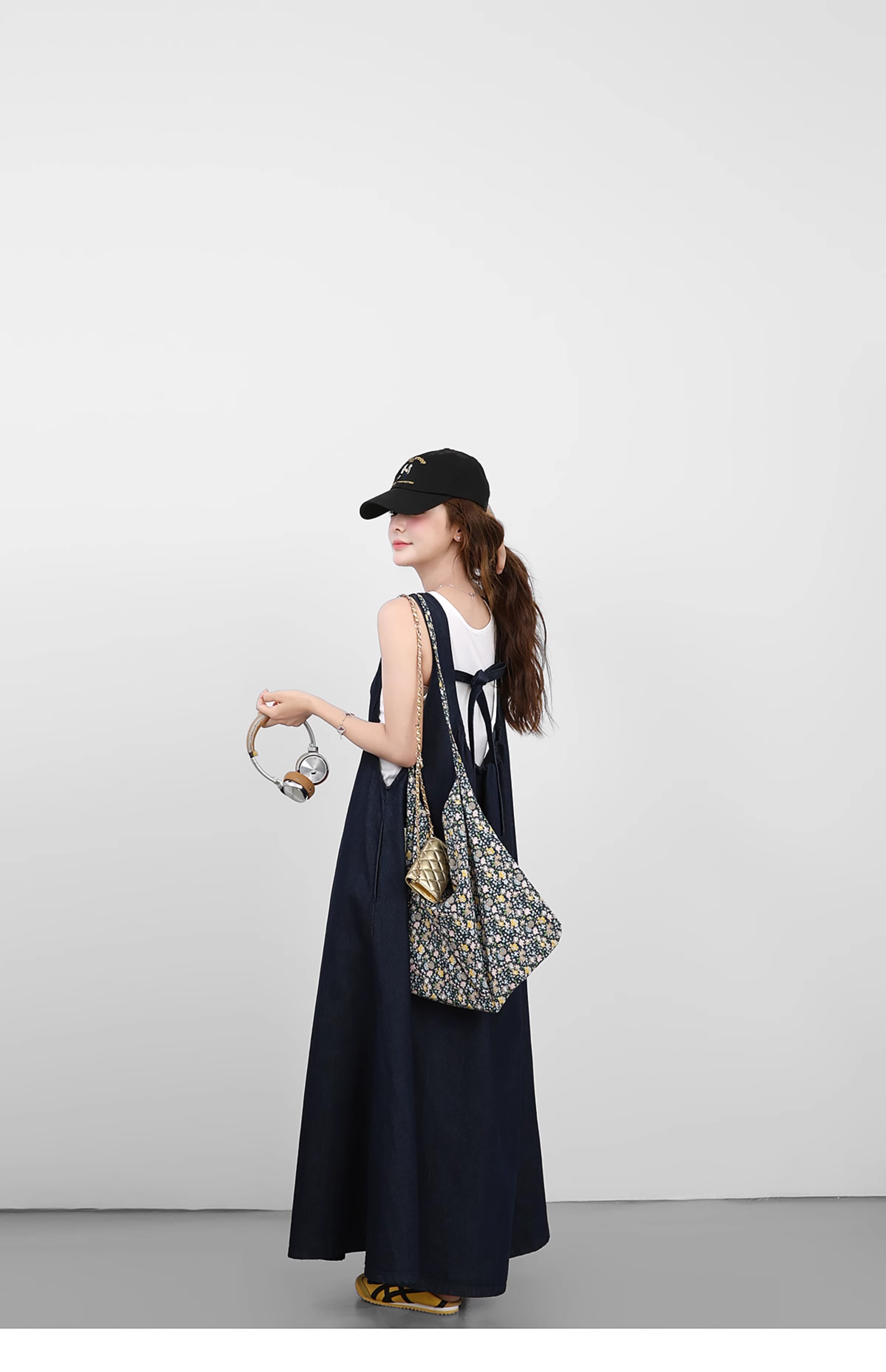 2点セット!【セットアップ】日雑風ベスト + デニム ノースリーブワンピースセットアップ 大人可愛い抜け感コーデに【JZシリーズ】
