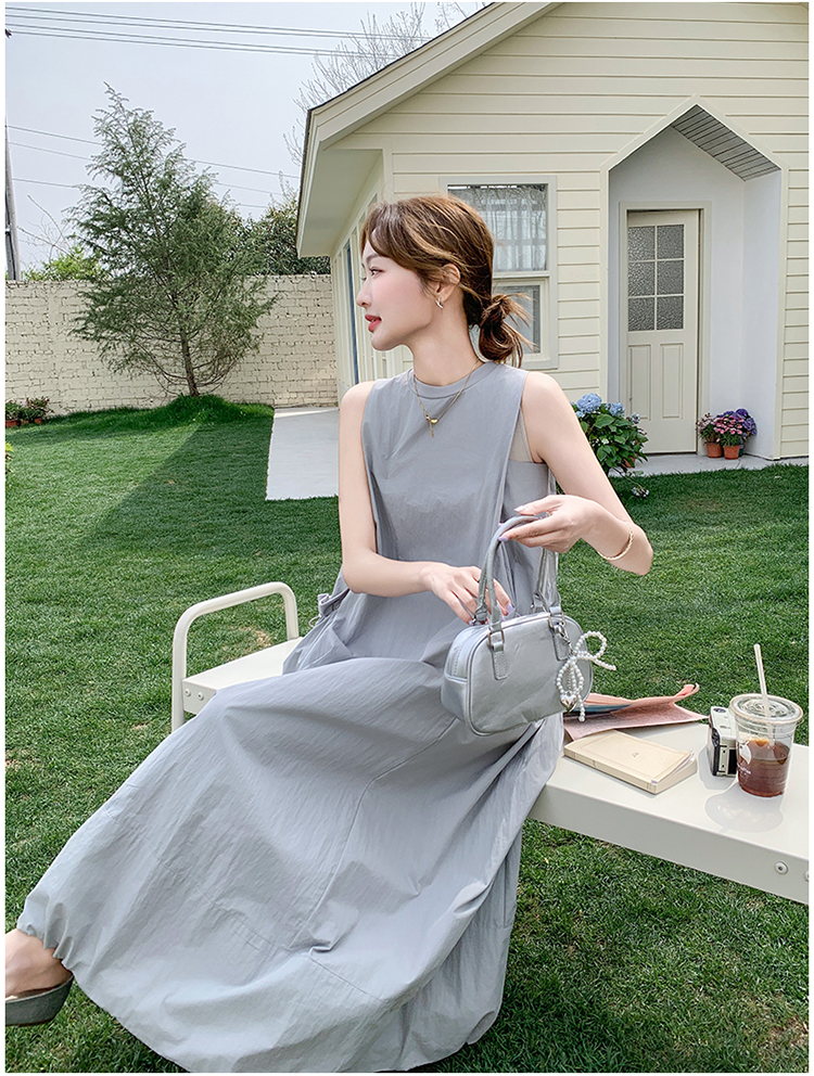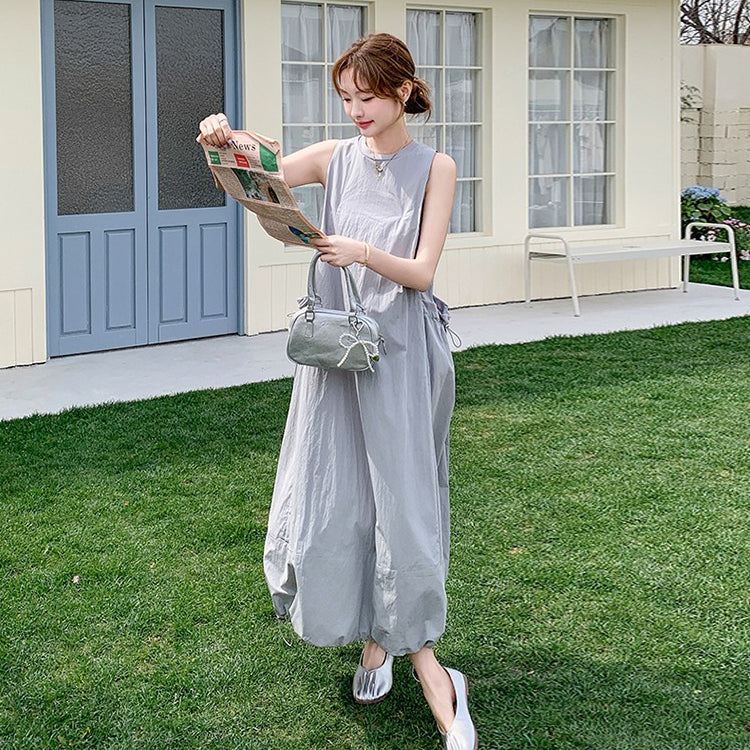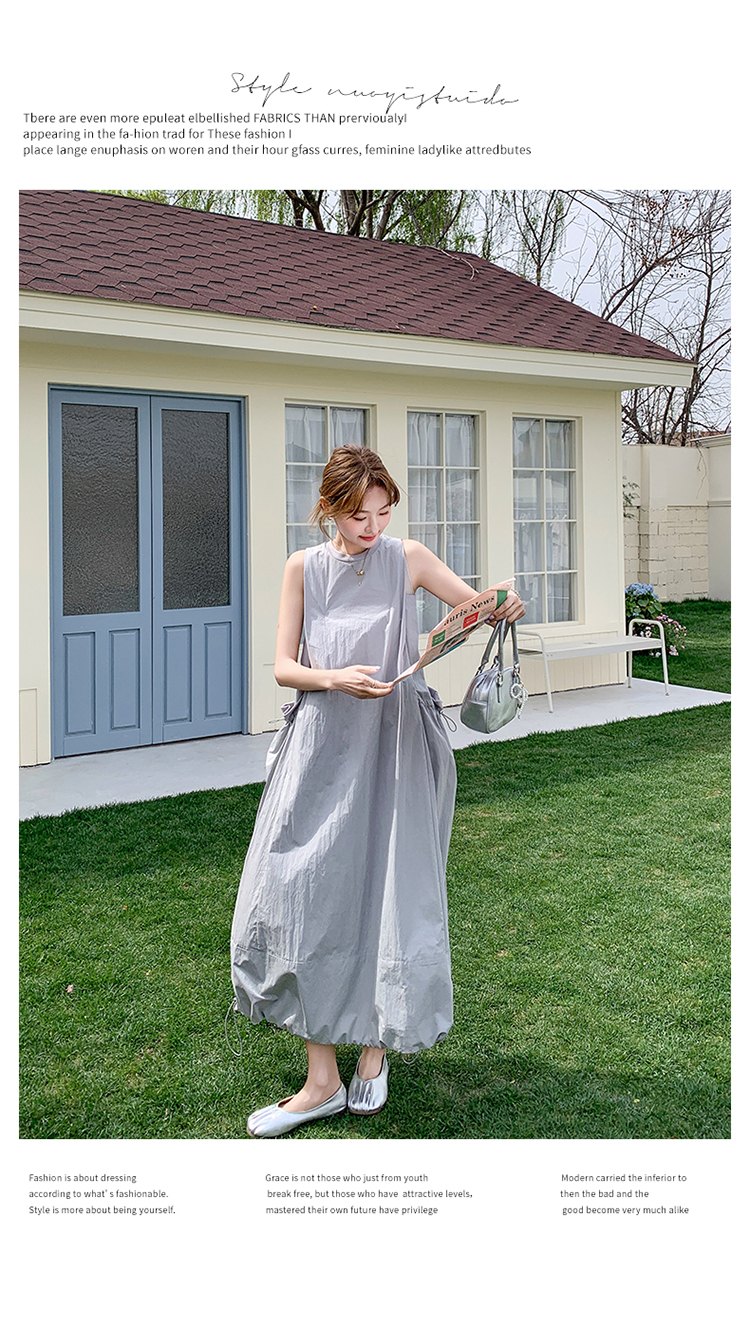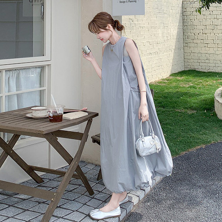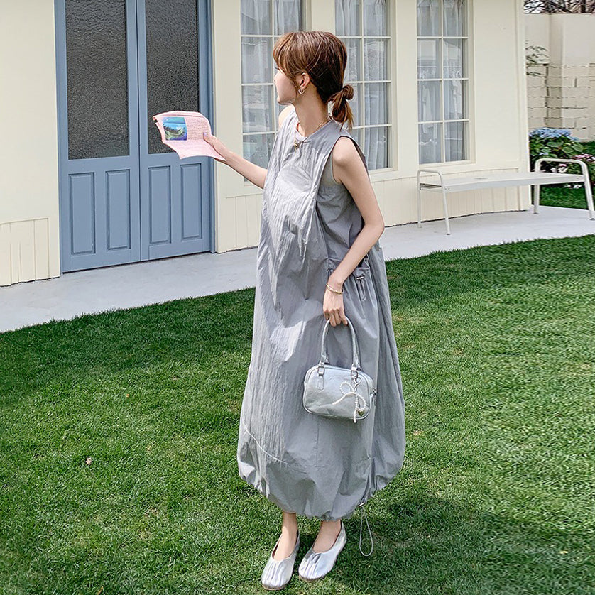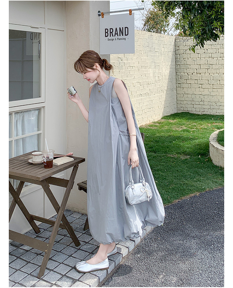 【ワンピース】グレーノースリーブワンピース 雰囲気たっぷりの抜け感シルエットで美しく見せる一枚【JZシリーズ】