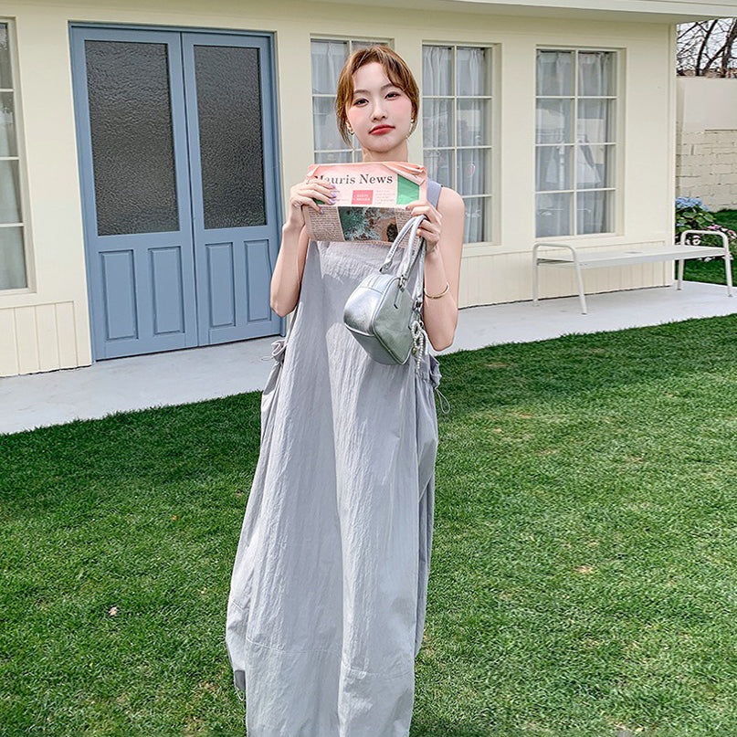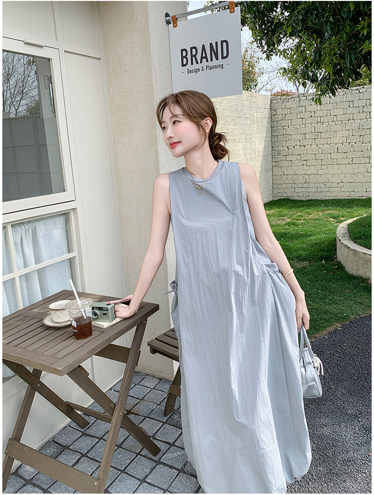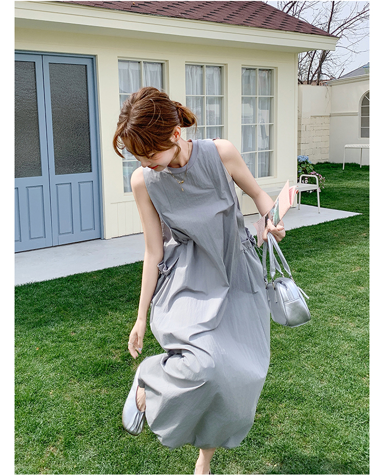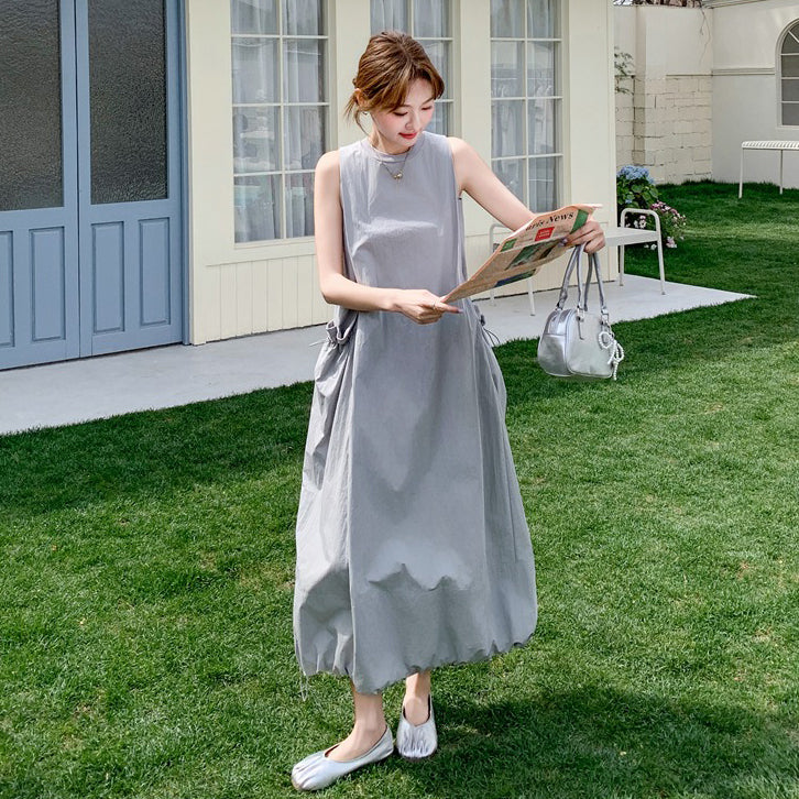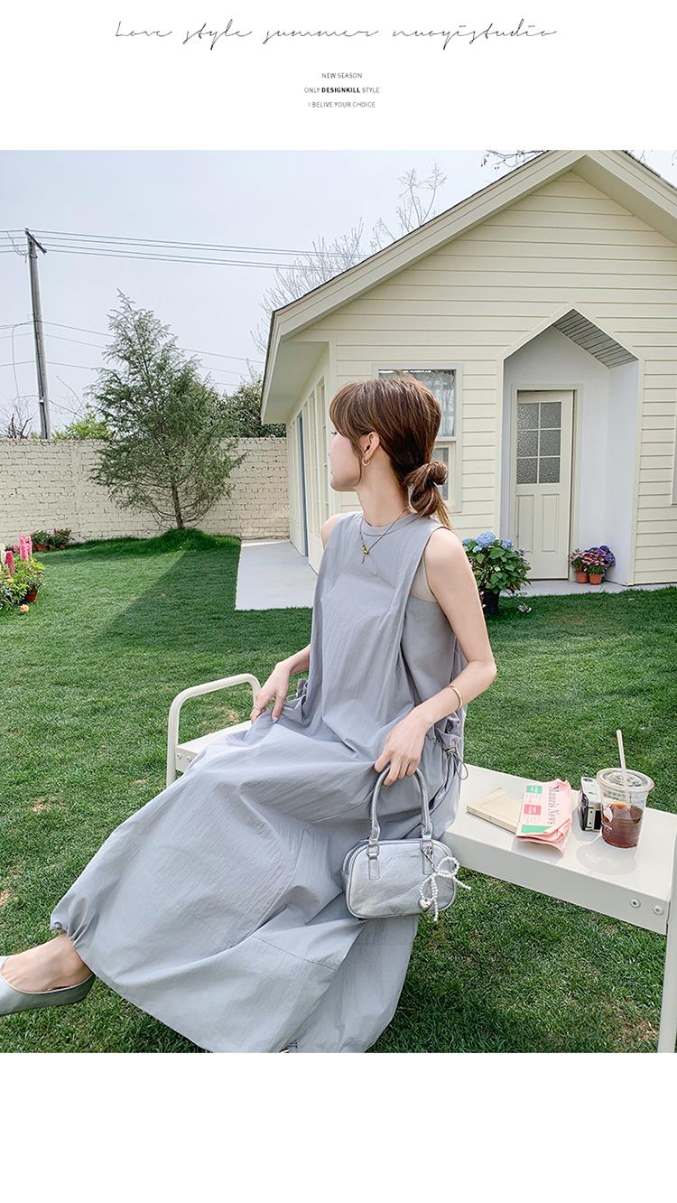 【ワンピース】グレーノースリーブワンピース 雰囲気たっぷりの抜け感シルエットで美しく見せる一枚【JZシリーズ】