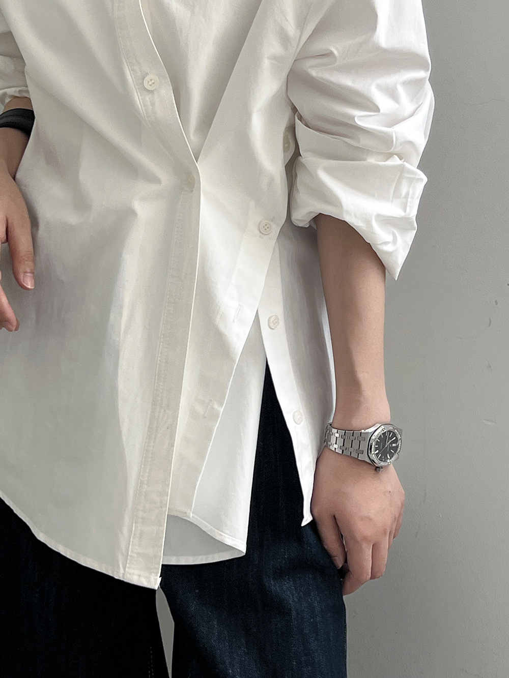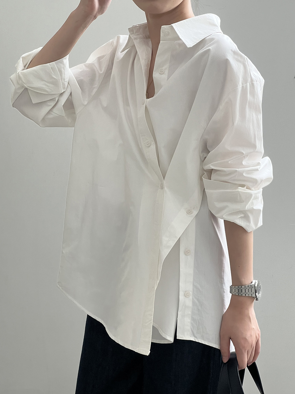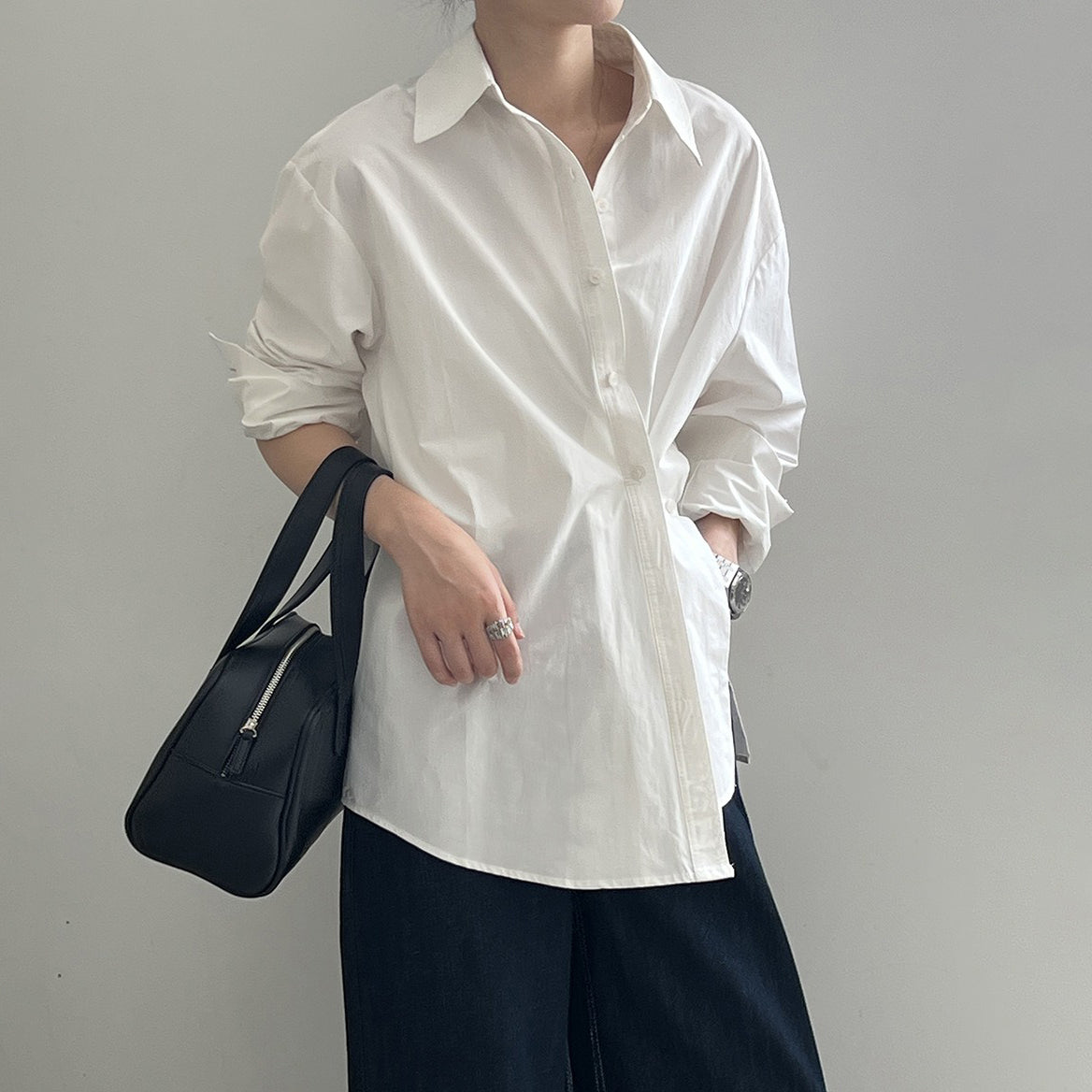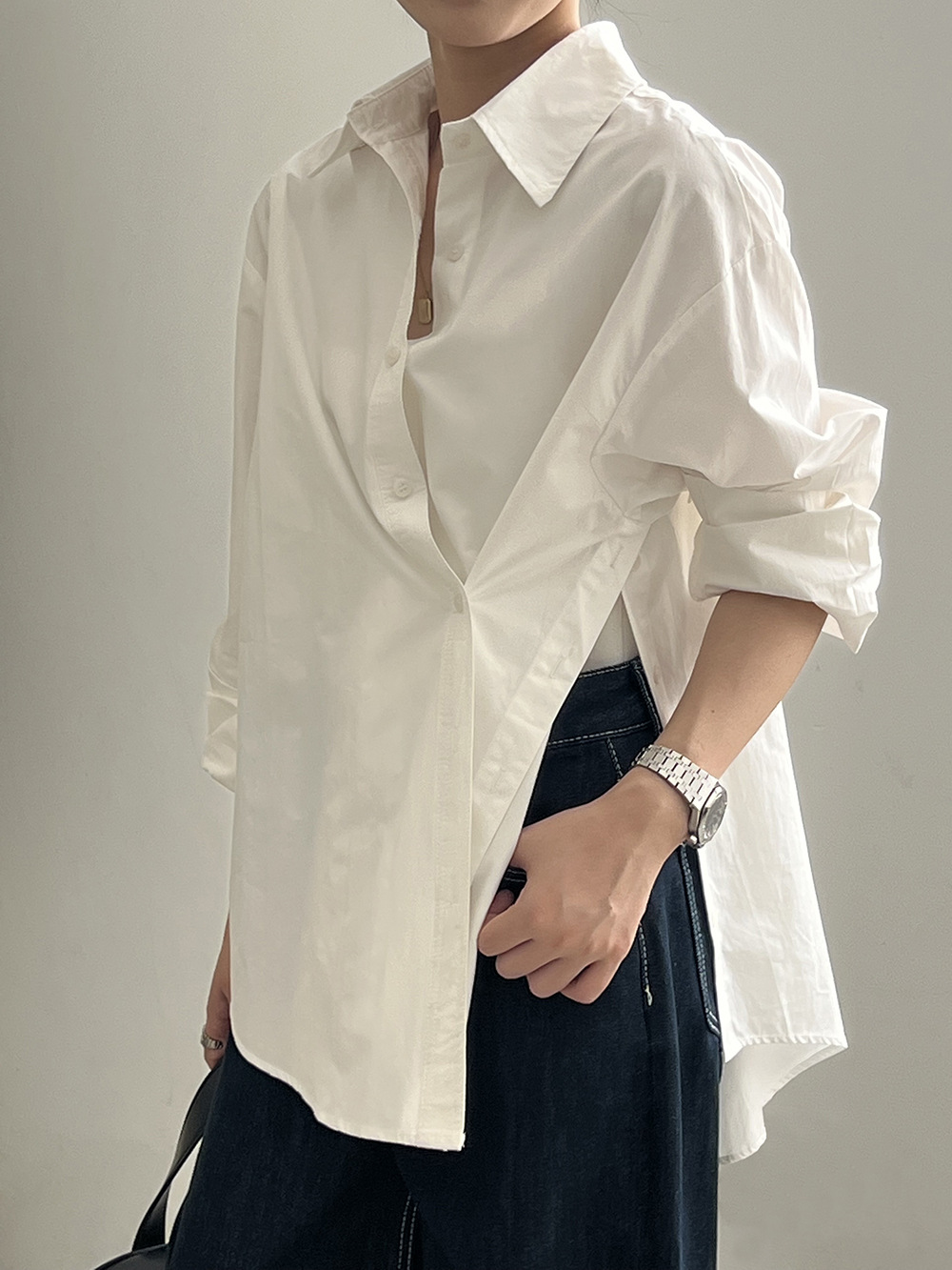 【商品名】【トップス】秋新作 韓国風 ミニマル 長袖 シャツ|斜めボタン×シンプル美シルエット|【SNシリーズ】