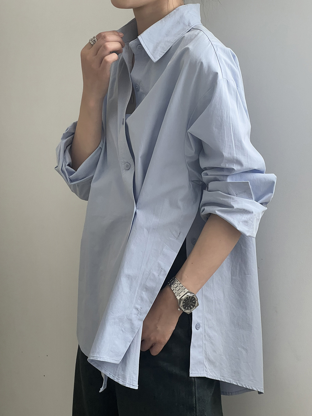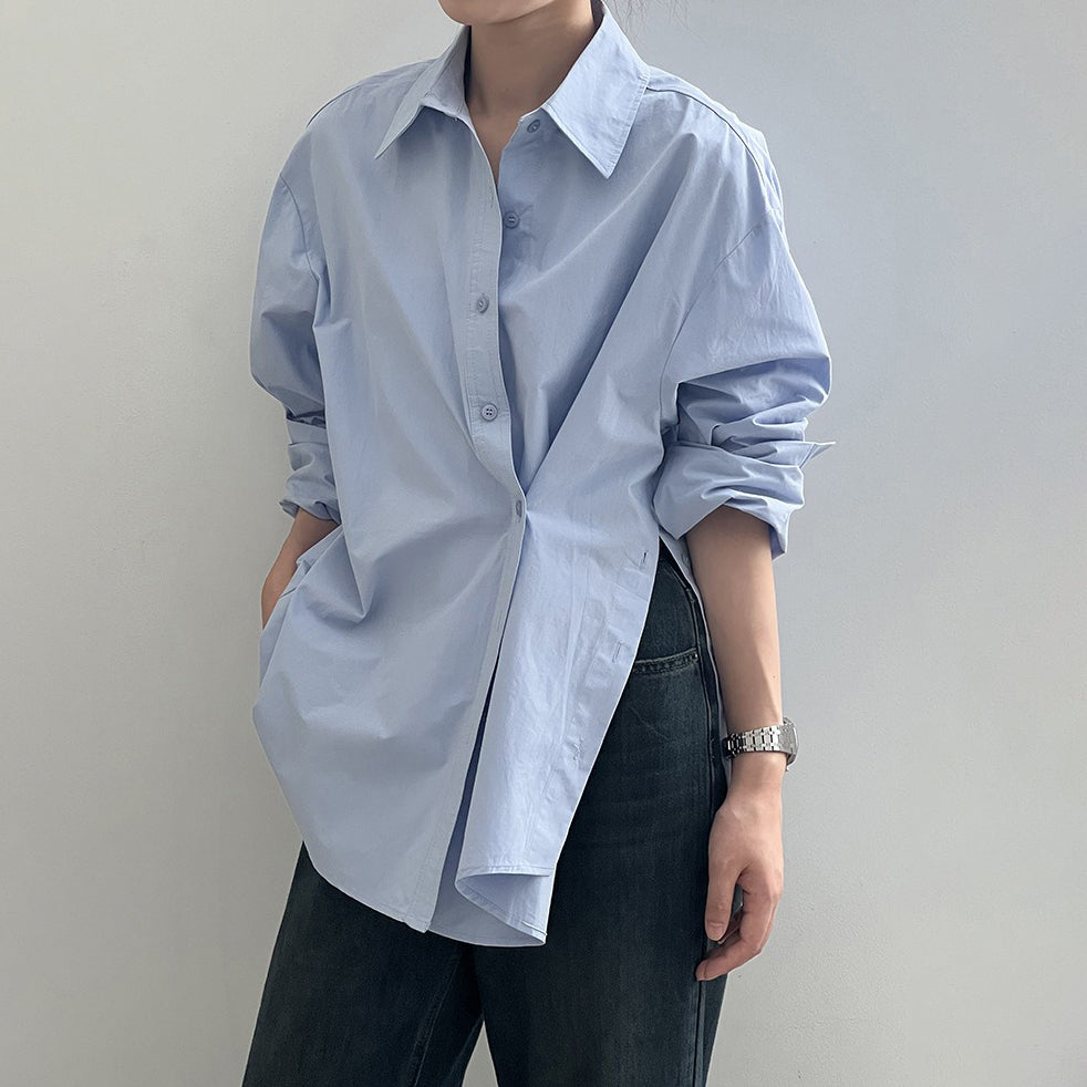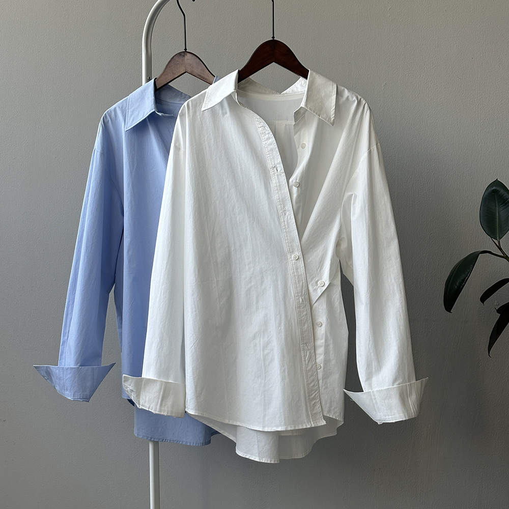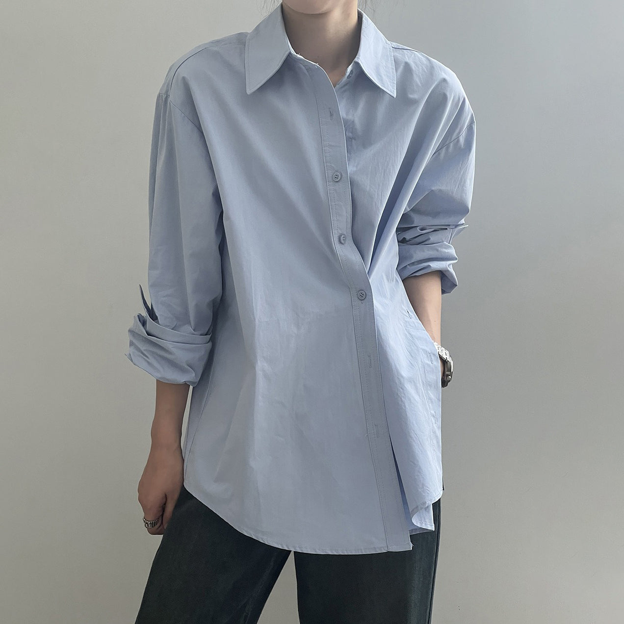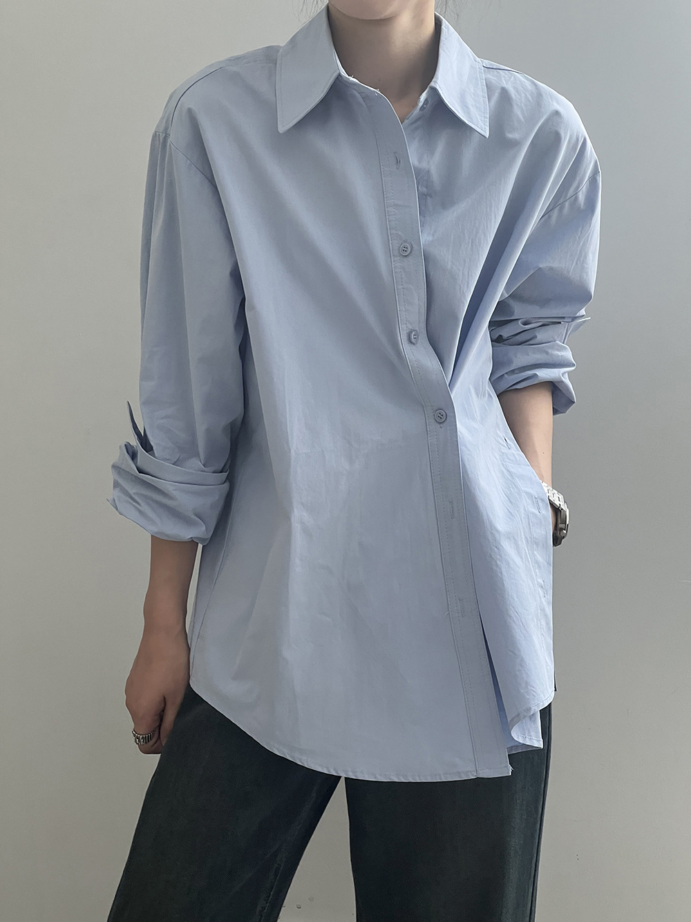 【商品名】【トップス】秋新作 韓国風 ミニマル 長袖 シャツ|斜めボタン×シンプル美シルエット|【SNシリーズ】
