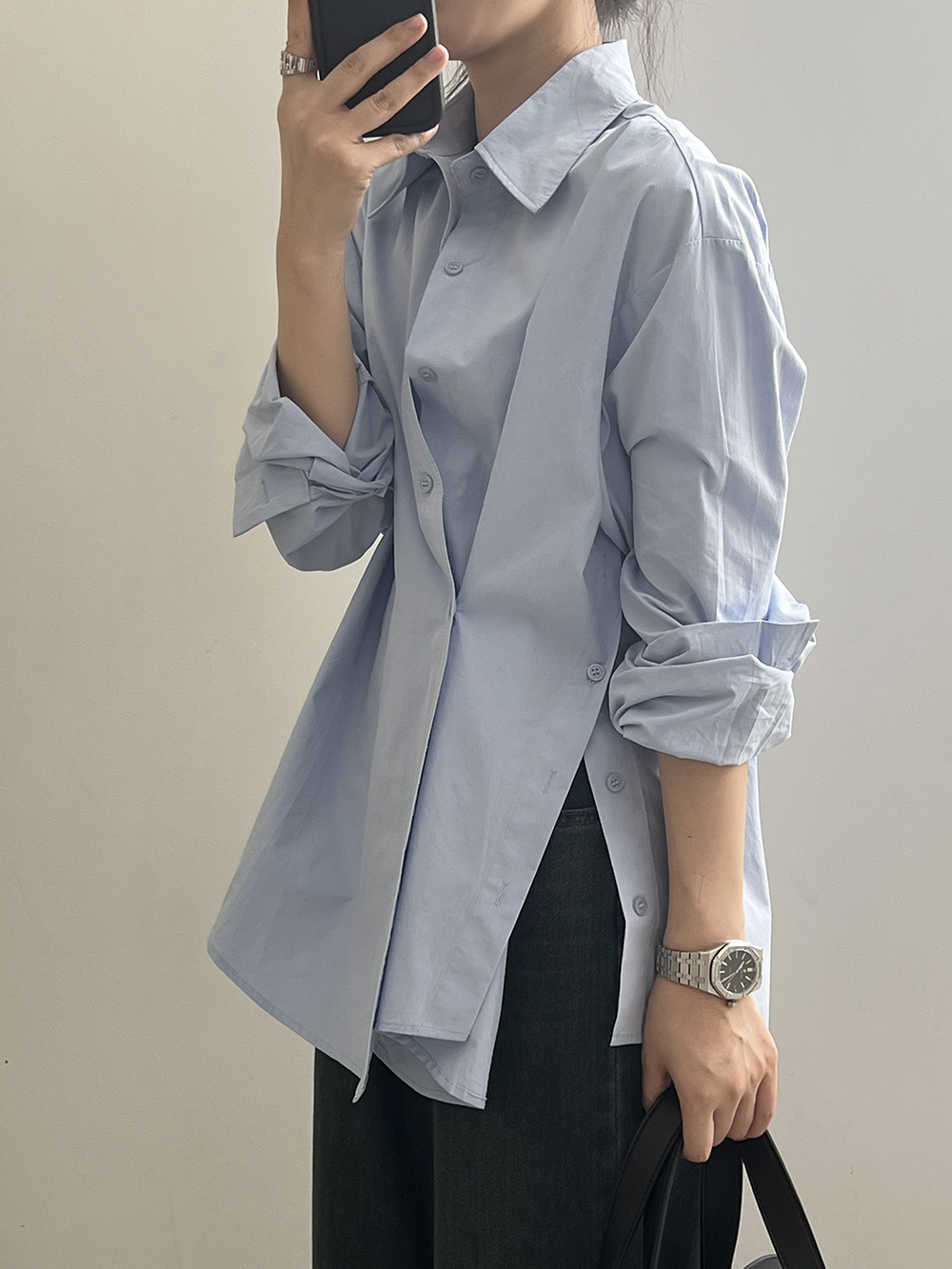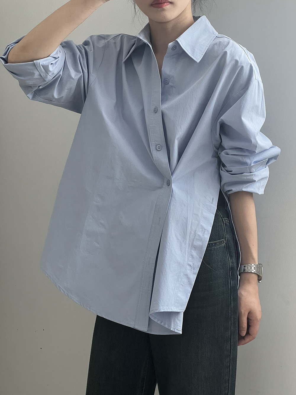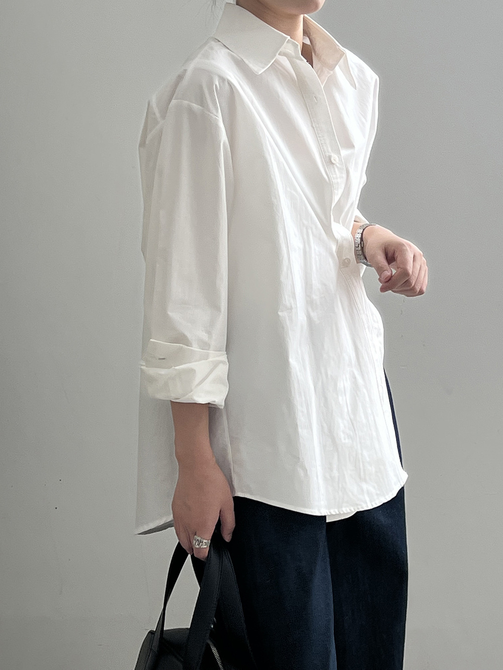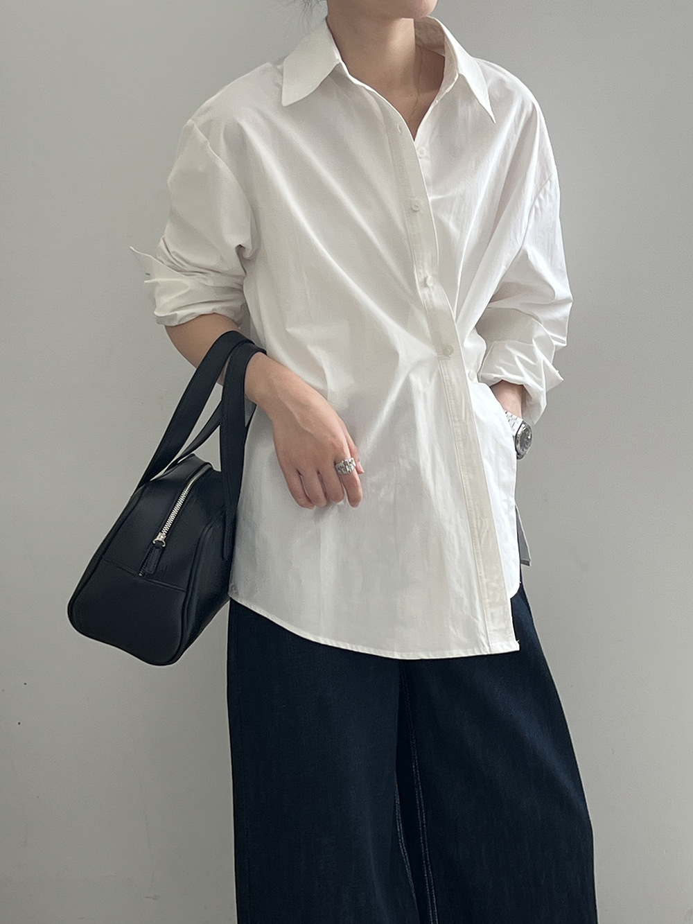 【商品名】【トップス】秋新作 韓国風 ミニマル 長袖 シャツ|斜めボタン×シンプル美シルエット|【SNシリーズ】