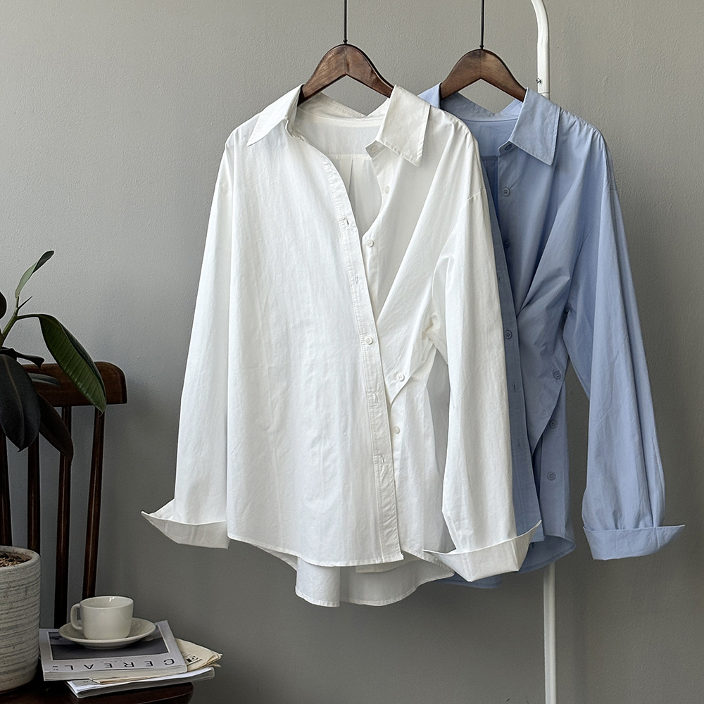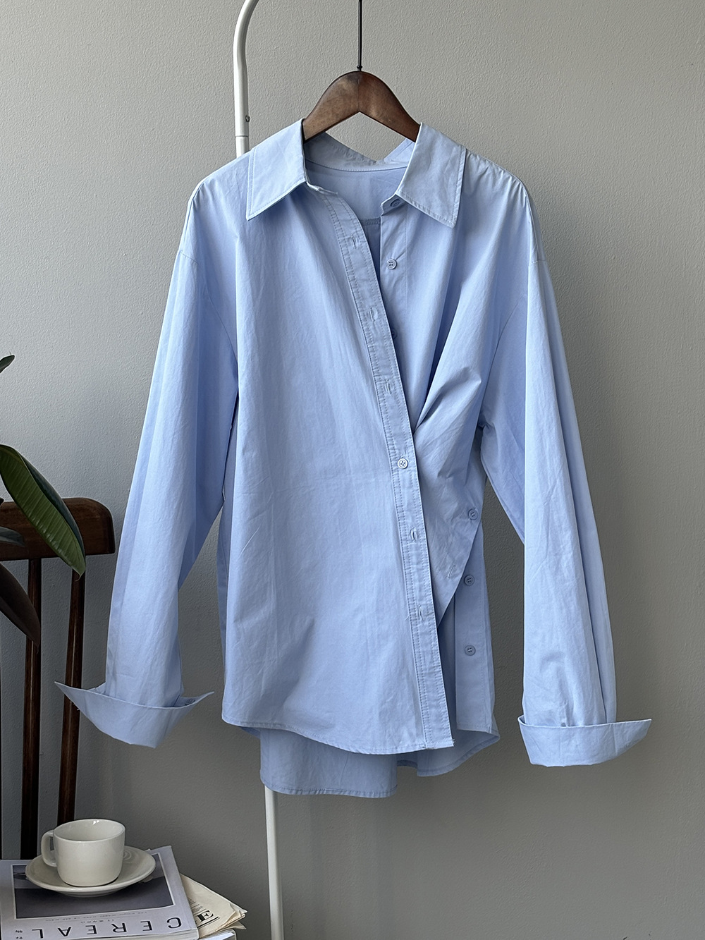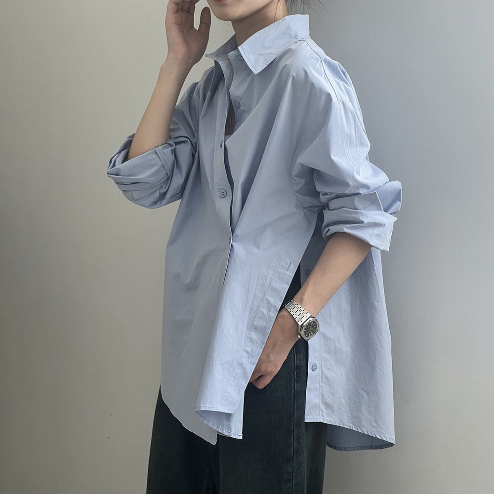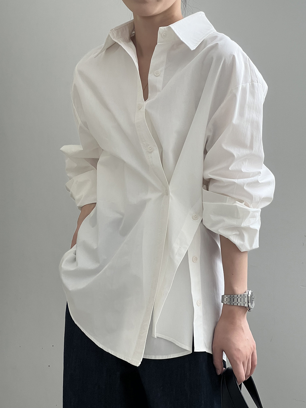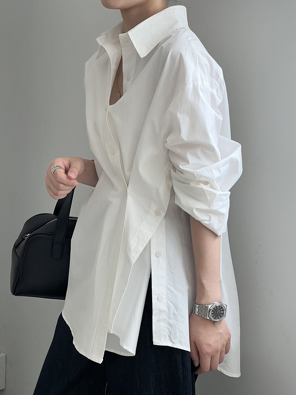 【商品名】【トップス】秋新作 韓国風 ミニマル 長袖 シャツ|斜めボタン×シンプル美シルエット|【SNシリーズ】