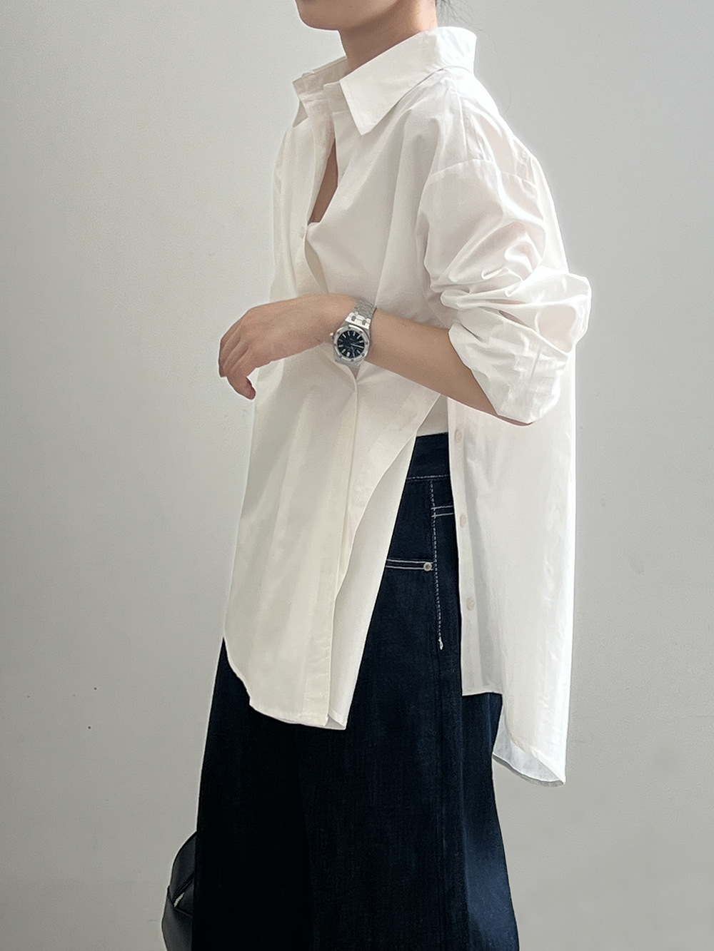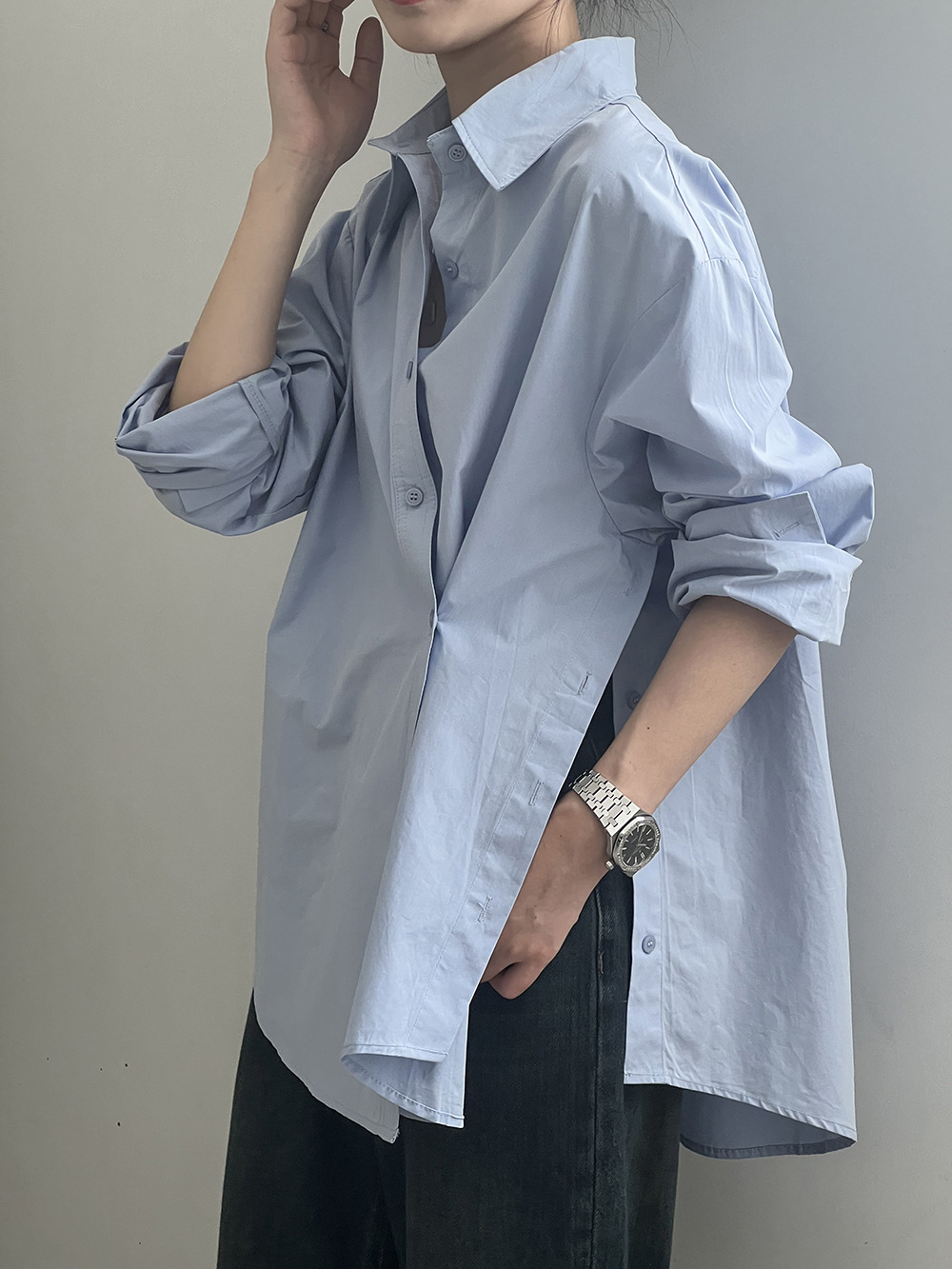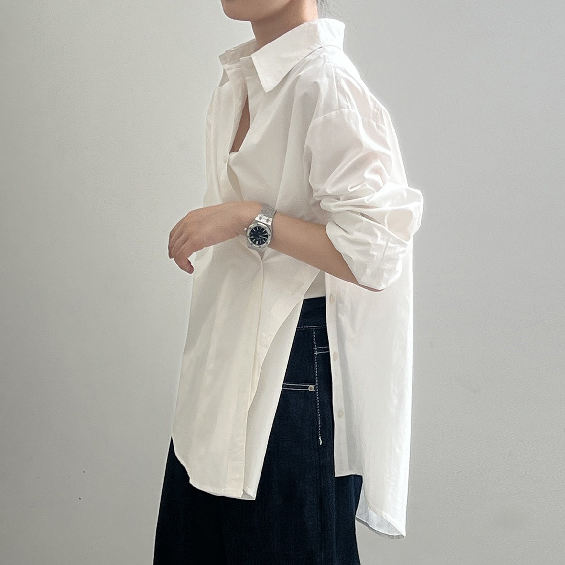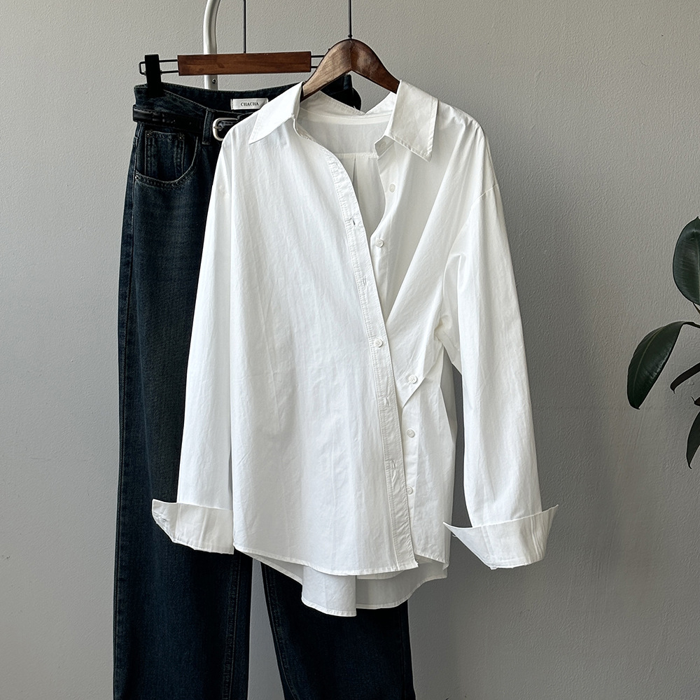 【商品名】【トップス】秋新作 韓国風 ミニマル 長袖 シャツ|斜めボタン×シンプル美シルエット|【SNシリーズ】