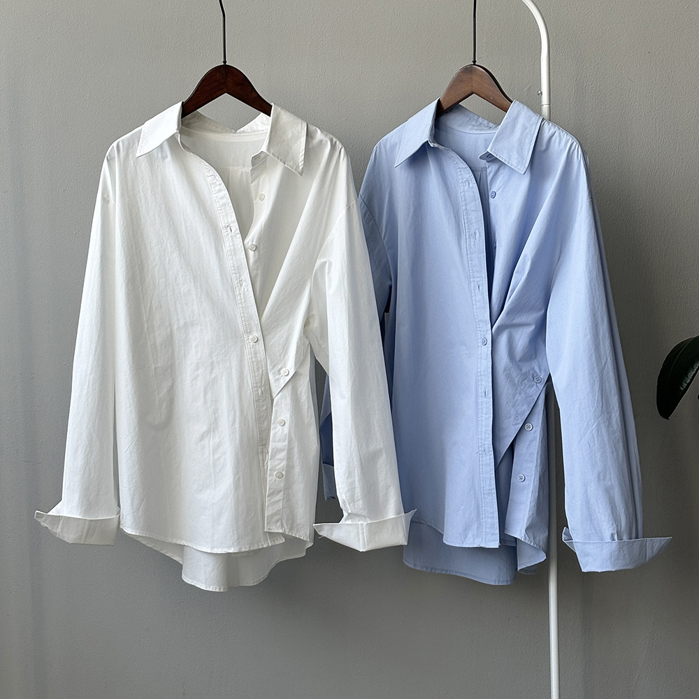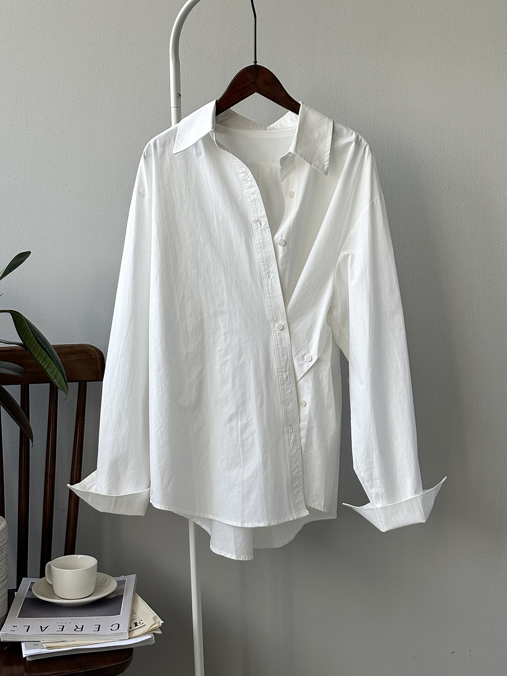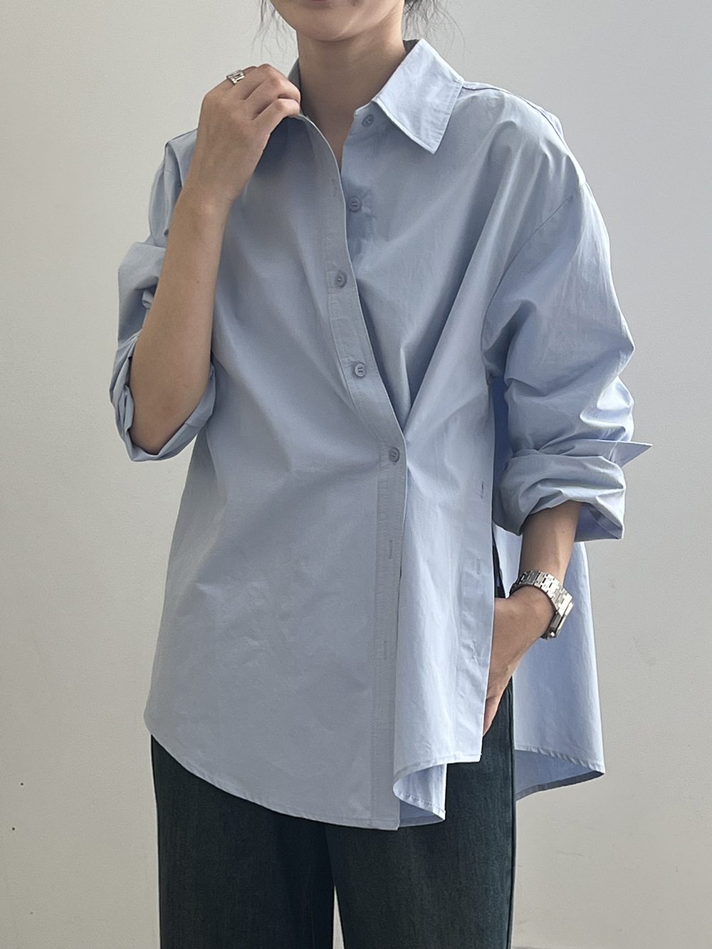 【トップス】秋新作 韓国風 ミニマル 長袖 シャツ|斜めボタン×シンプル美シルエット|【SNシリーズ】