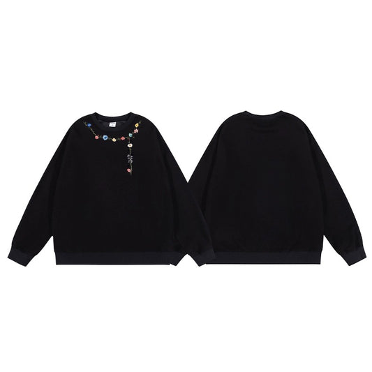 全7色【トップス】🌼花柄プリント クルーネック スウェット ユニセックス 秋 裏起毛 厚手 パーカー【FCシリーズ】