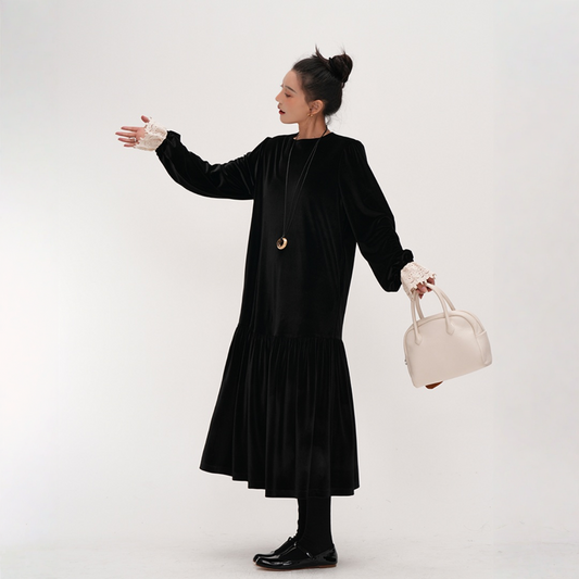 【ワンピース】オードリー風 ベロア 春 秋 冬 長袖 ワンピース 【JZシリーズ】