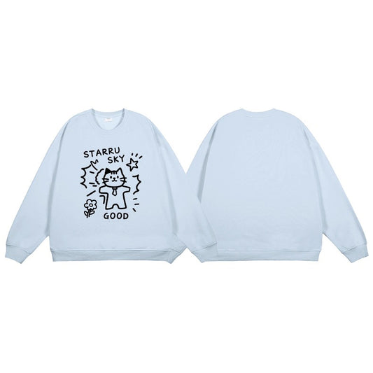 全7色【トップス】🐾子猫柄 クルーネック スウェット ユニセックス 秋冬 ゆったり かわいい パーカー【FCシリーズ】
