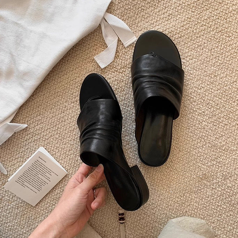 【シューズ】ミニマル×ギャザーサマーミュール|ワイドアッパー×チャンキーヒールの履きやすさ抜群レディースサンダル