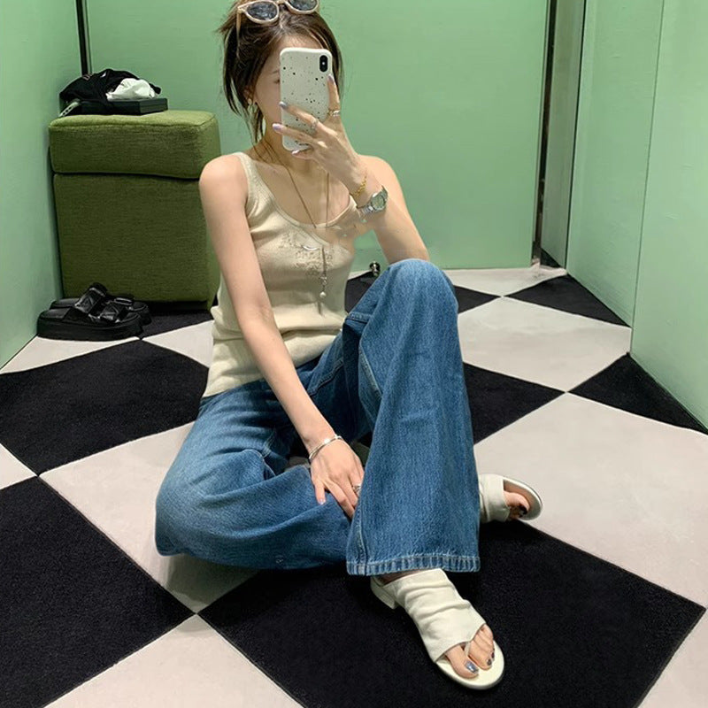 【ボトムス】ハイウエスト 刺繍入り スポーツパンツ レディース 春秋 ゆったり ワイド【FCシリーズ】