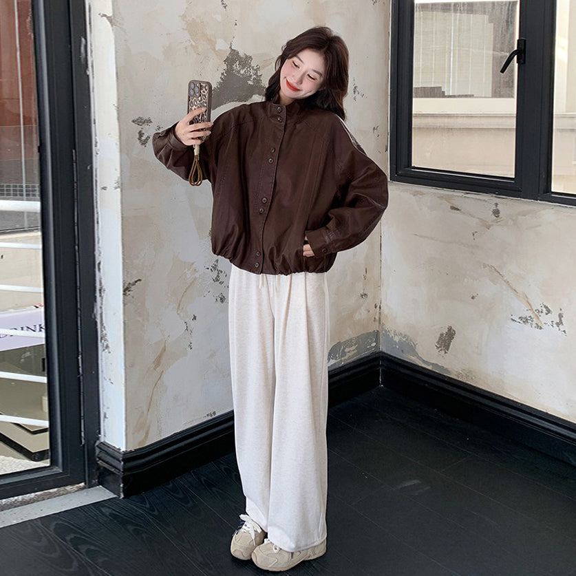 【セットアップ】【単品注文】ファー襟 スウェットアウター + カーブ ワイドパンツ 2点上下セット 【JZシリーズ】