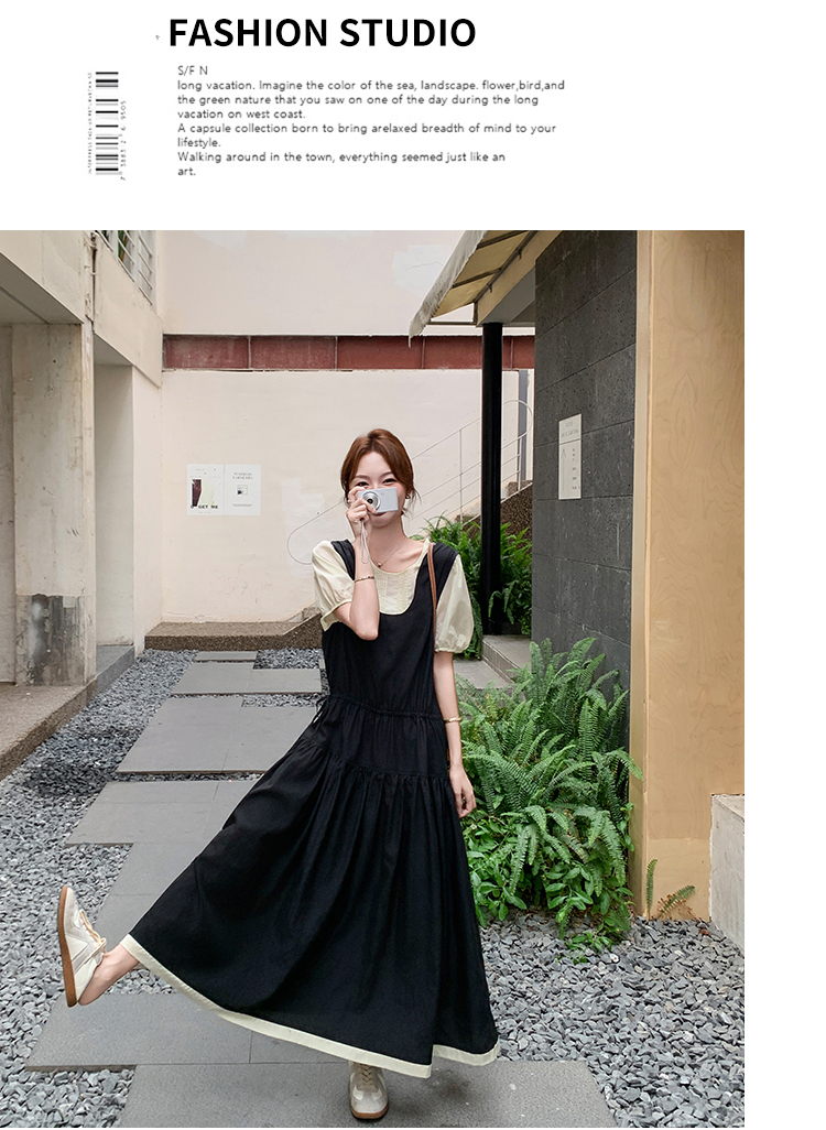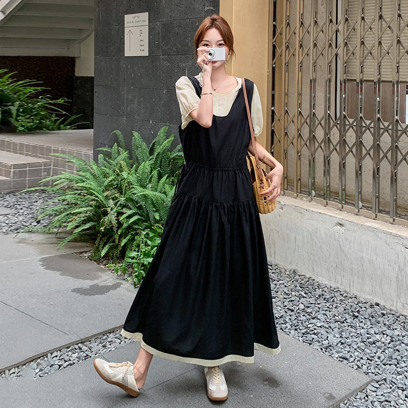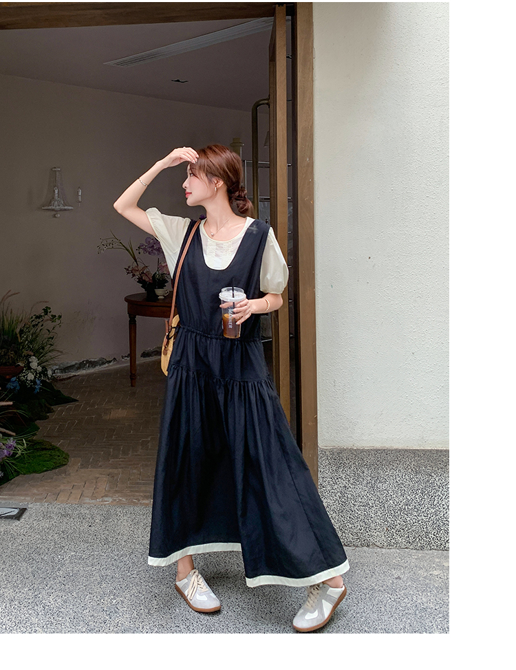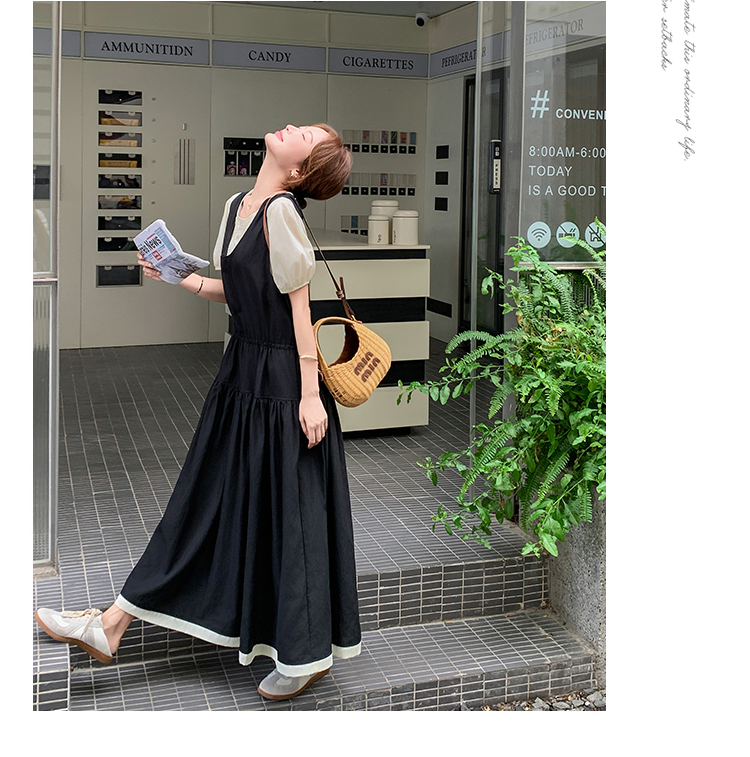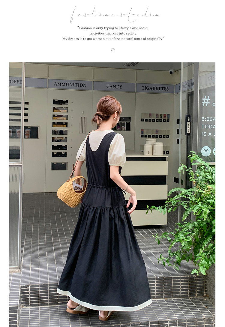 【商品名】2点セット!【セットアップ】夏人気 若見えコーデ サロペットワンピース+トップス 2点セット レディース フレンチ風 上品ロング丈セットアップ【JZシリーズ】
