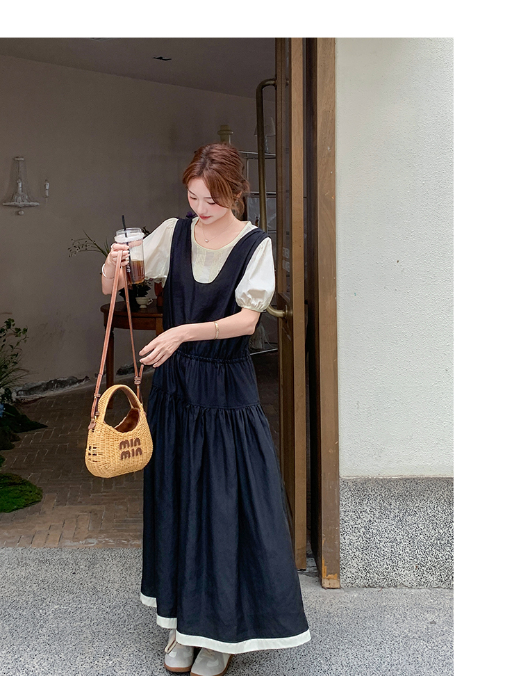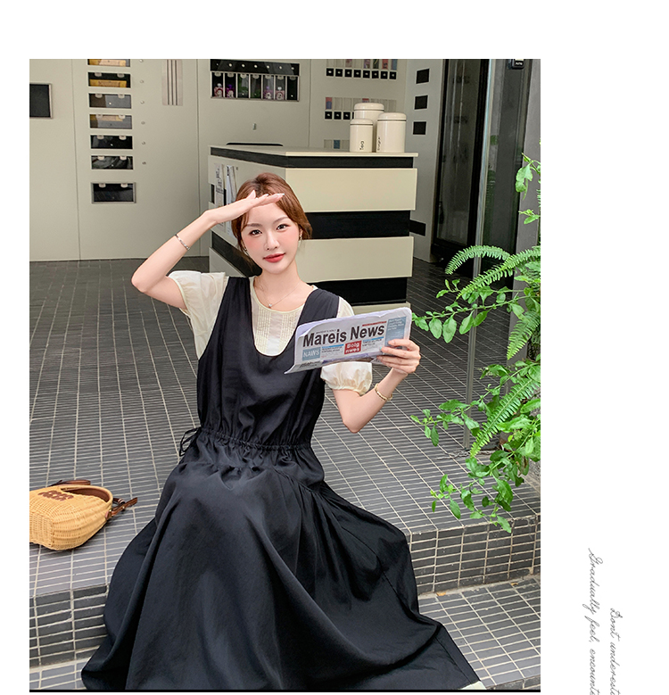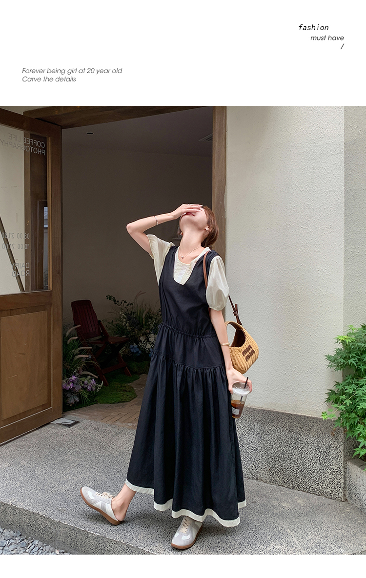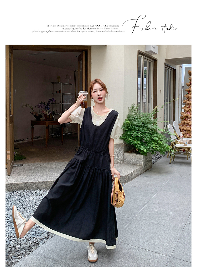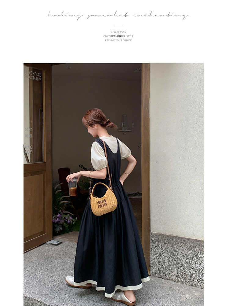 【商品名】2点セット!【セットアップ】夏人気 若見えコーデ サロペットワンピース+トップス 2点セット レディース フレンチ風 上品ロング丈セットアップ【JZシリーズ】