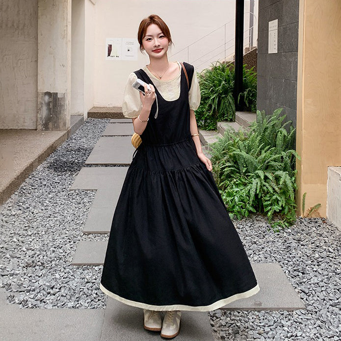 2点セット!【セットアップ】夏人気 若見えコーデ サロペットワンピース+トップス 2点セット レディース フレンチ風 上品ロング丈セットアップ【JZシリーズ】