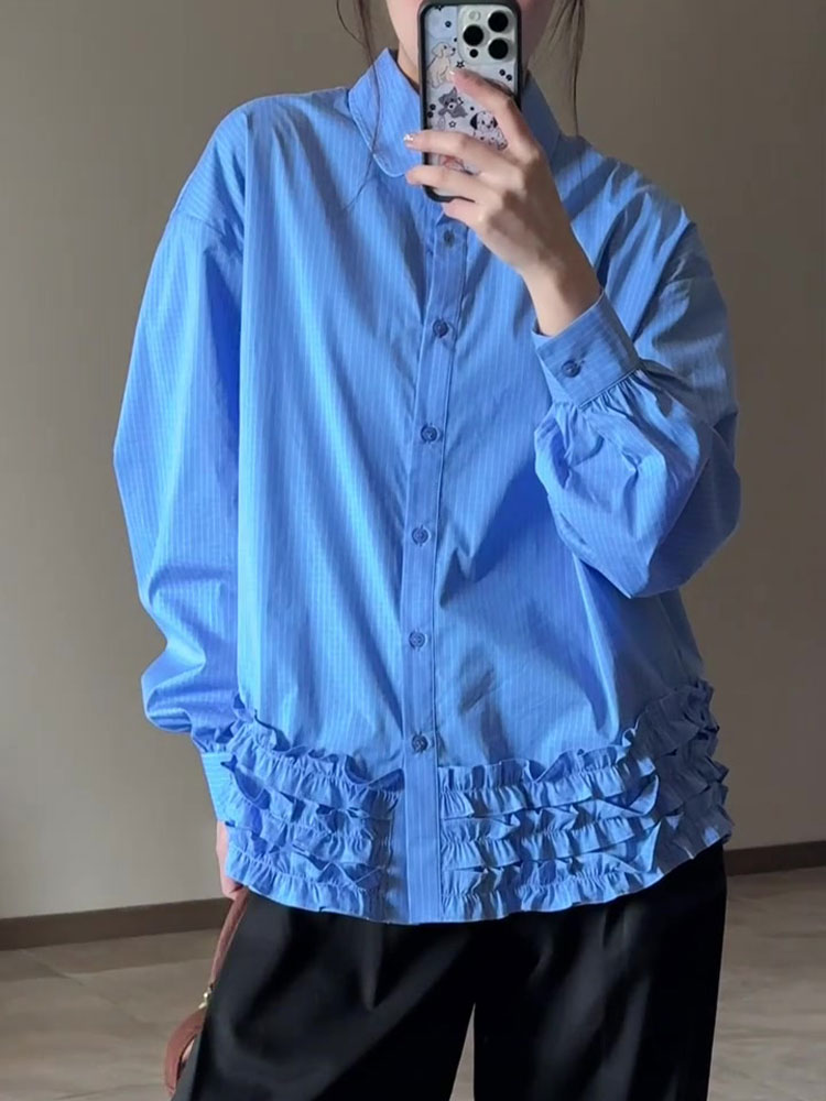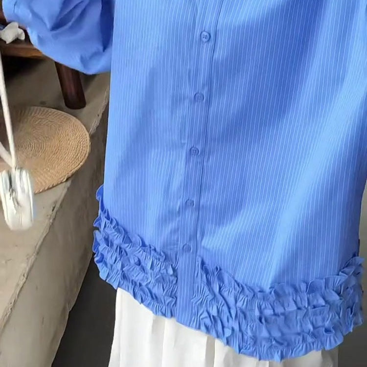 【商品名】【トップス】春 秋 冬 キュート フリル ポロ襟 シャツ 【JZシリーズ】