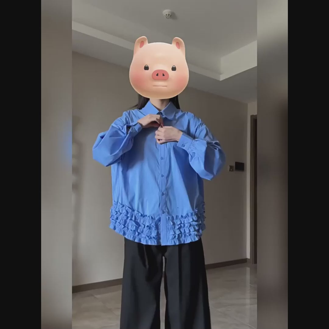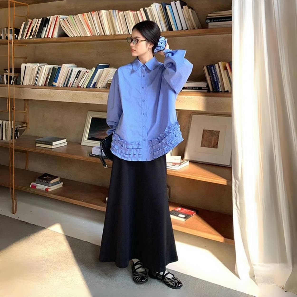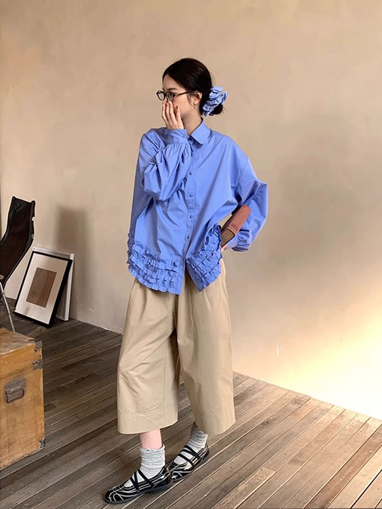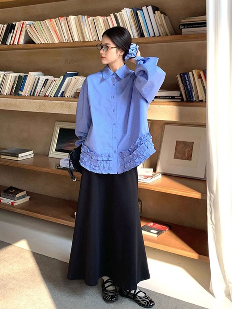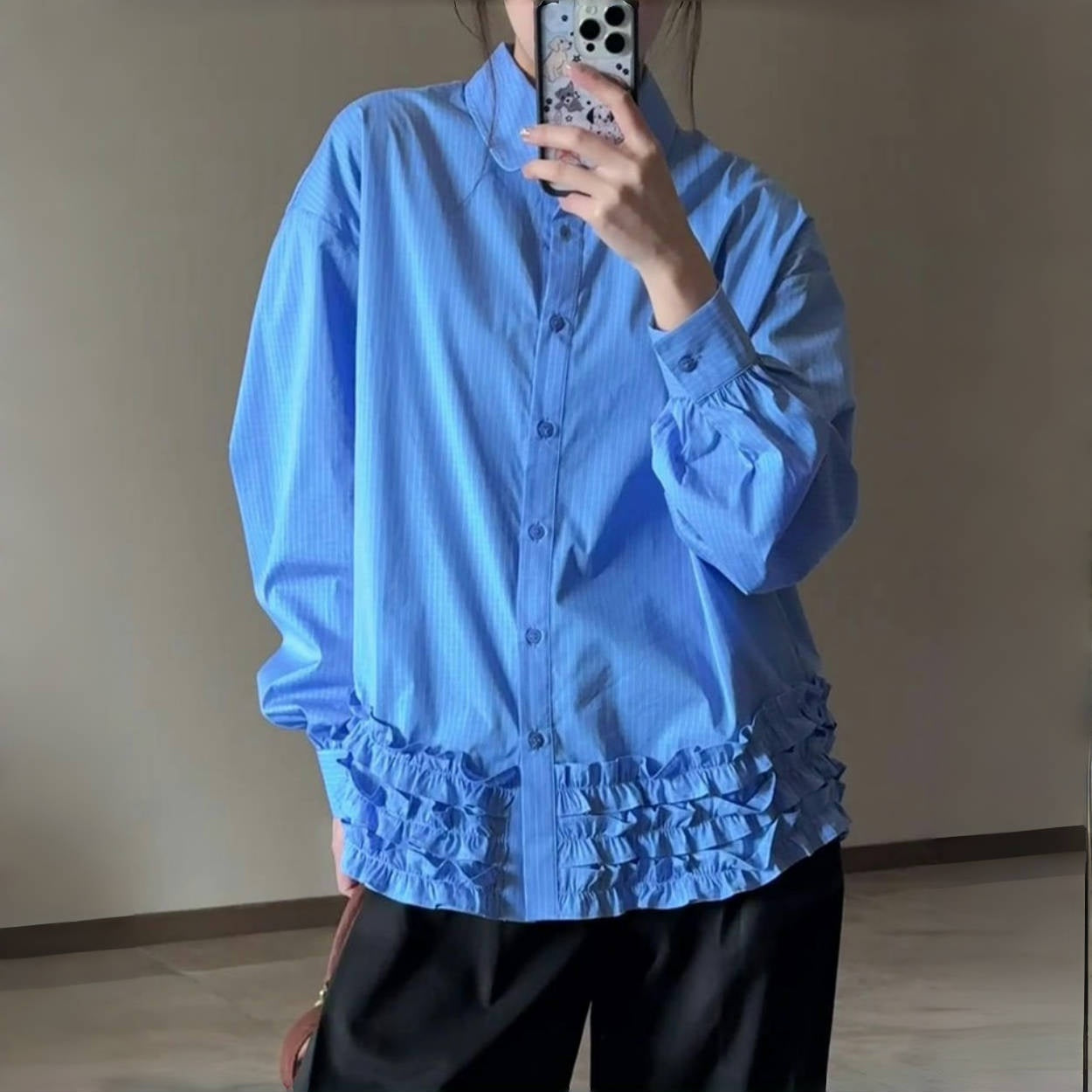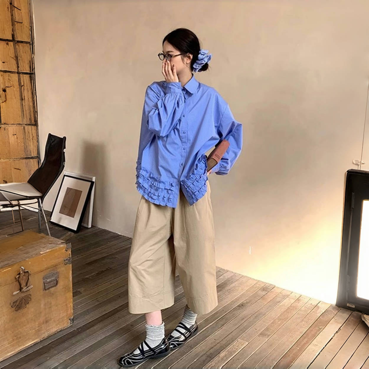 【トップス】春 秋 冬 キュート フリル ポロ襟 シャツ 【JZシリーズ】【10~15日発送】