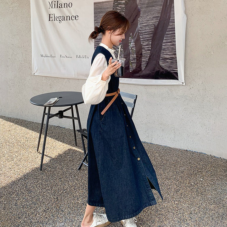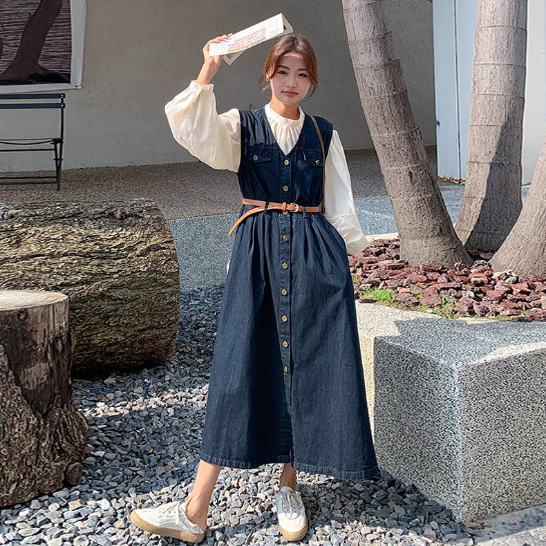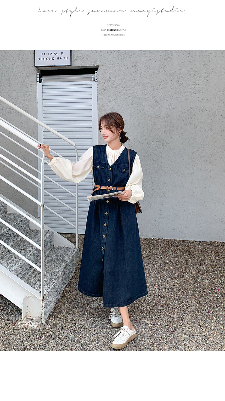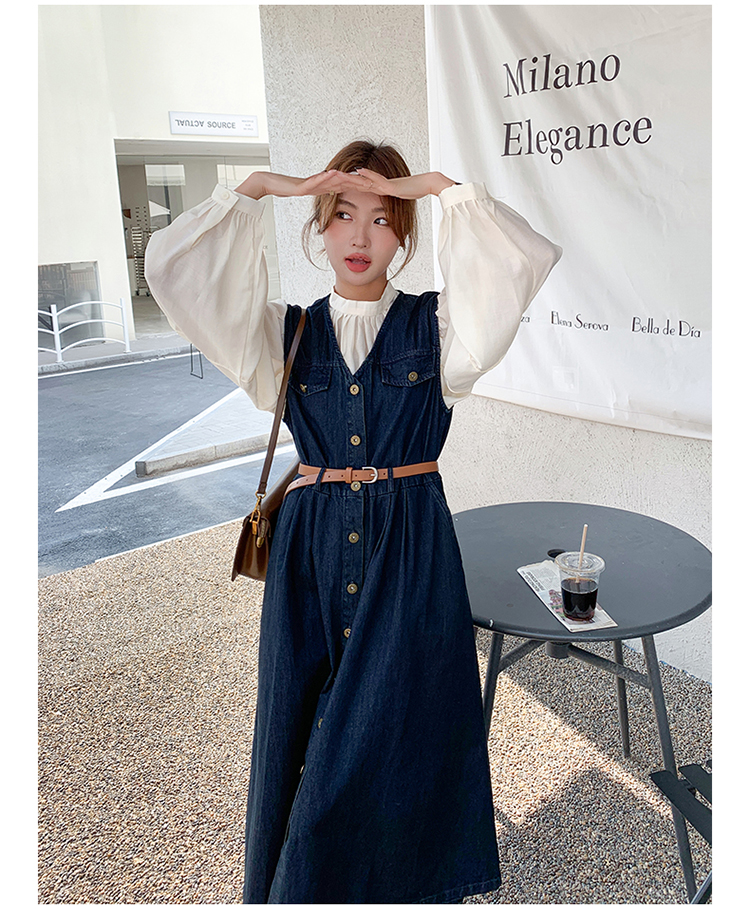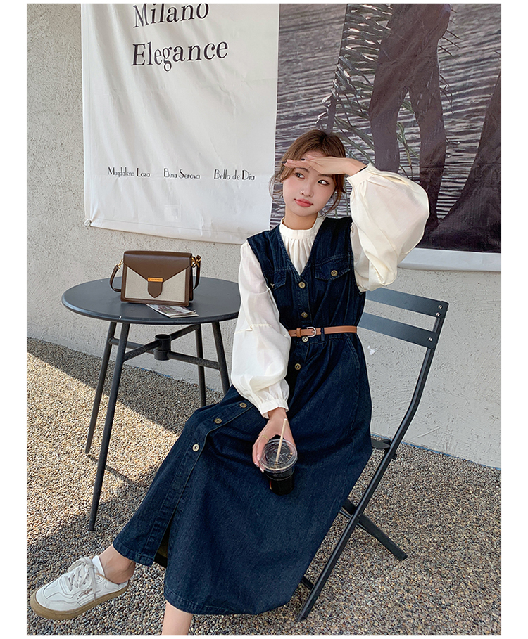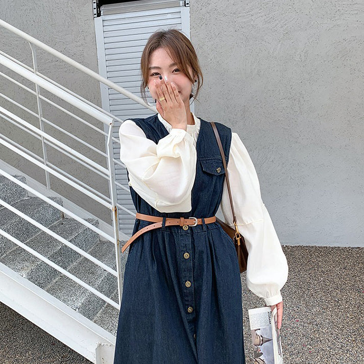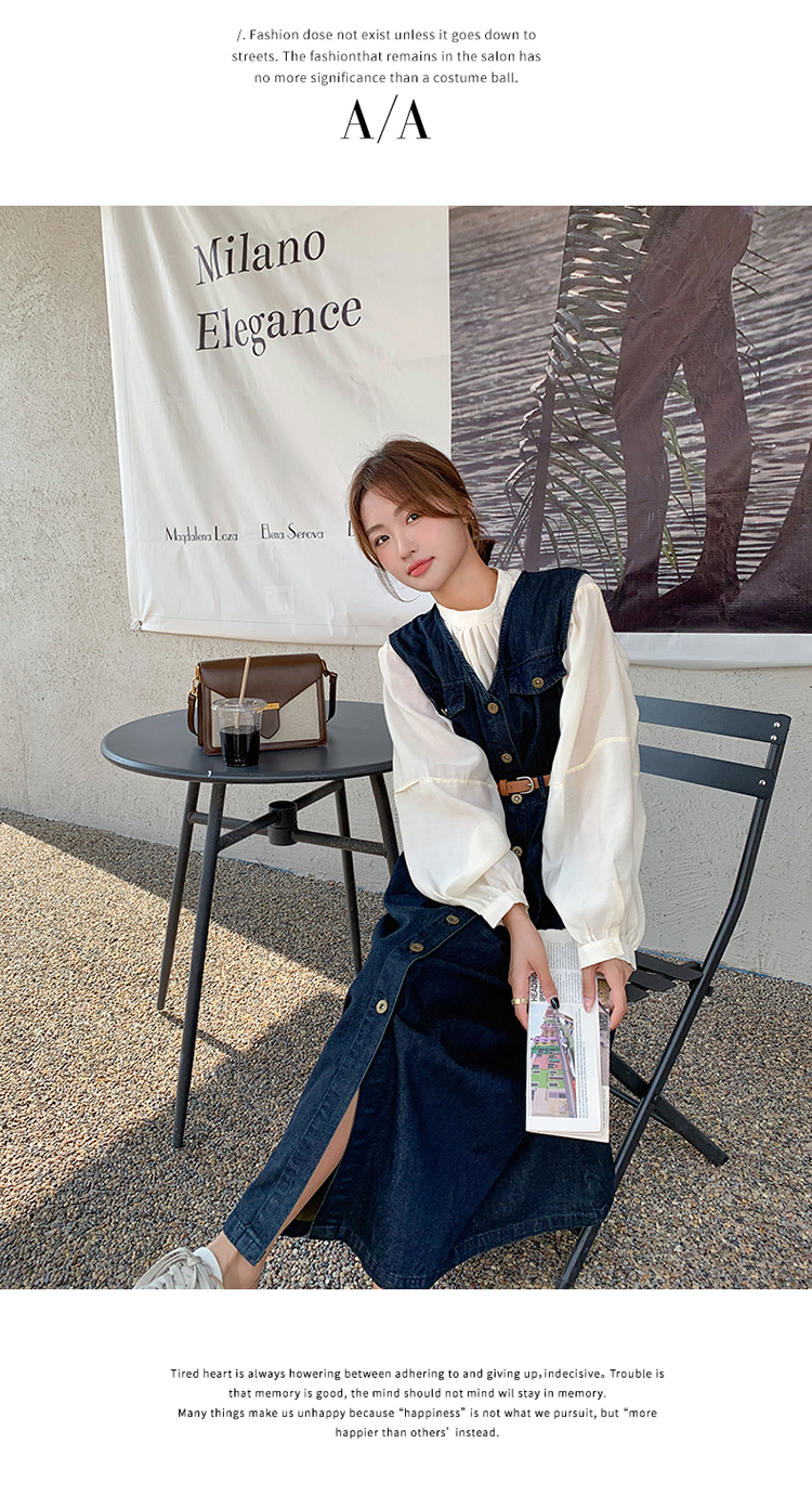 2点セット!【セットアップ】ヴィンテージデニムワンピースセット レディース 春秋 エレガント おしゃれ ブラウス+キャミワンピース 2点セット【JZシリーズ】