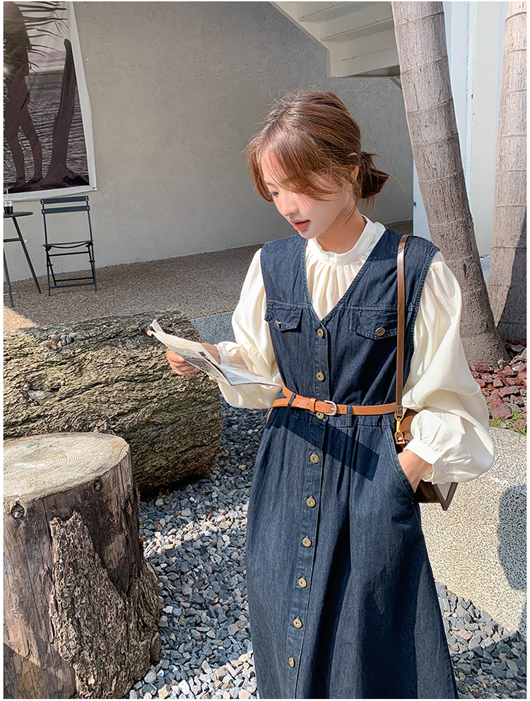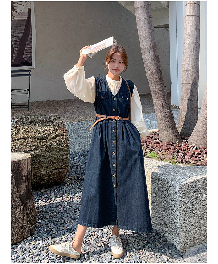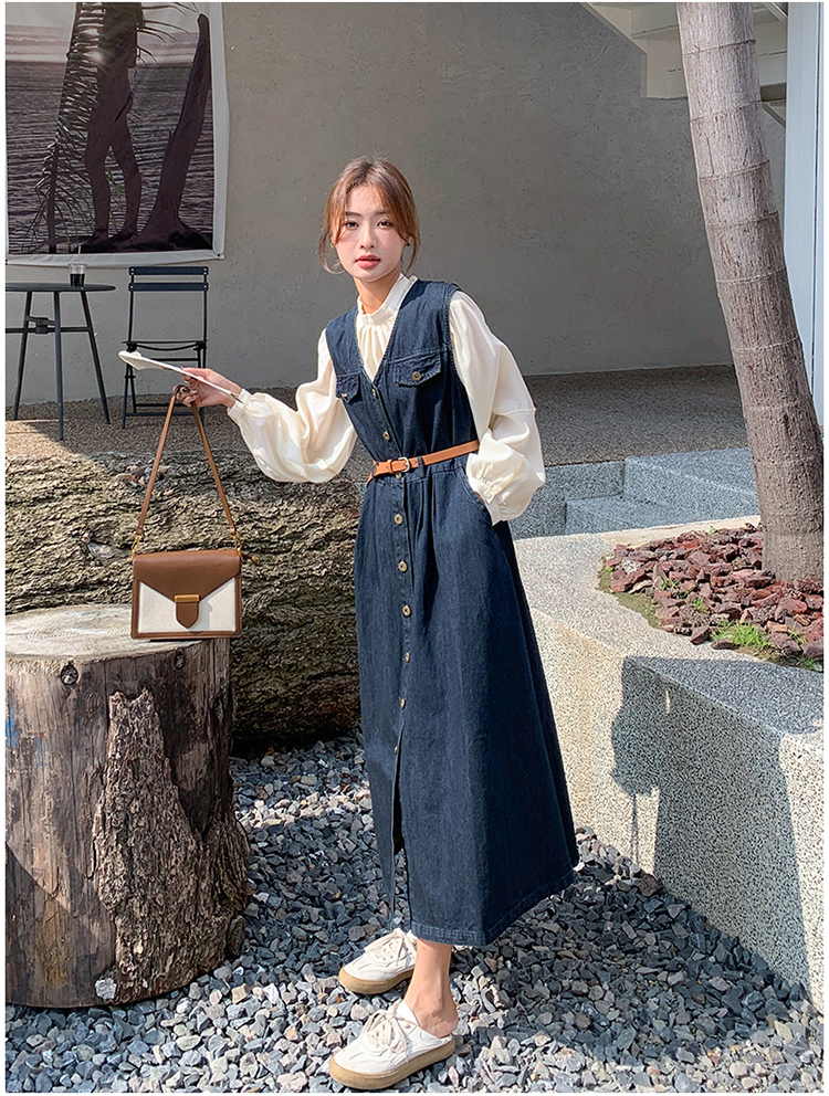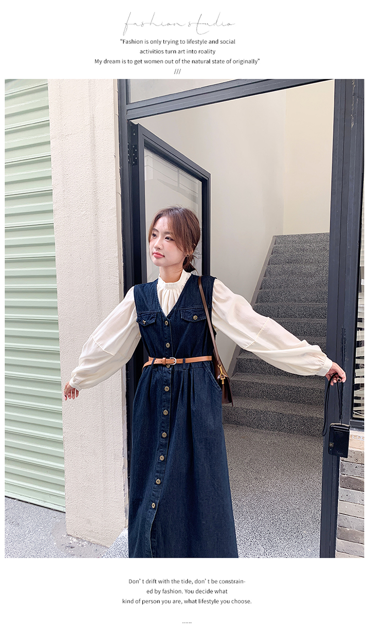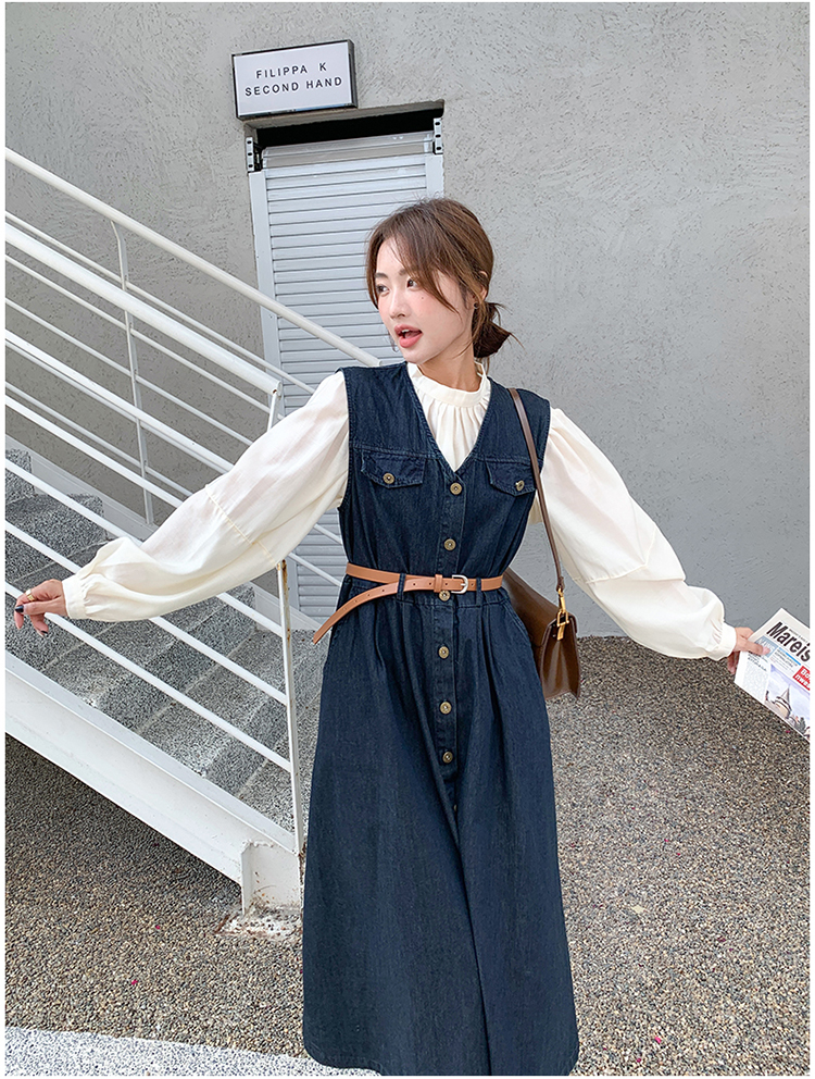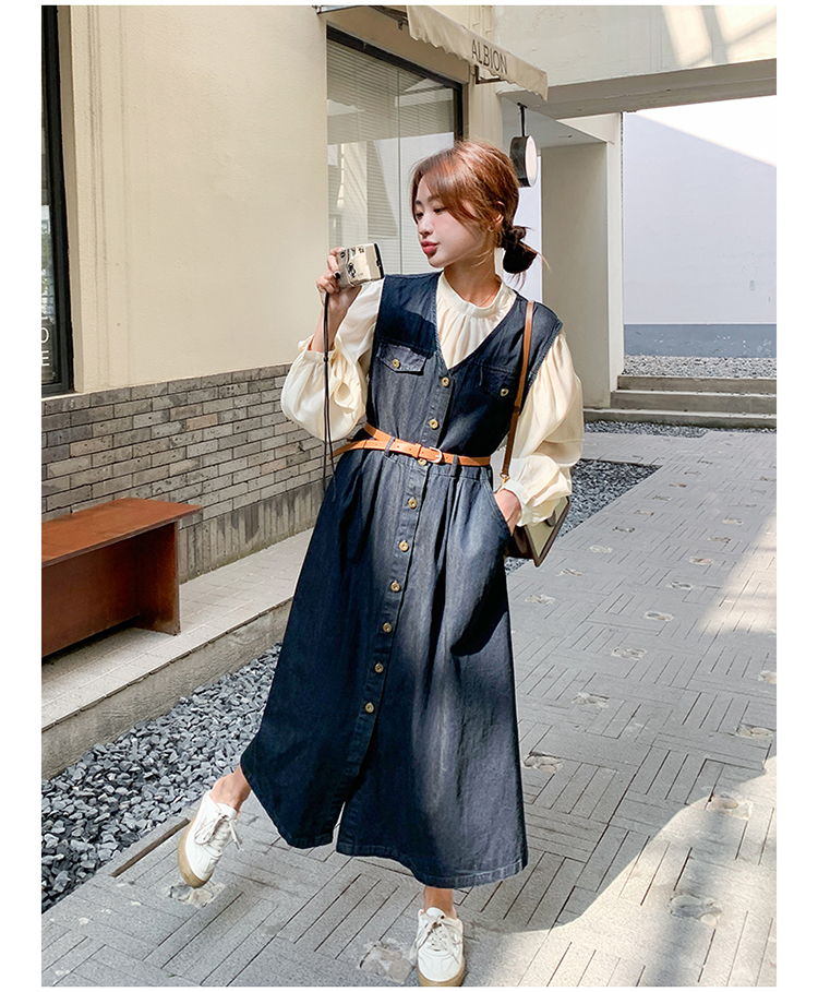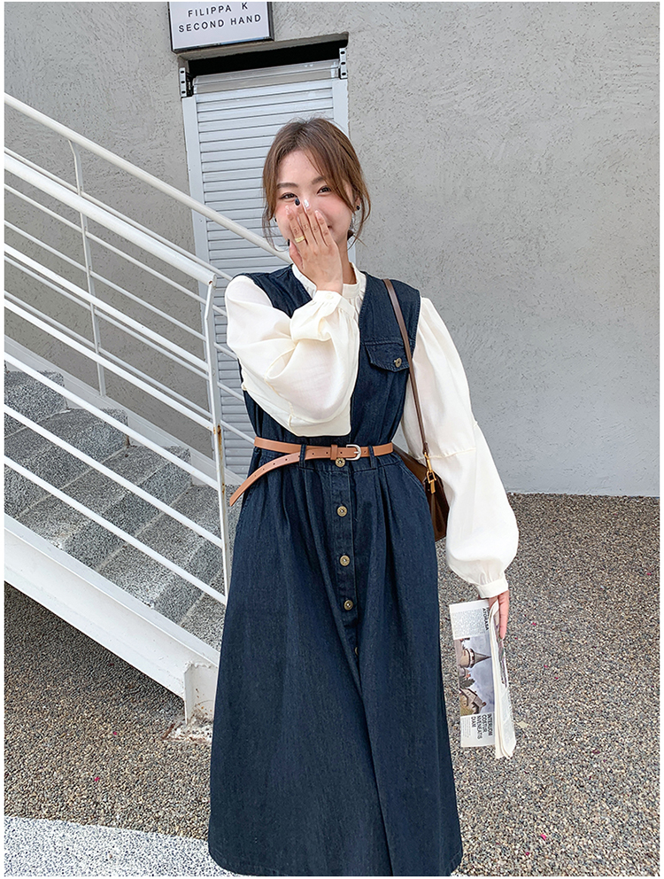 2点セット!【セットアップ】ヴィンテージデニムワンピースセット レディース 春秋 エレガント おしゃれ ブラウス+キャミワンピース 2点セット【JZシリーズ】