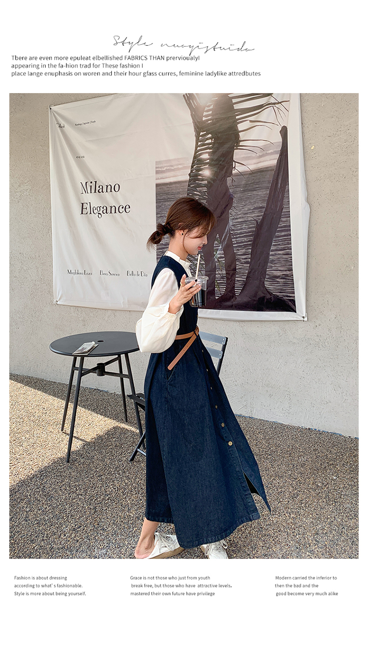 【商品名】2点セット!【セットアップ】ヴィンテージデニムワンピースセット レディース 春秋 エレガント おしゃれ ブラウス+キャミワンピース 2点セット【JZシリーズ】