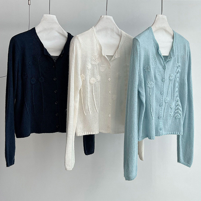 【トップス】春 秋 冬 かぎ針編み刺繍 カーディガン セーター 【JZシリーズ】