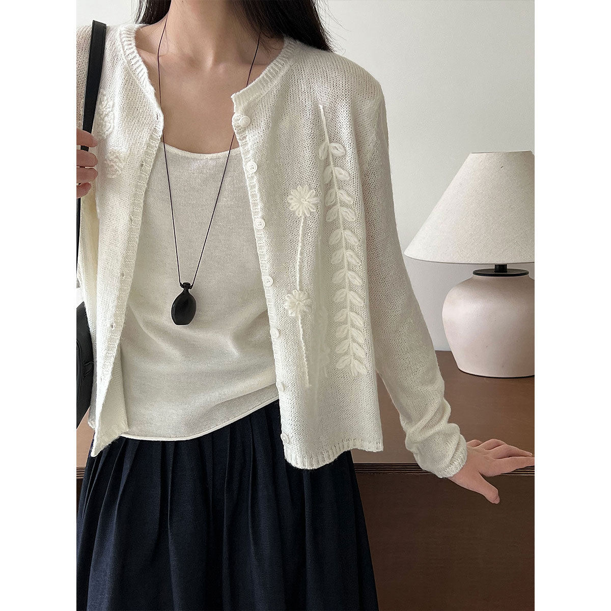 【商品名】【トップス】春 秋 冬 かぎ針編み刺繍 カーディガン セーター 【JZシリーズ】