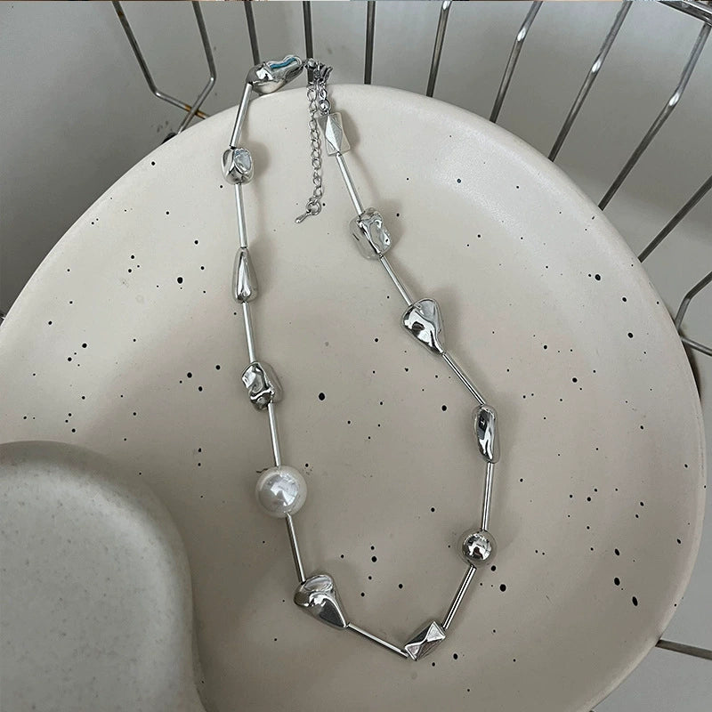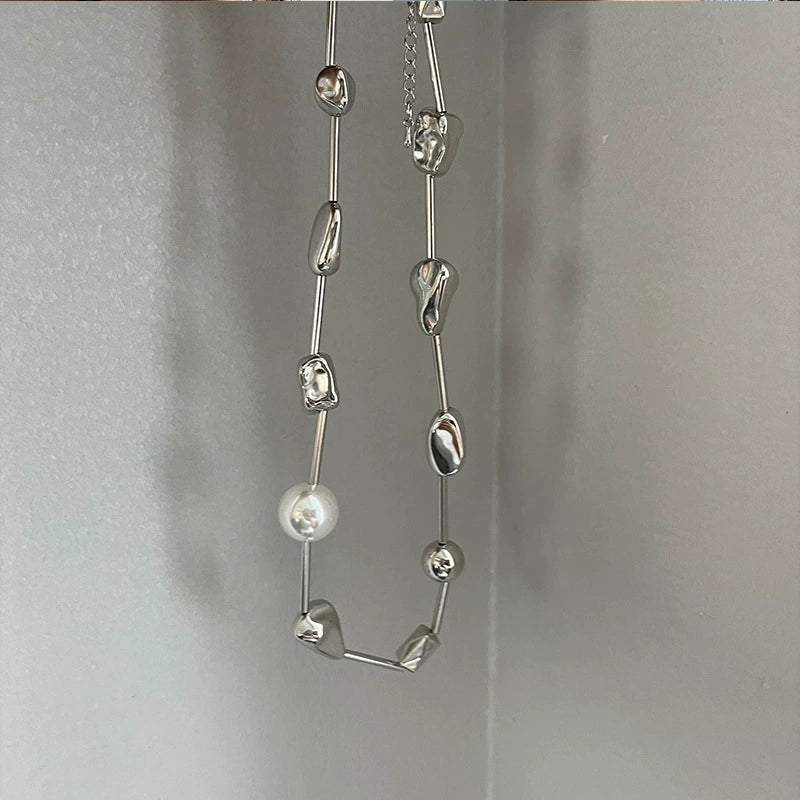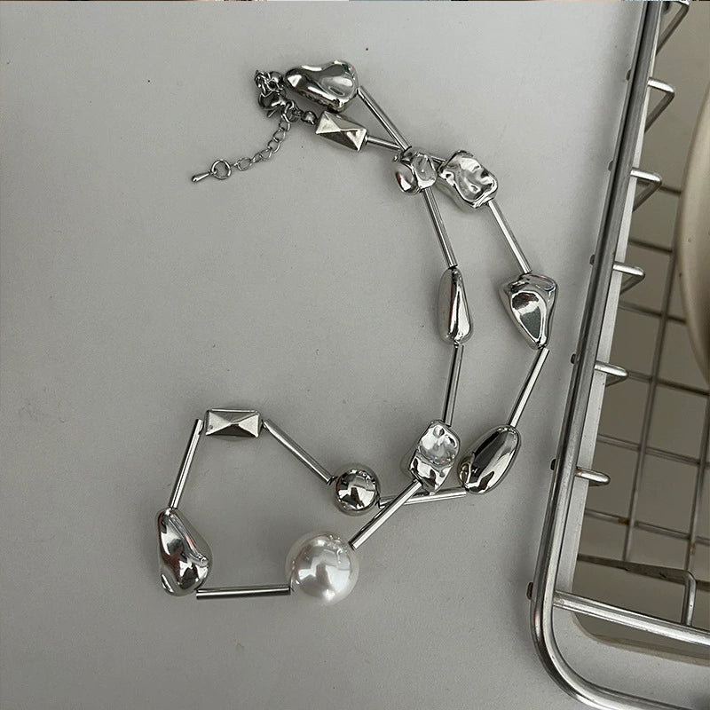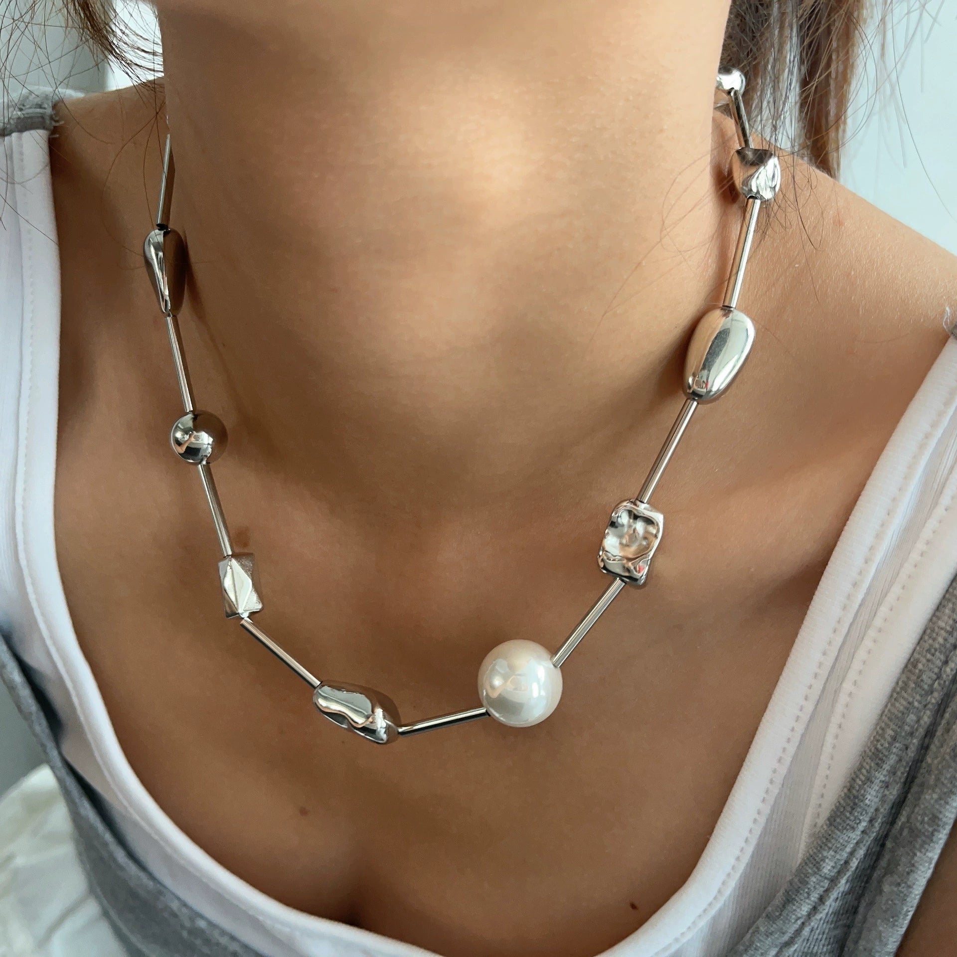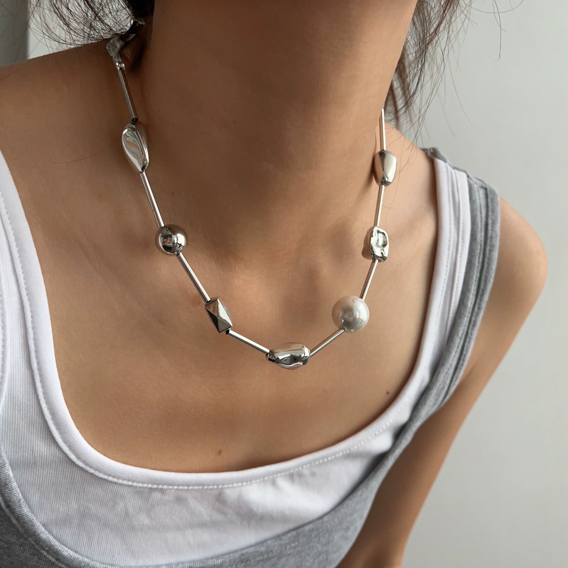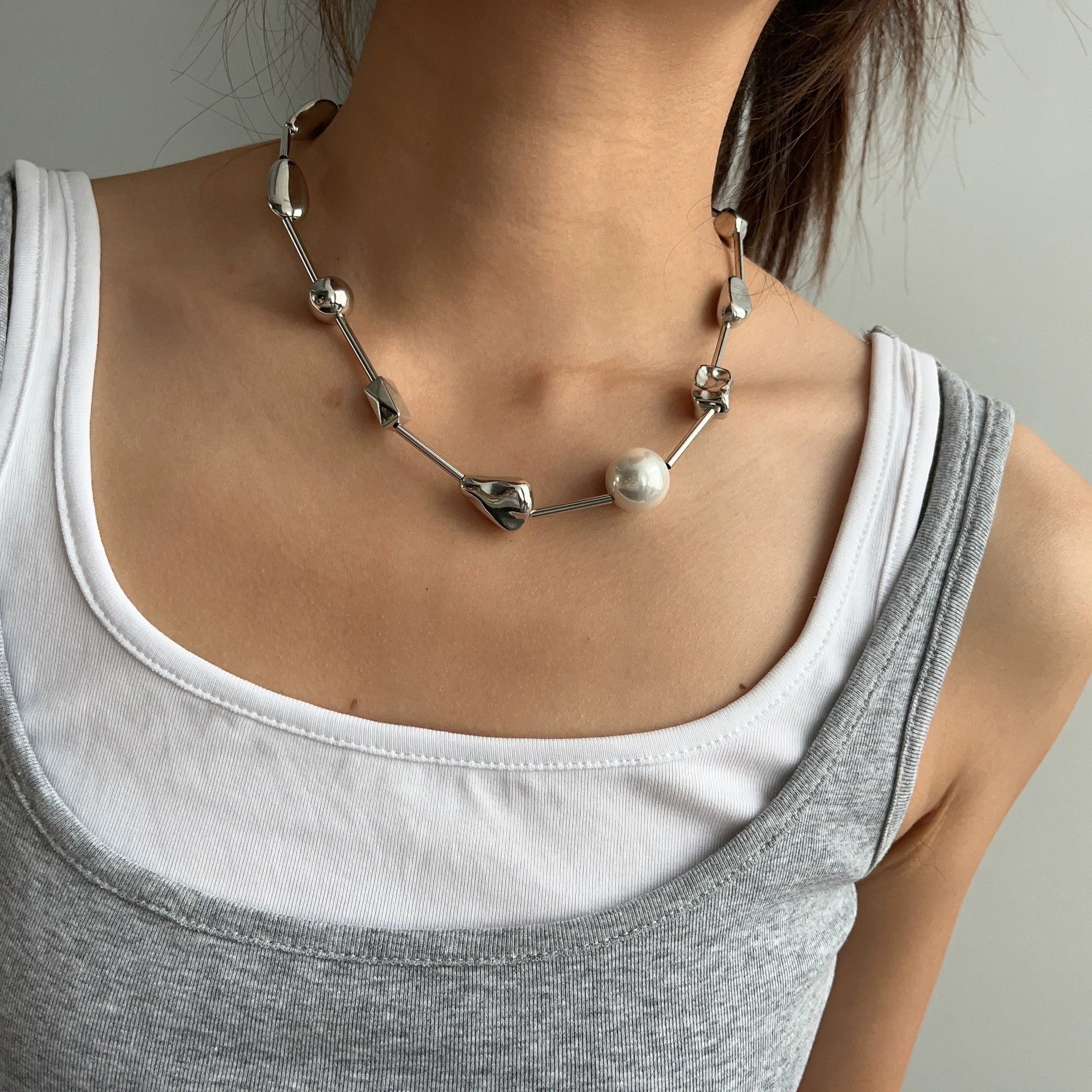 【商品名】【グッズ】メタル×パール ネックレス レディース 高級感 個性派 チョーカー チョーカーネックレス
