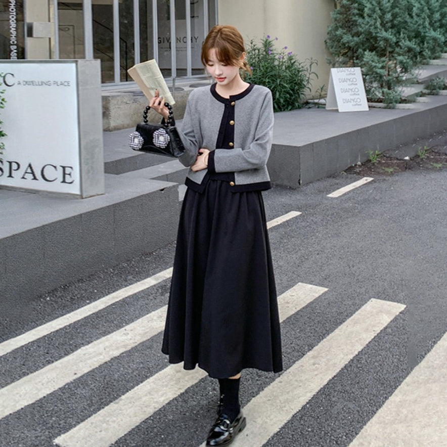 2点セット!【セットアップ】ニットセットワンピース レディース 春秋 高級感コーデ 2点セット 韓国風 おしゃれ トレンド【JZシリーズ】