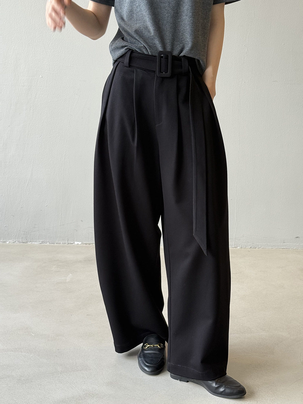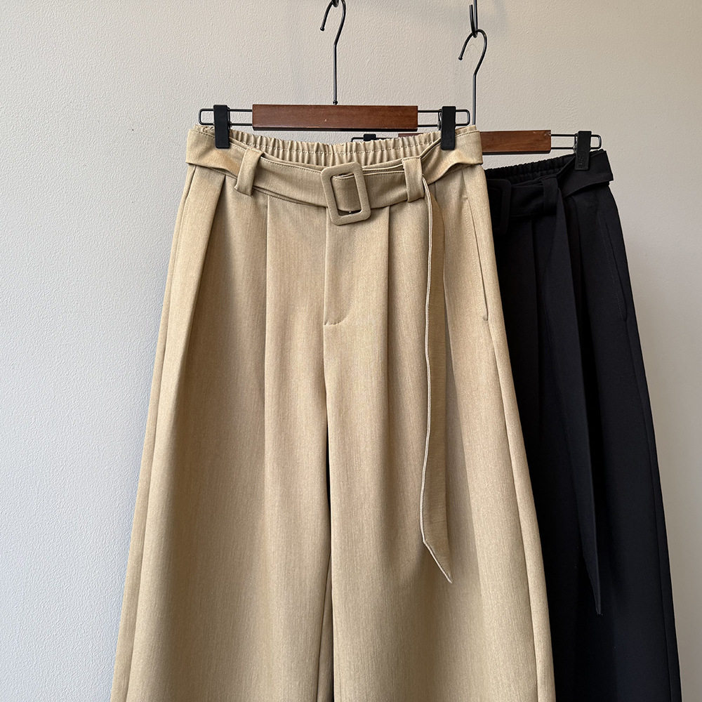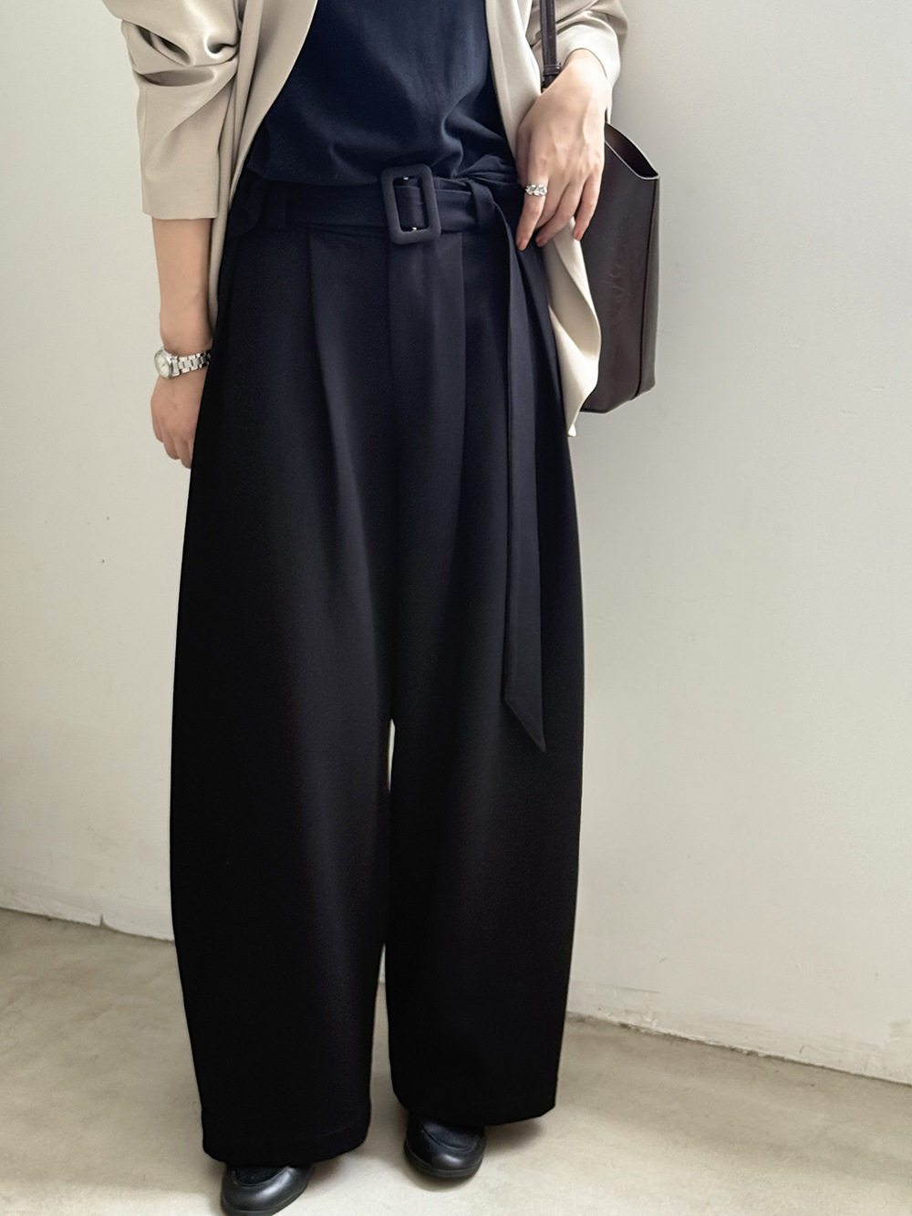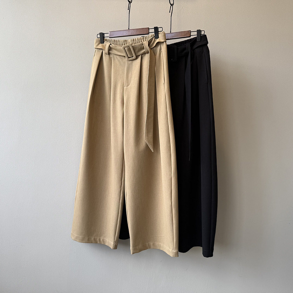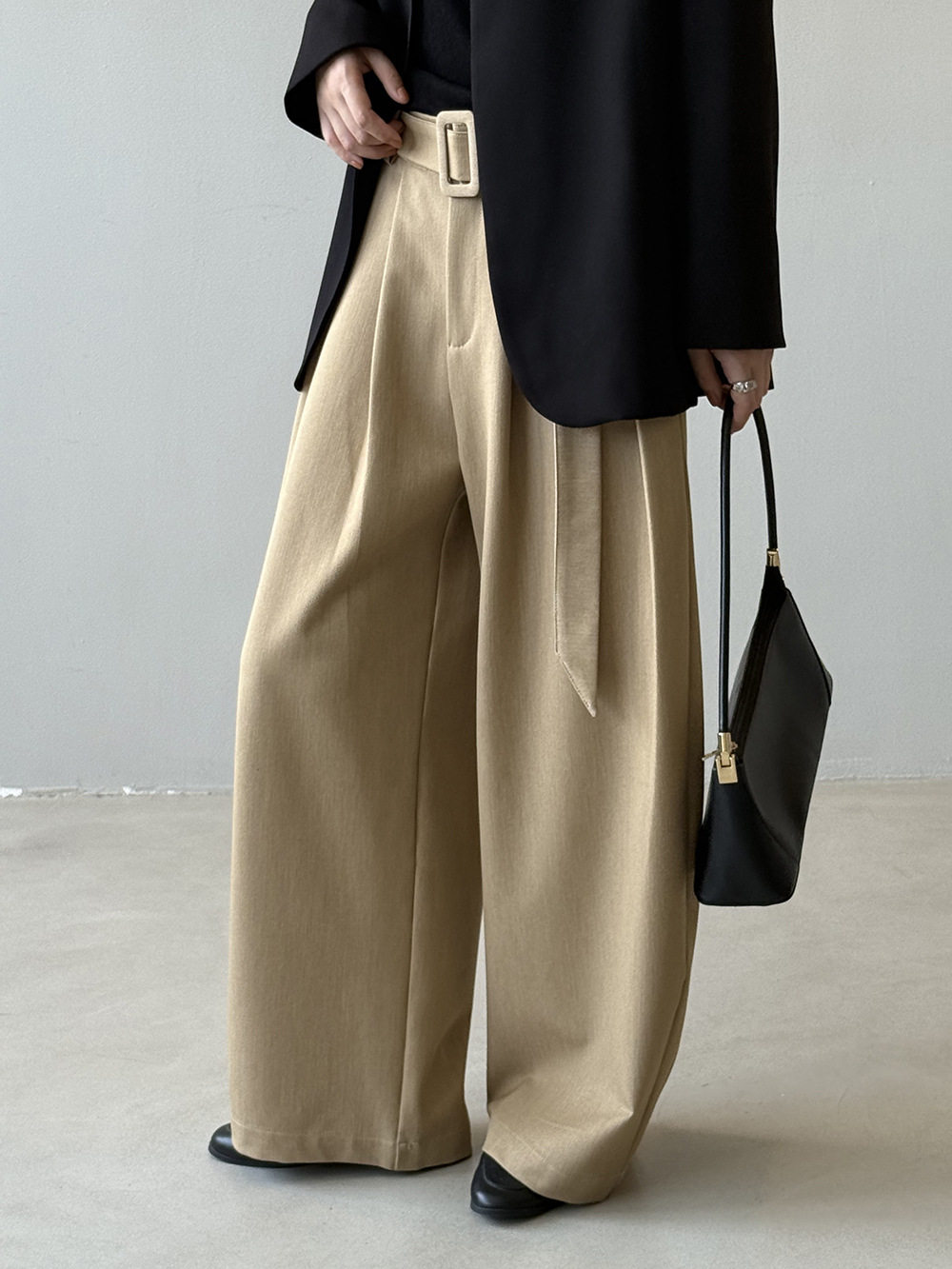 【ボトムス】レトロ ベルト付き ワイドパンツ レディース 春秋 高ウエスト ゆったり スリム見え ドレープ感 カジュアルパンツ【JZシリーズ】