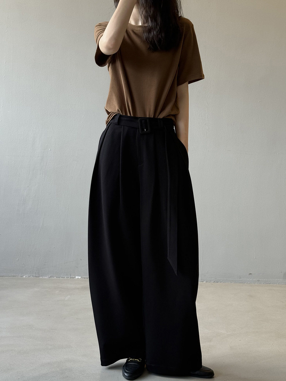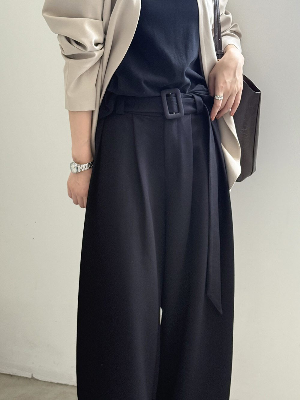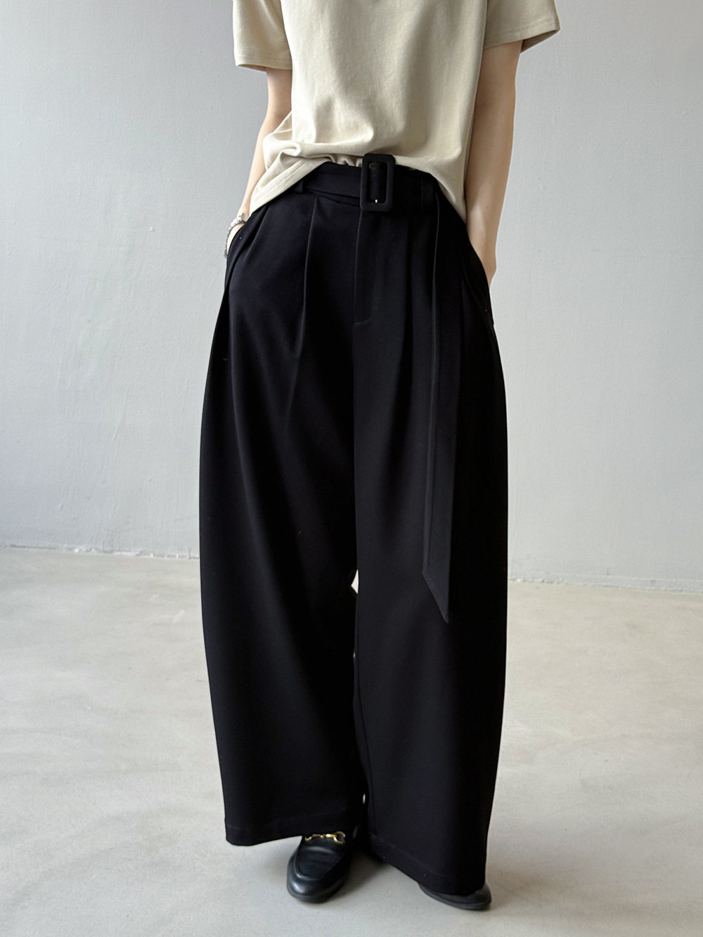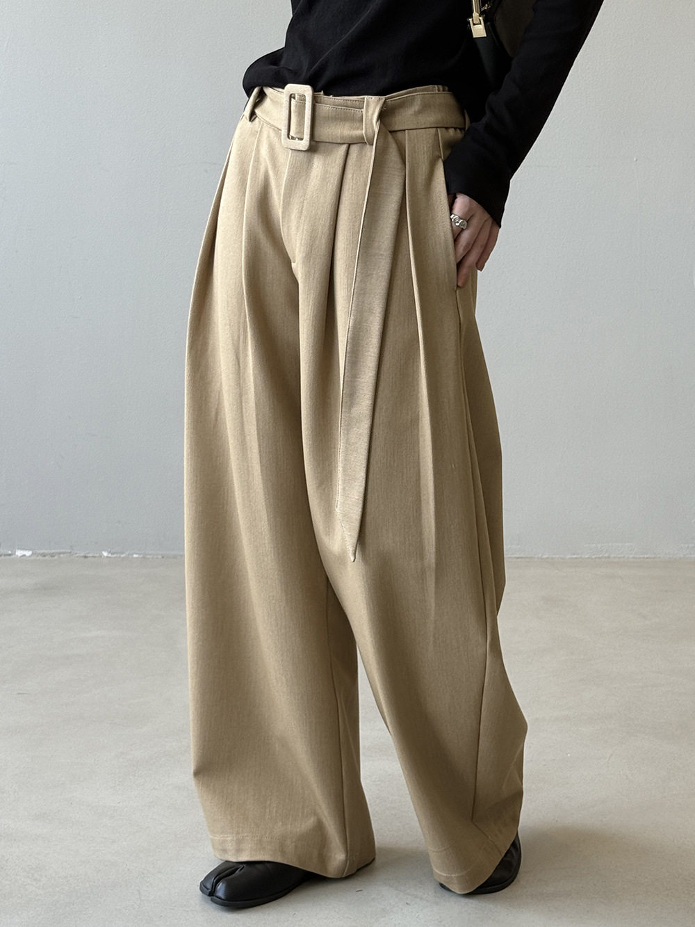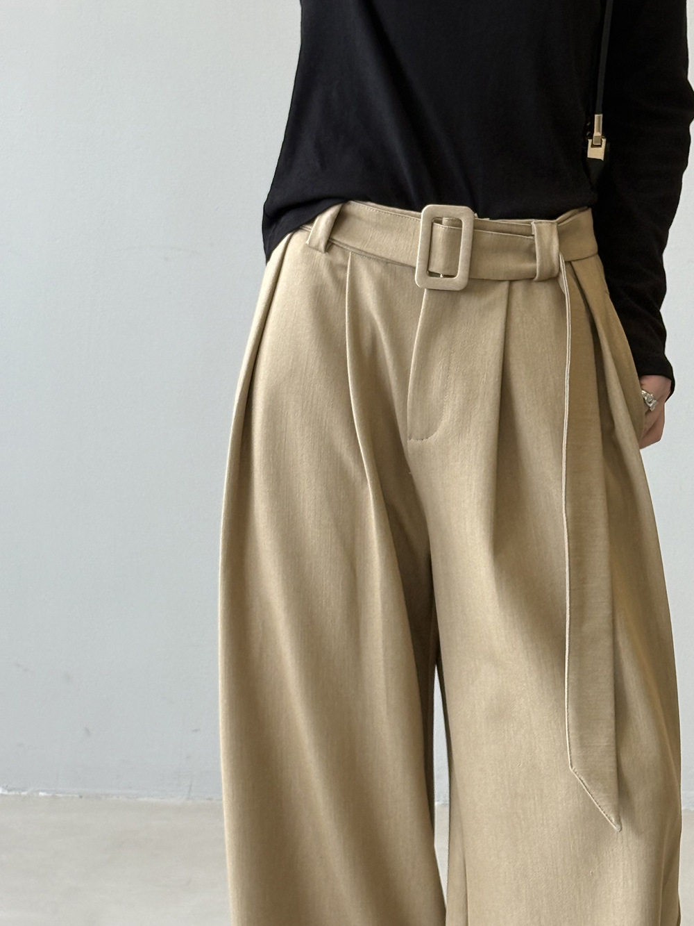 【ボトムス】レトロ ベルト付き ワイドパンツ レディース 春秋 高ウエスト ゆったり スリム見え ドレープ感 カジュアルパンツ【JZシリーズ】