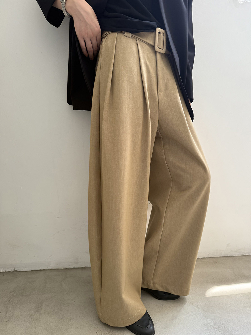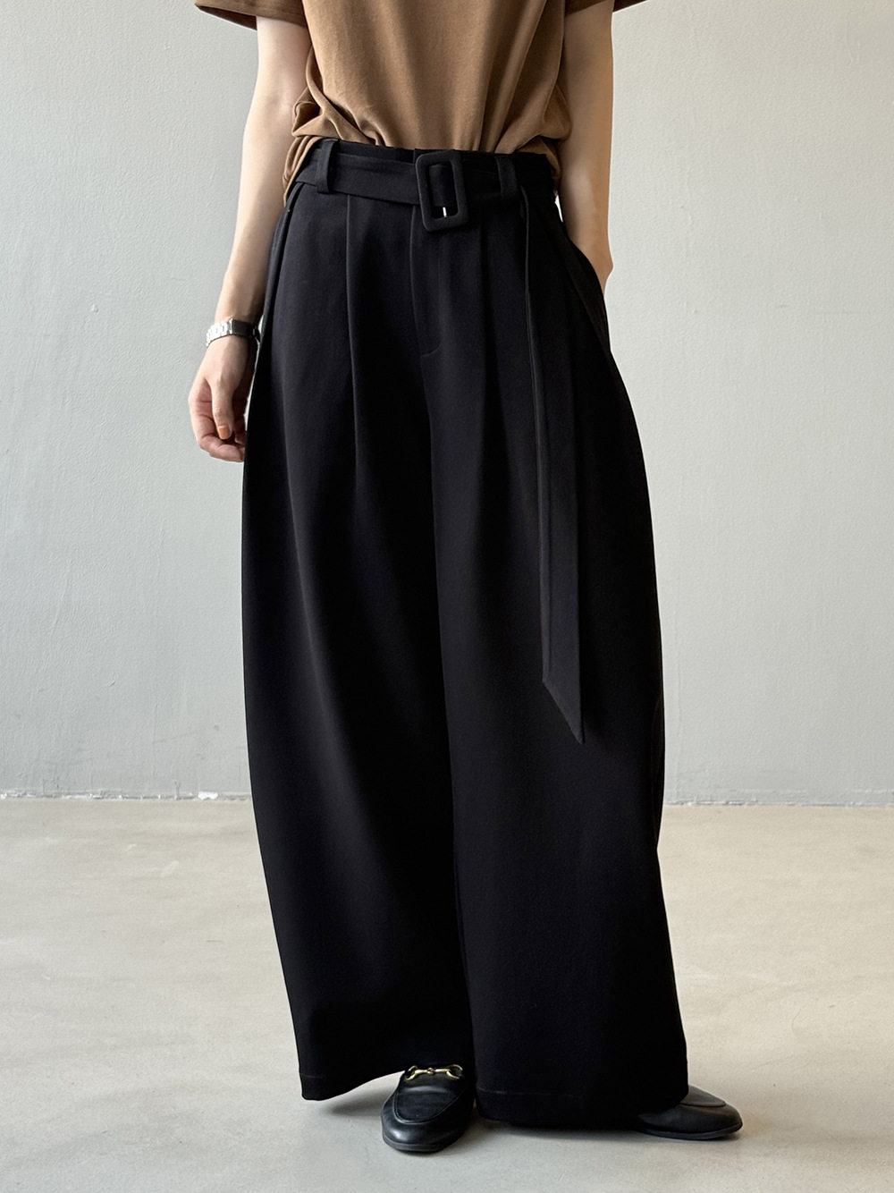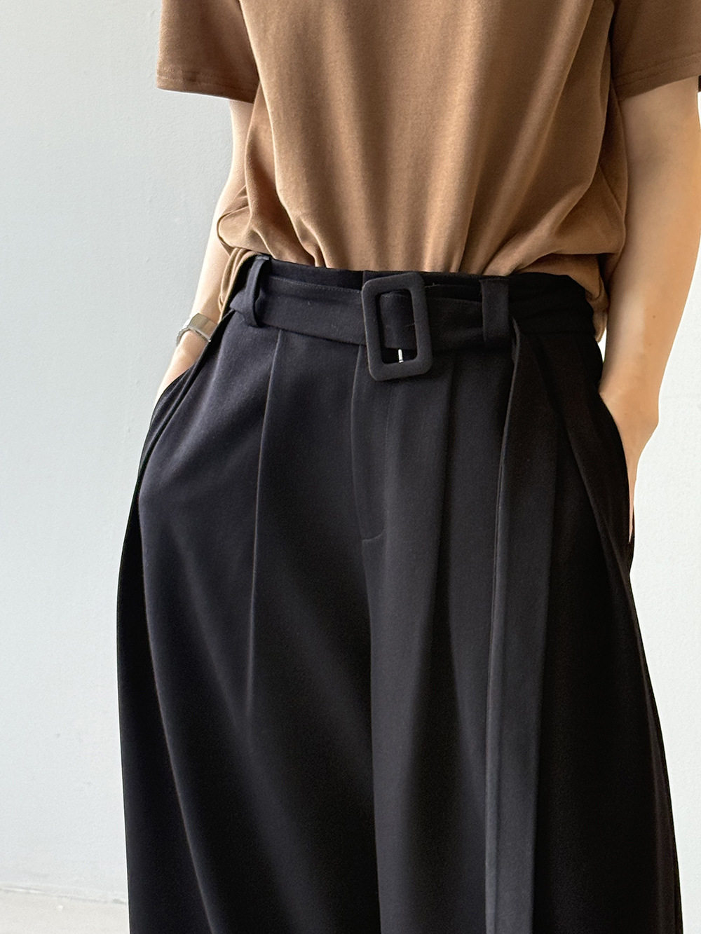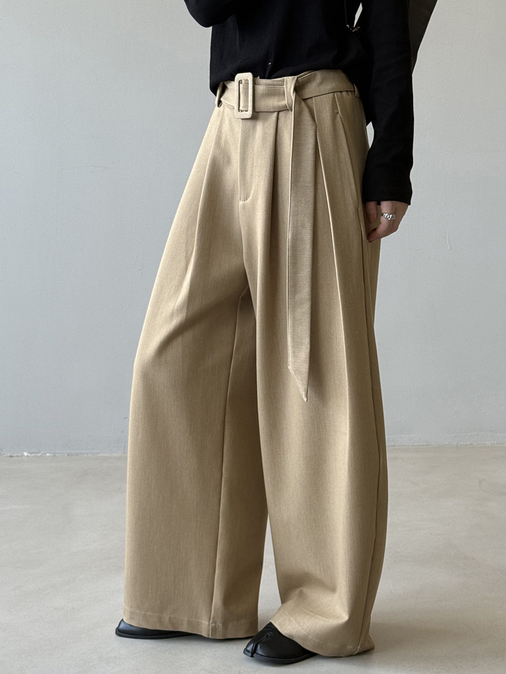 【ボトムス】レトロ ベルト付き ワイドパンツ レディース 春秋 高ウエスト ゆったり スリム見え ドレープ感 カジュアルパンツ【JZシリーズ】