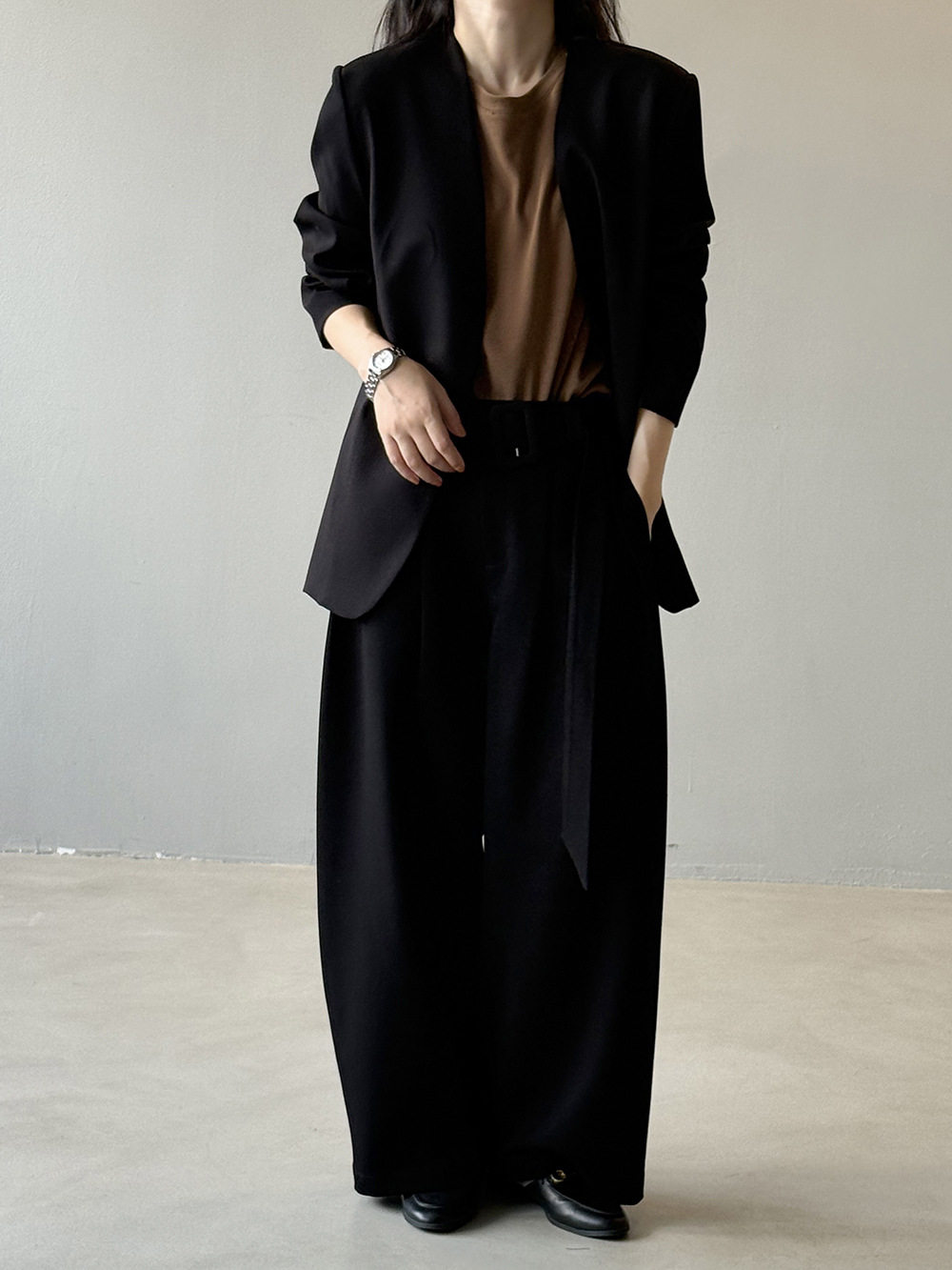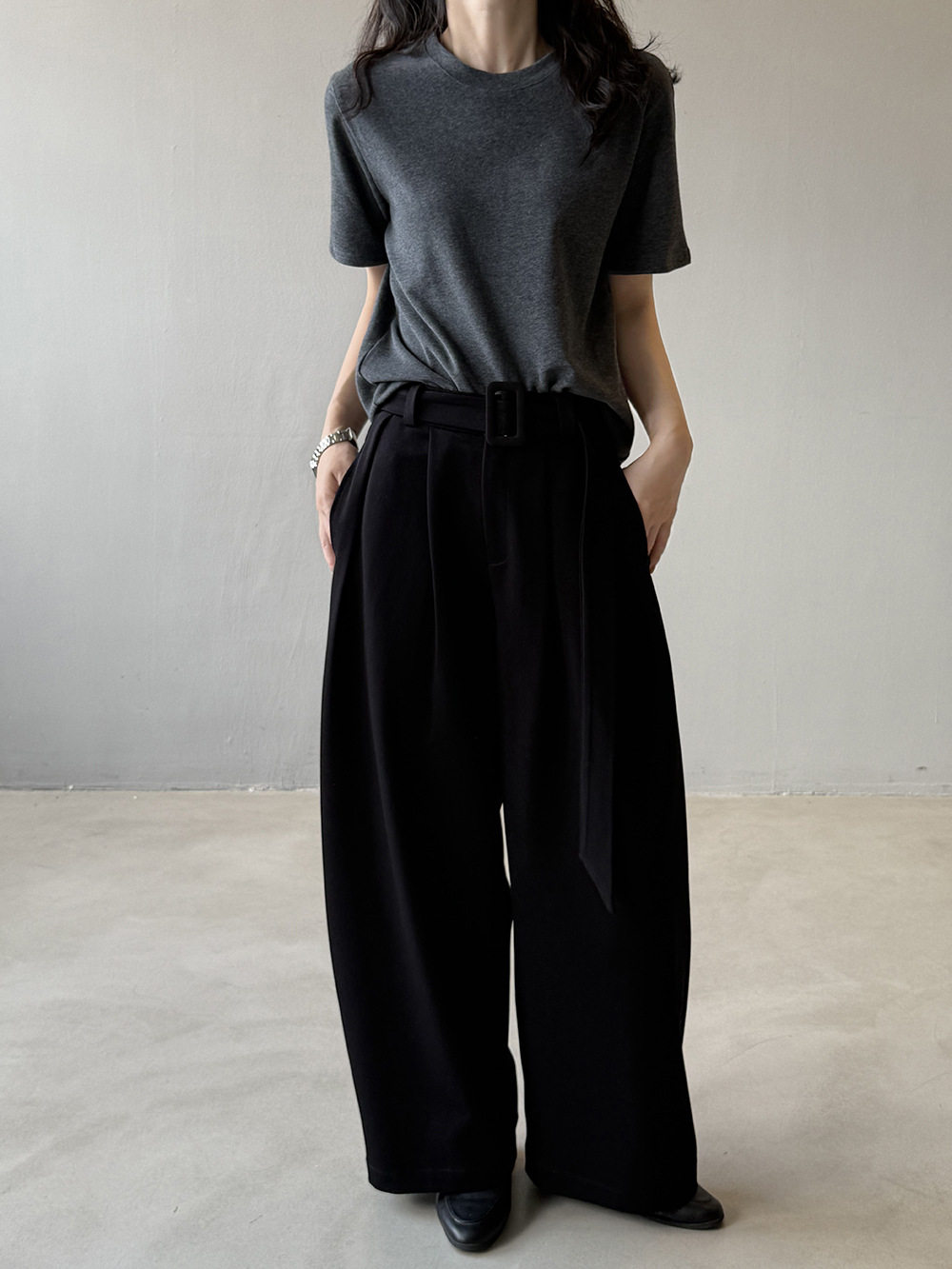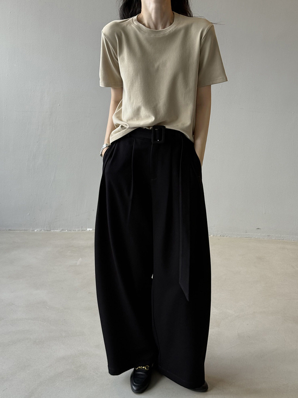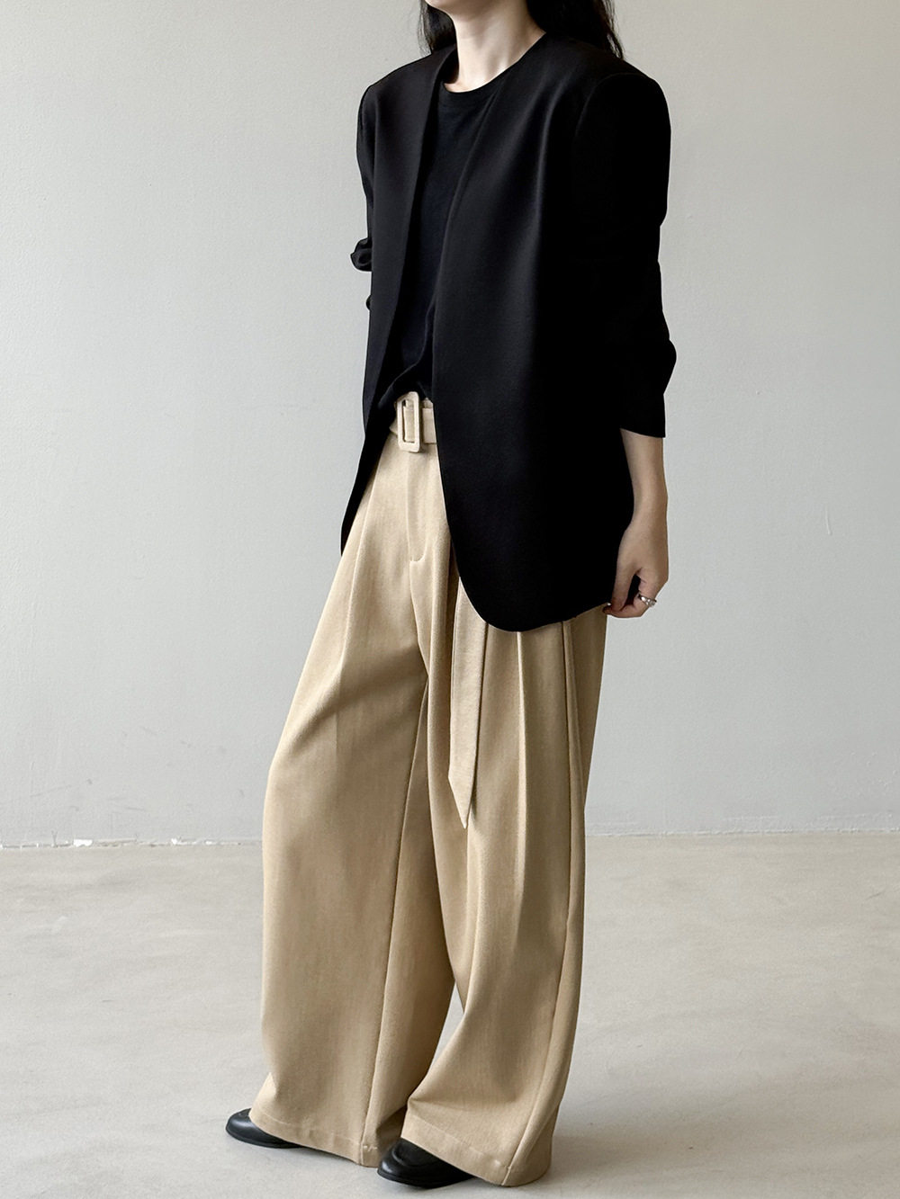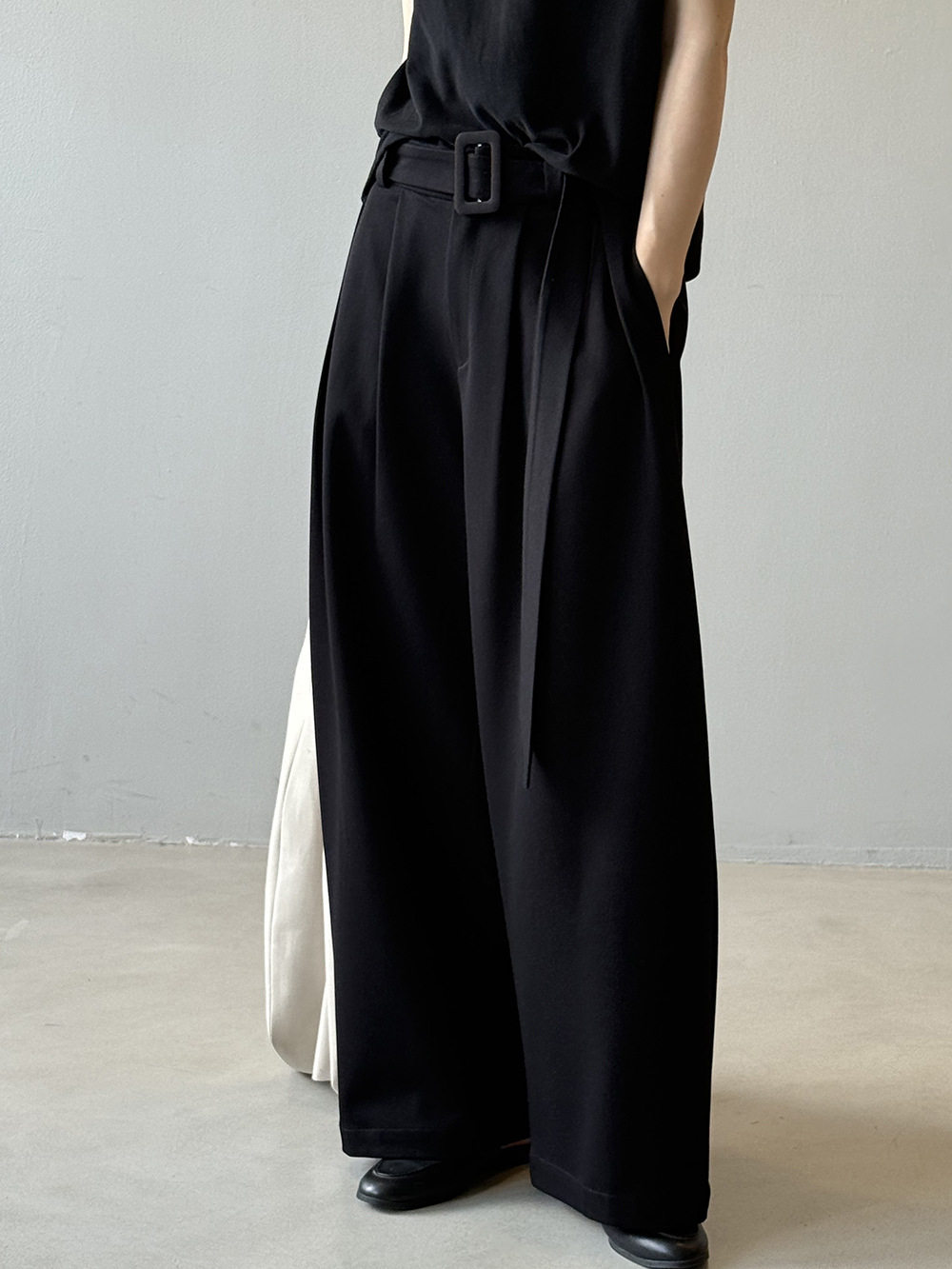 【ボトムス】レトロ ベルト付き ワイドパンツ レディース 春秋 高ウエスト ゆったり スリム見え ドレープ感 カジュアルパンツ【JZシリーズ】