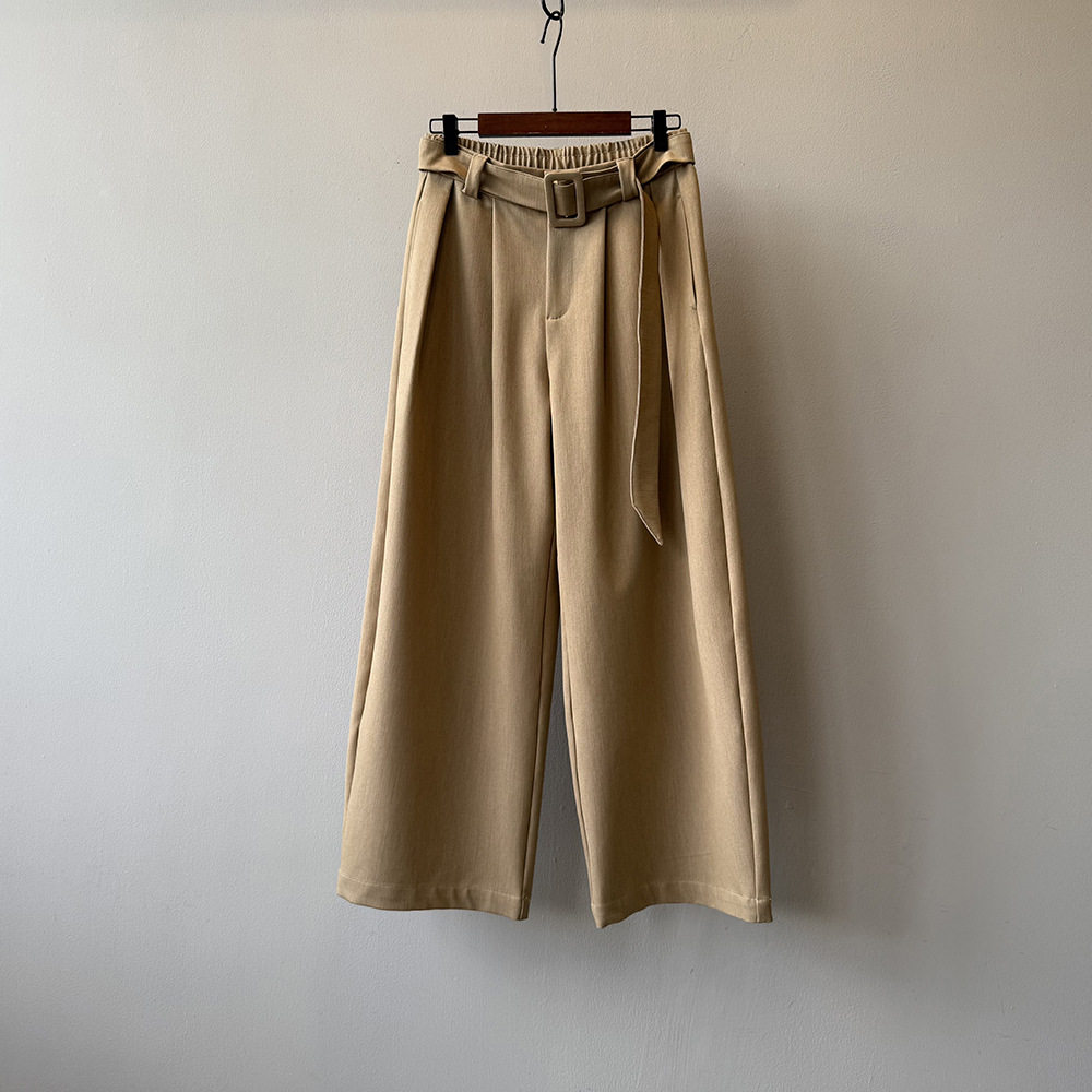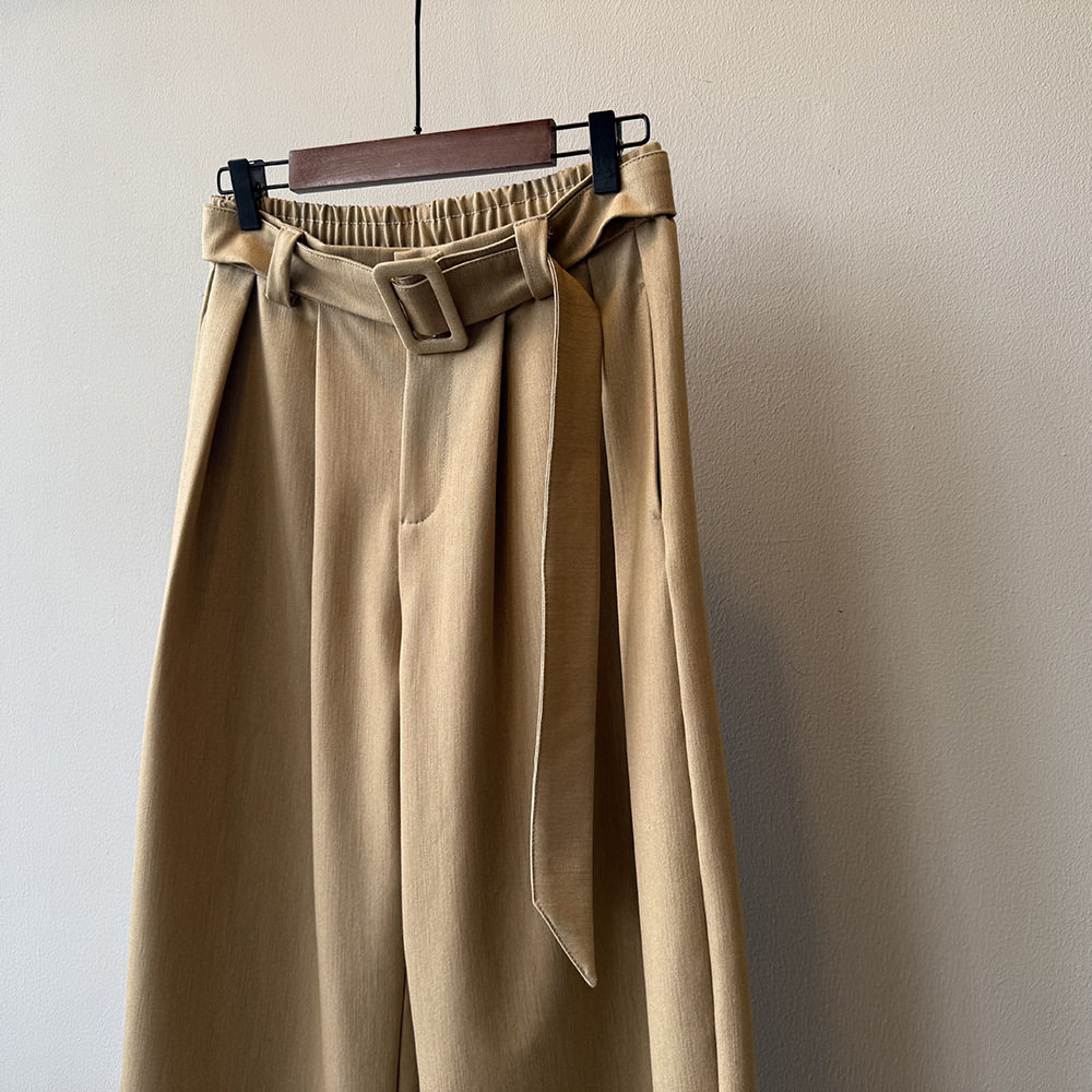 【商品名】【ボトムス】レトロ ベルト付き ワイドパンツ レディース 春秋 高ウエスト ゆったり スリム見え ドレープ感 カジュアルパンツ【JZシリーズ】