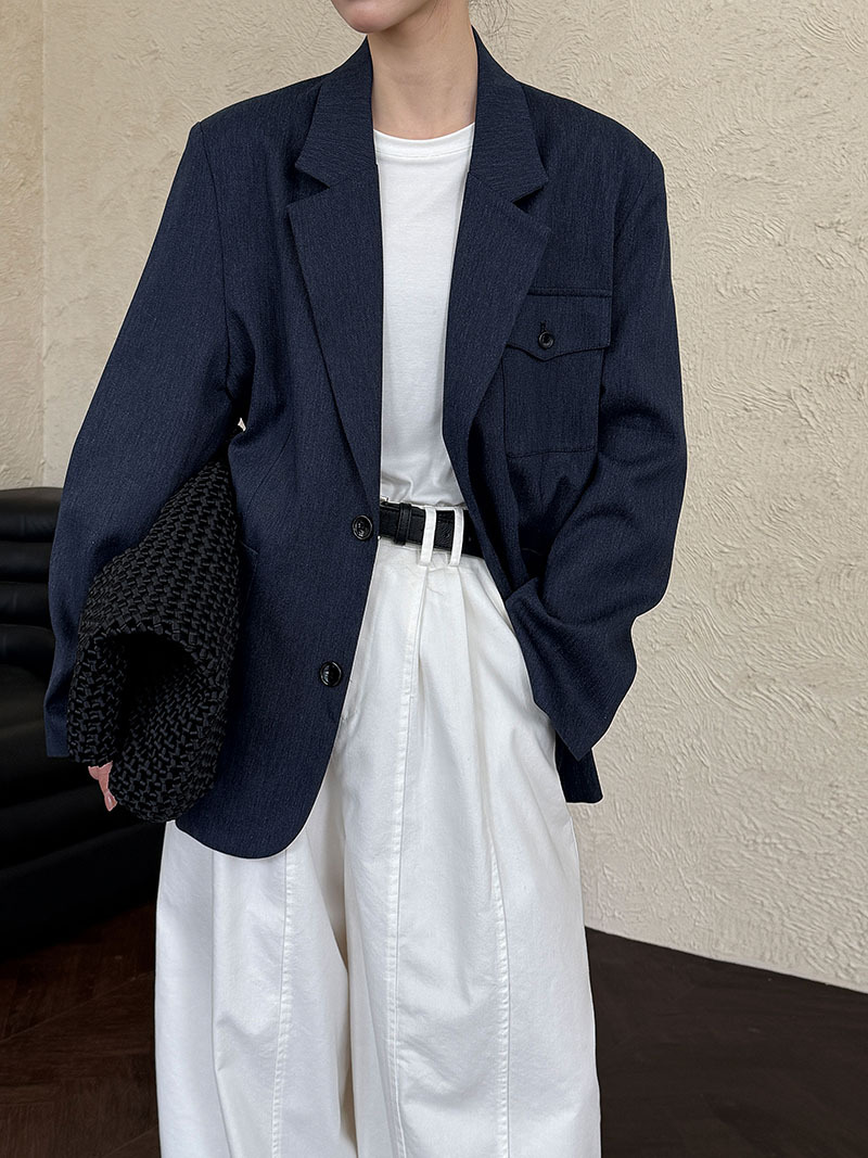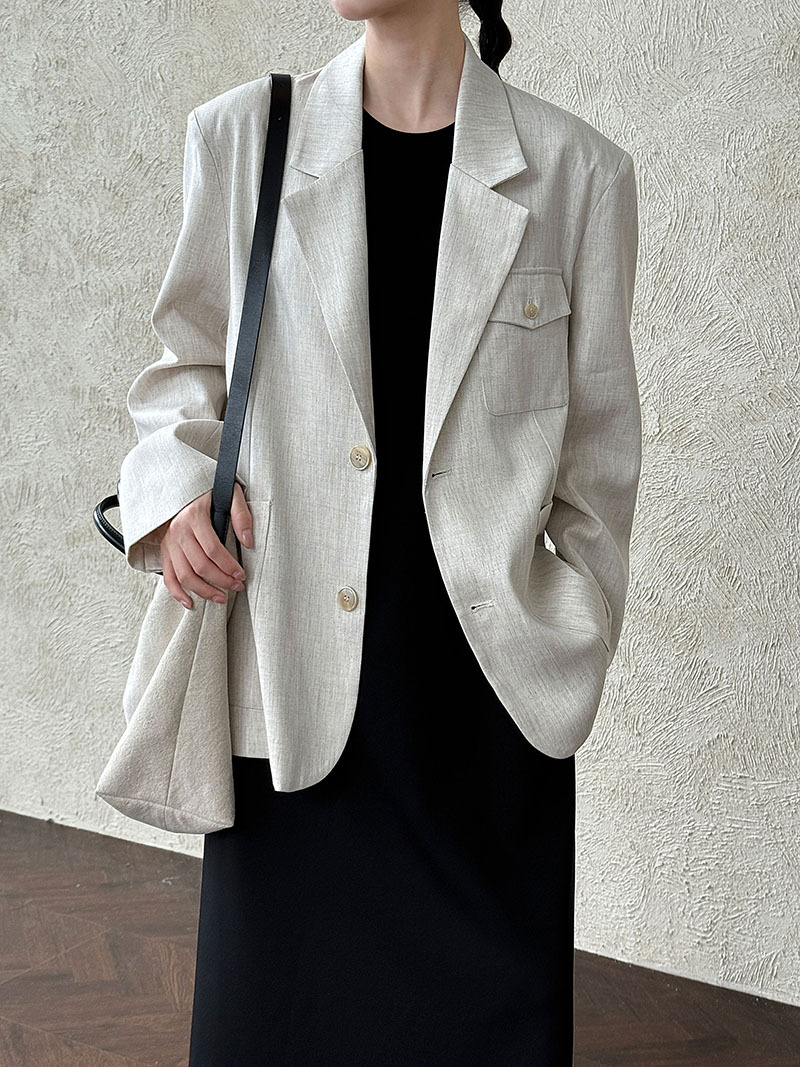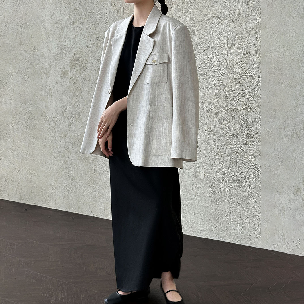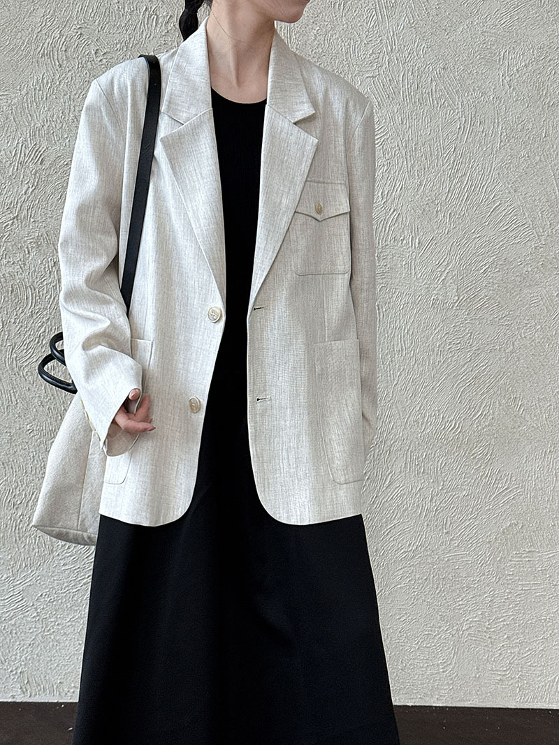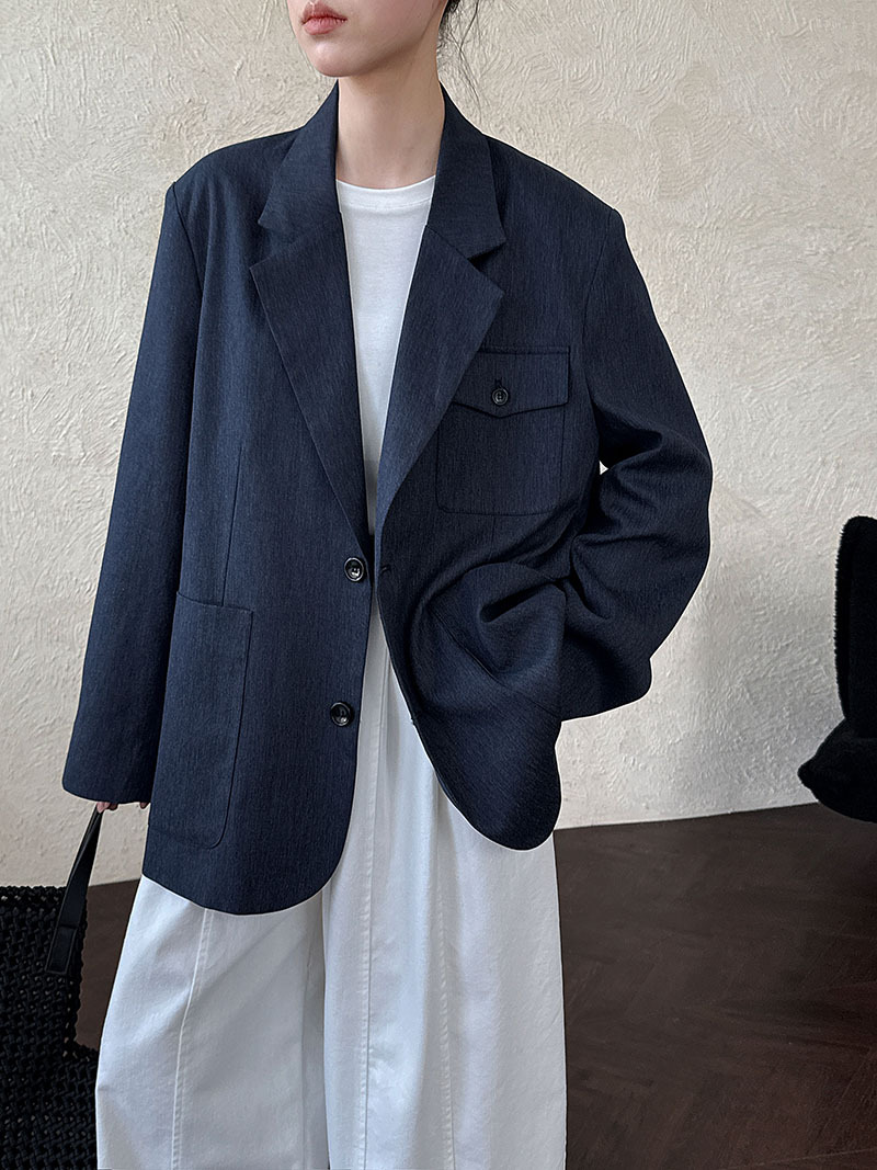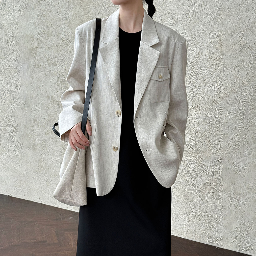 【アウター】フレンチ風 ポケット付きスーツジャケット レディース 秋新作 オーバーサイズ カジュアルアウター【SNシリーズ】