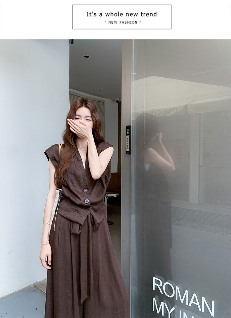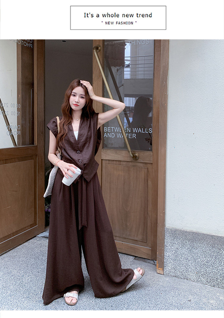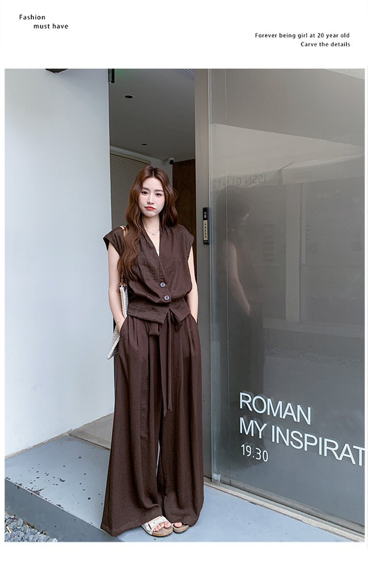 【商品名】2点セット!【セットアップ】ノースリーブベスト+ワイドパンツ 上下セット 夏 上品セット【JZシリーズ】