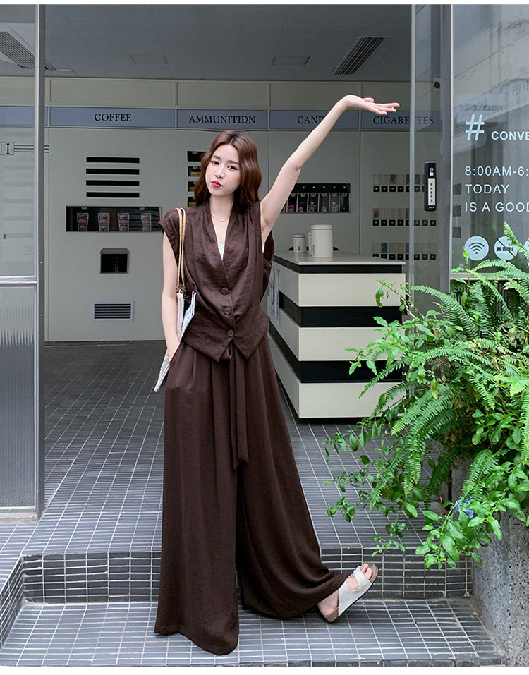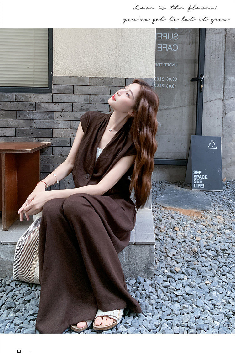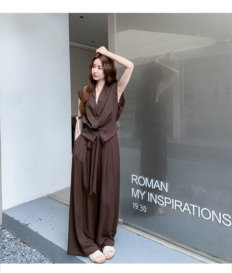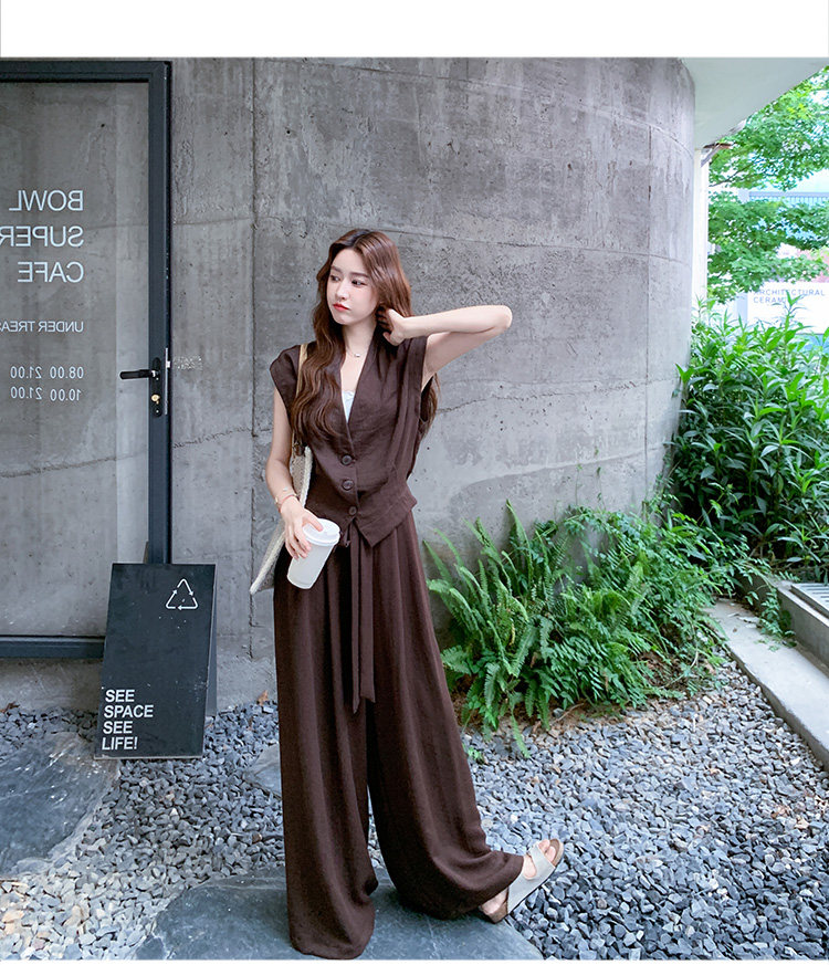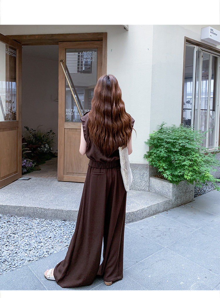 2点セット!【セットアップ】ノースリーブベスト+ワイドパンツ 上下セット 夏 上品セット【JZシリーズ】