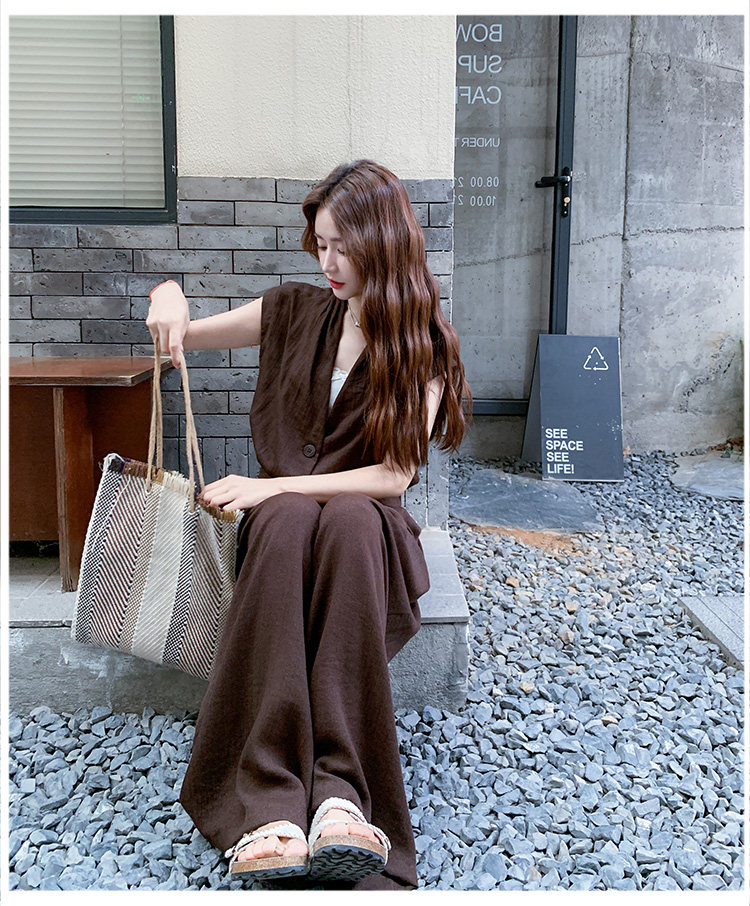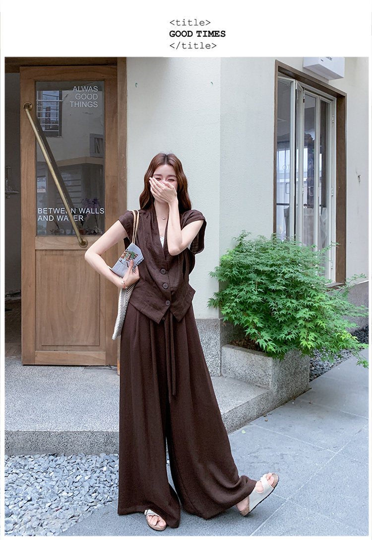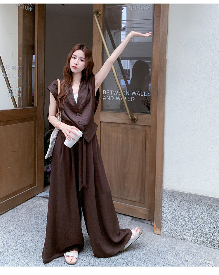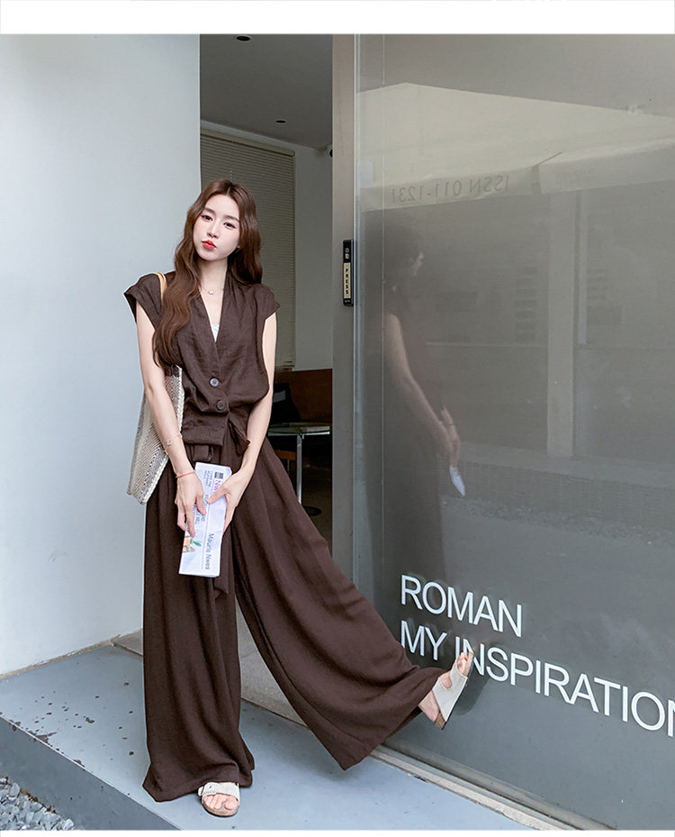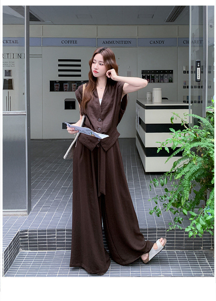 2点セット!【セットアップ】ノースリーブベスト+ワイドパンツ 上下セット 夏 上品セット【JZシリーズ】
