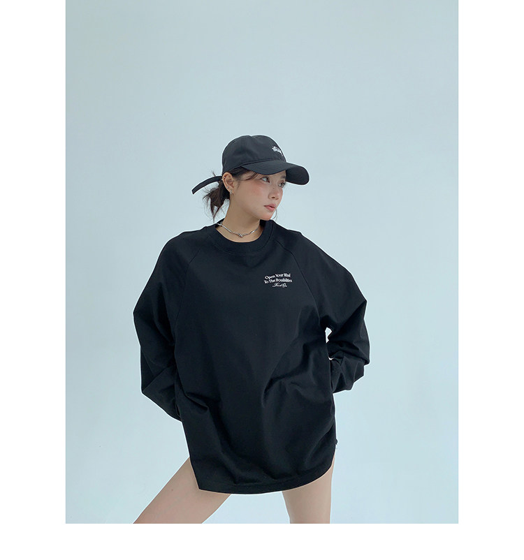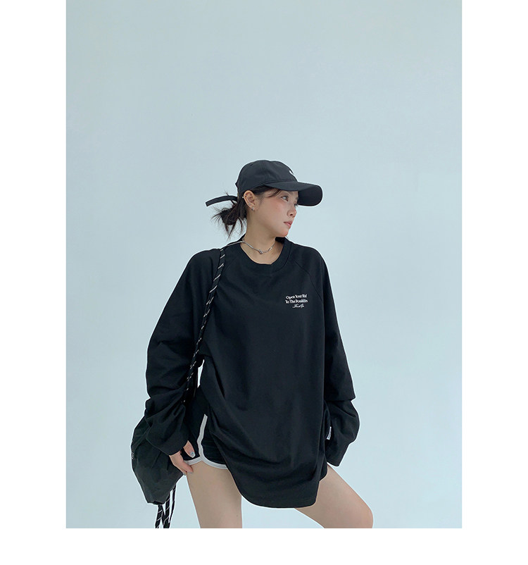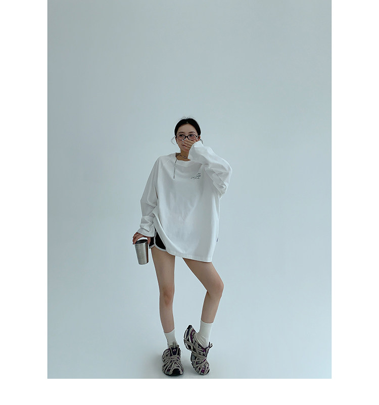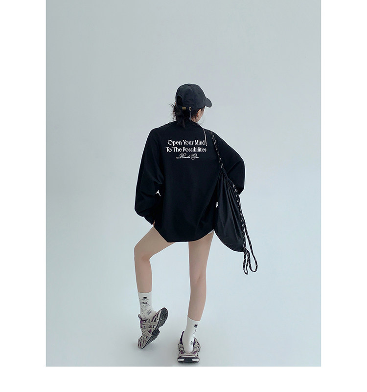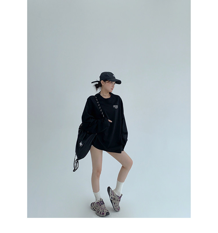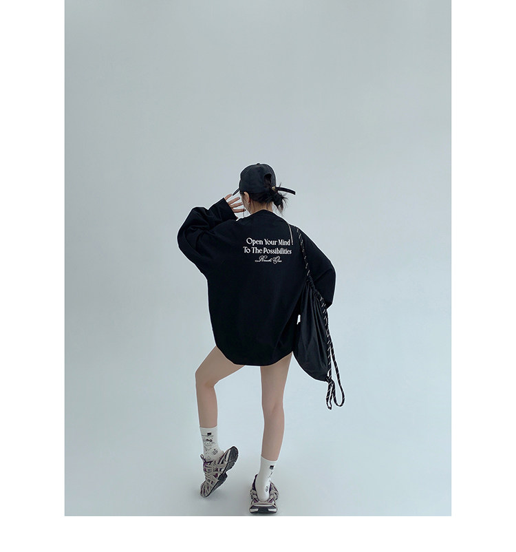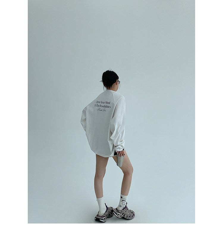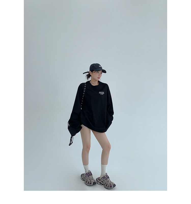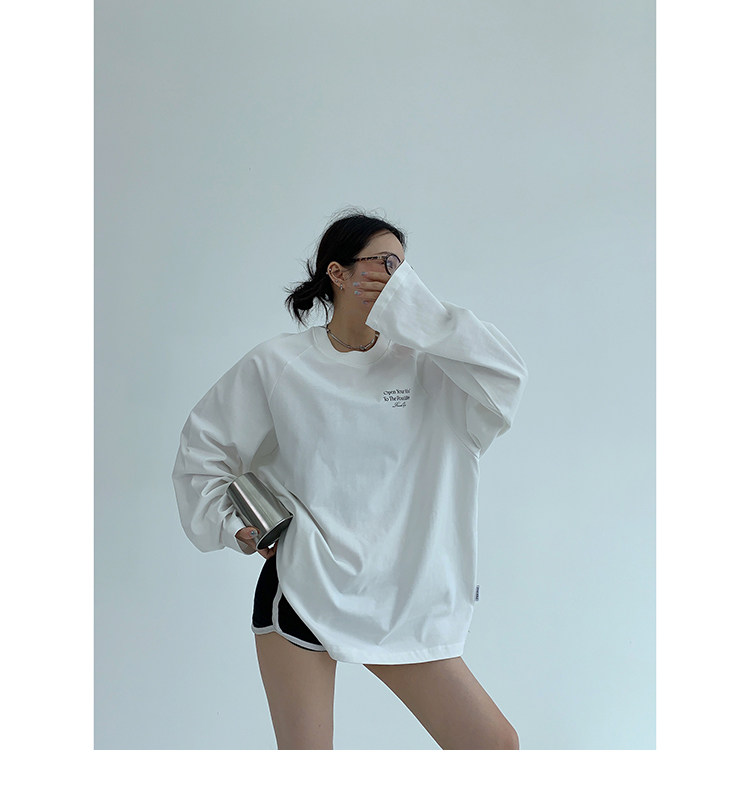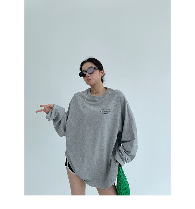 【トップス】リラックス感&ラフスタイル コットン長袖Tシャツ レタープリント入り【FCシリーズ】