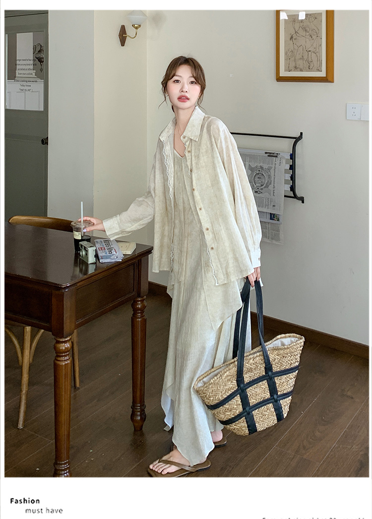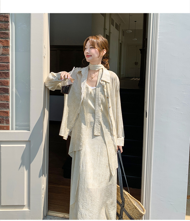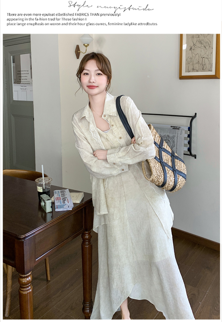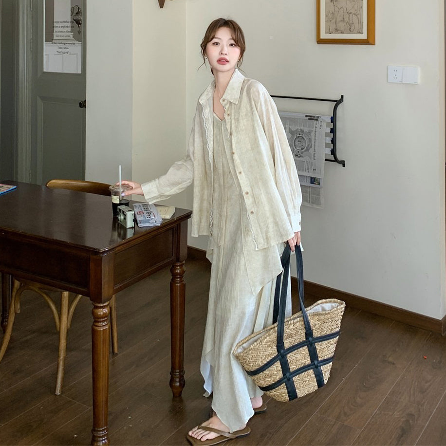 2点セット!【セットアップ】フレンチ エレガント レースシャツ+キャミワンピースセット レディース 春夏秋 甘めスタイル ユニークで美しい 2点セット【JZシリーズ】