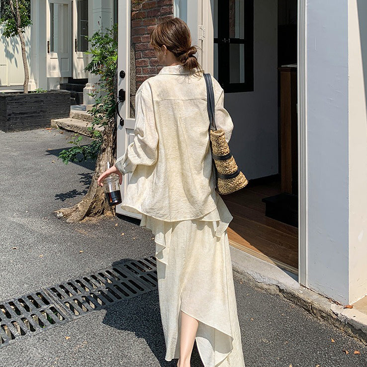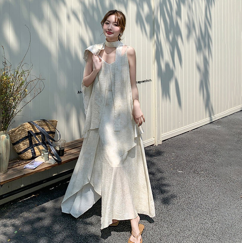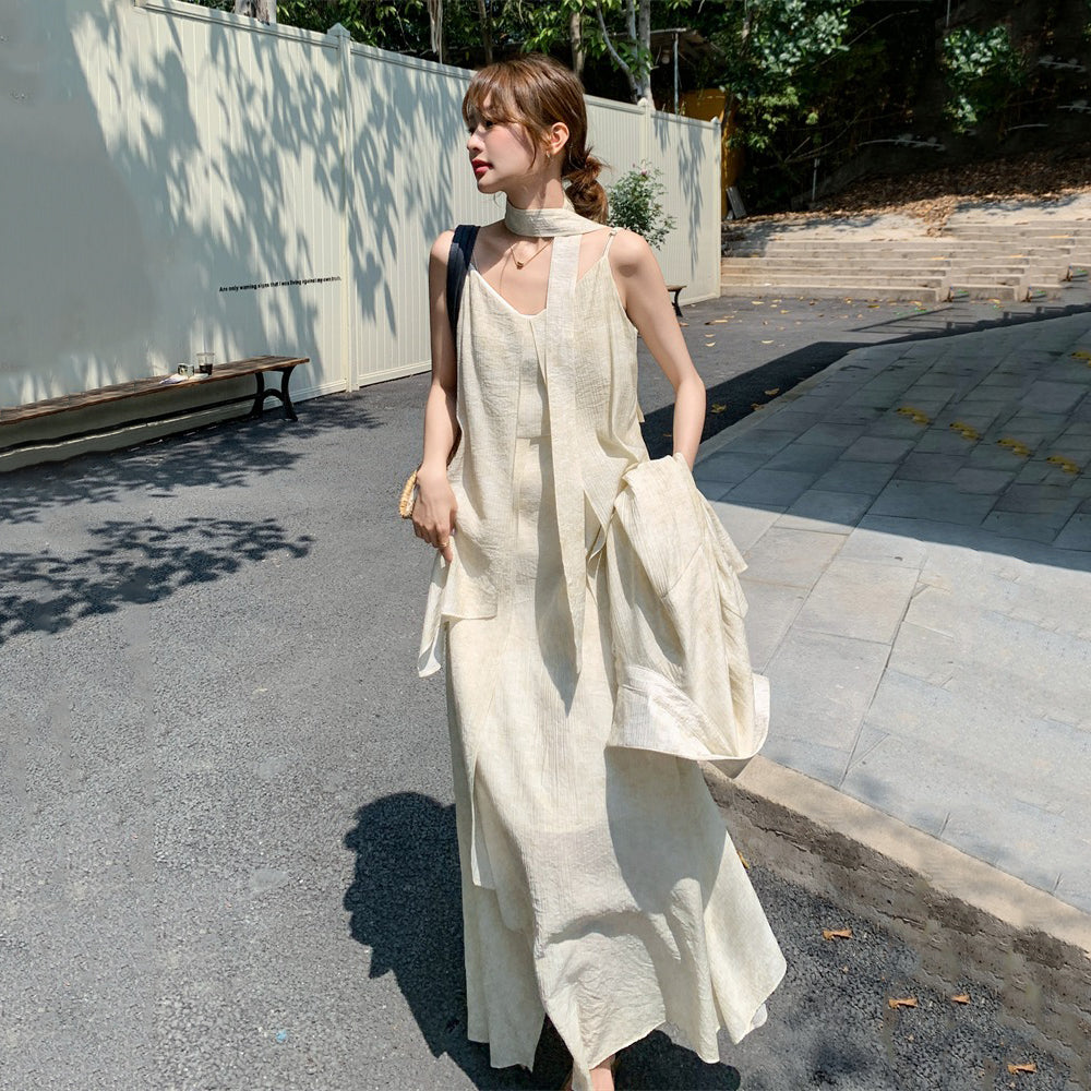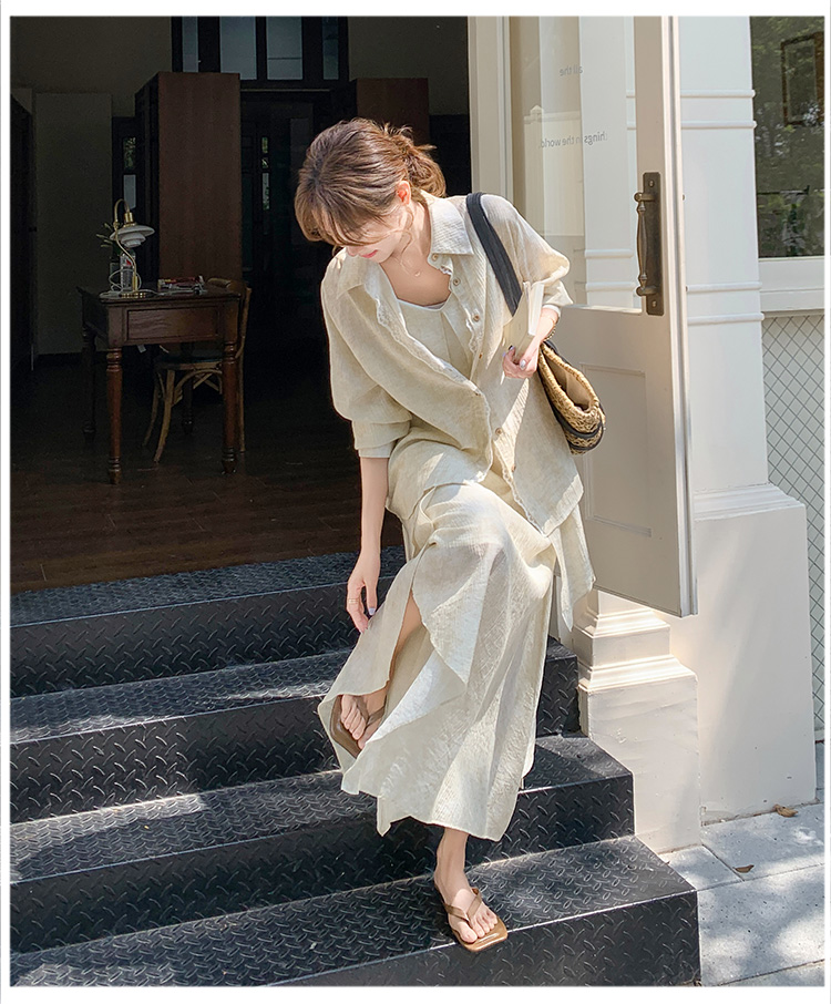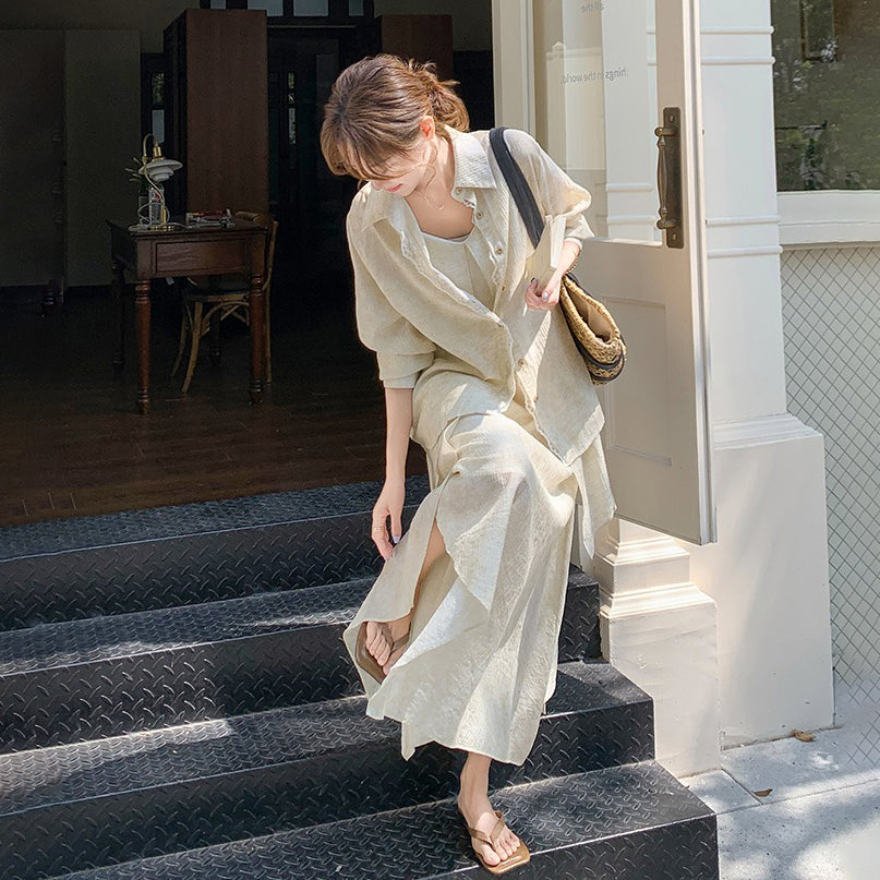 2点セット!【セットアップ】フレンチ エレガント レースシャツ+キャミワンピースセット レディース 春夏秋 甘めスタイル ユニークで美しい 2点セット【JZシリーズ】