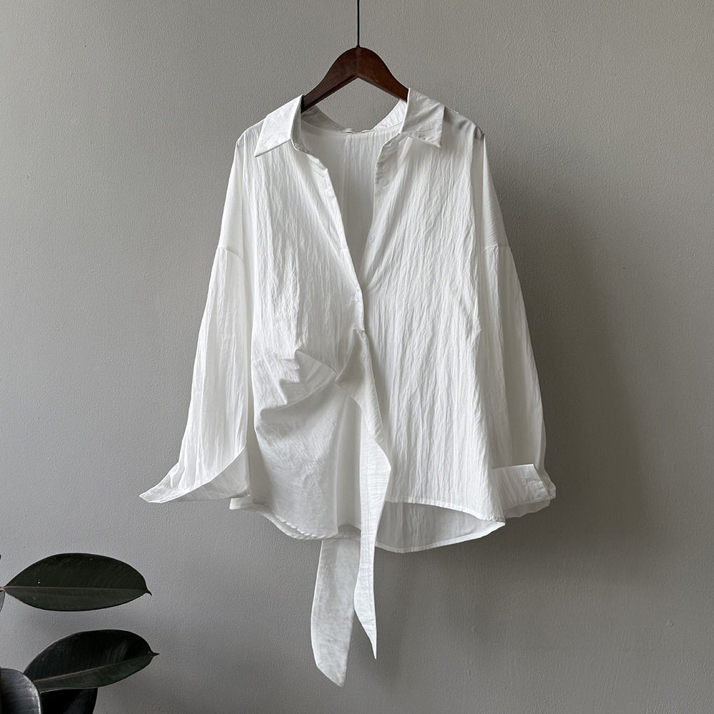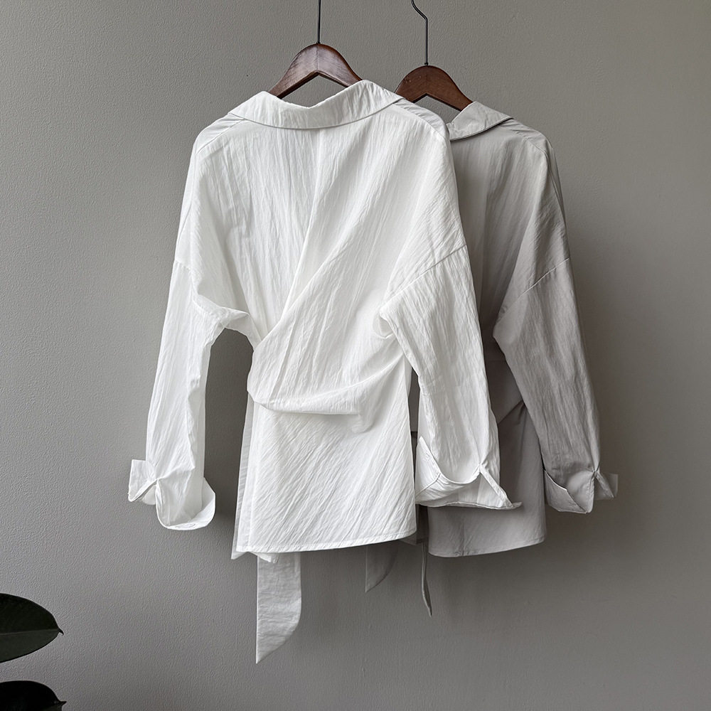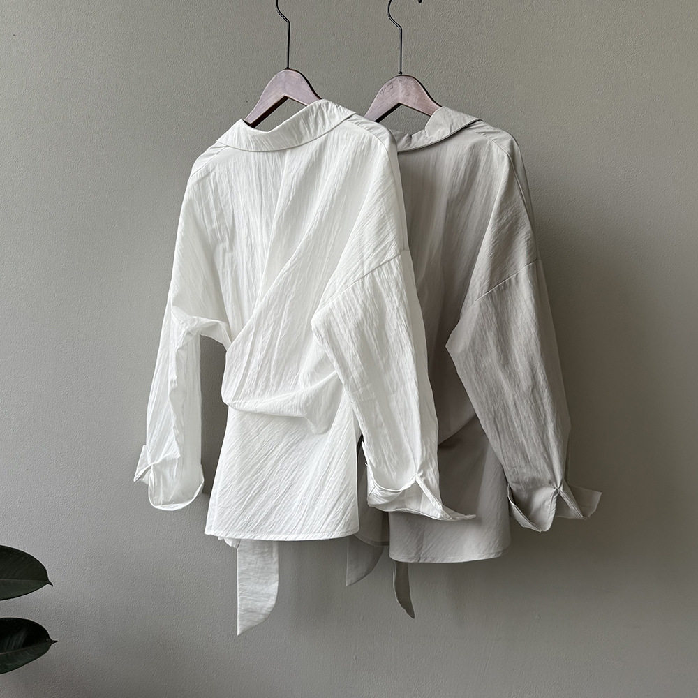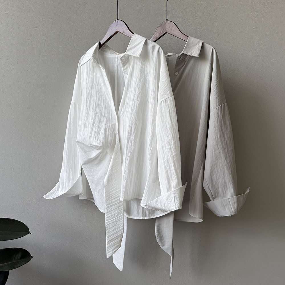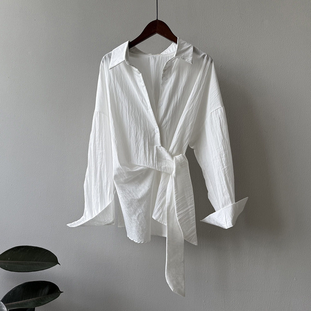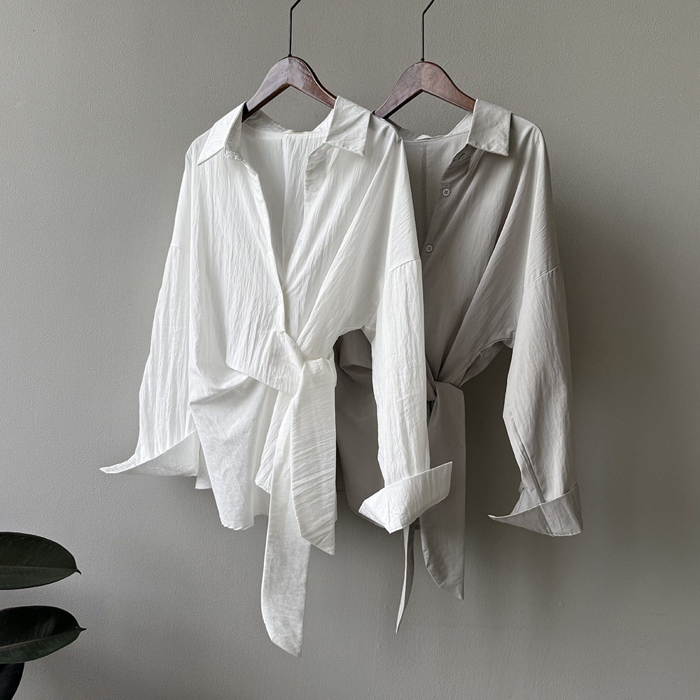 【トップス】テンセルコットン ウエストリボン シャツ レディース 秋新作 開襟シングルボタン ゆったり細見え シャツ【JZシリーズ】