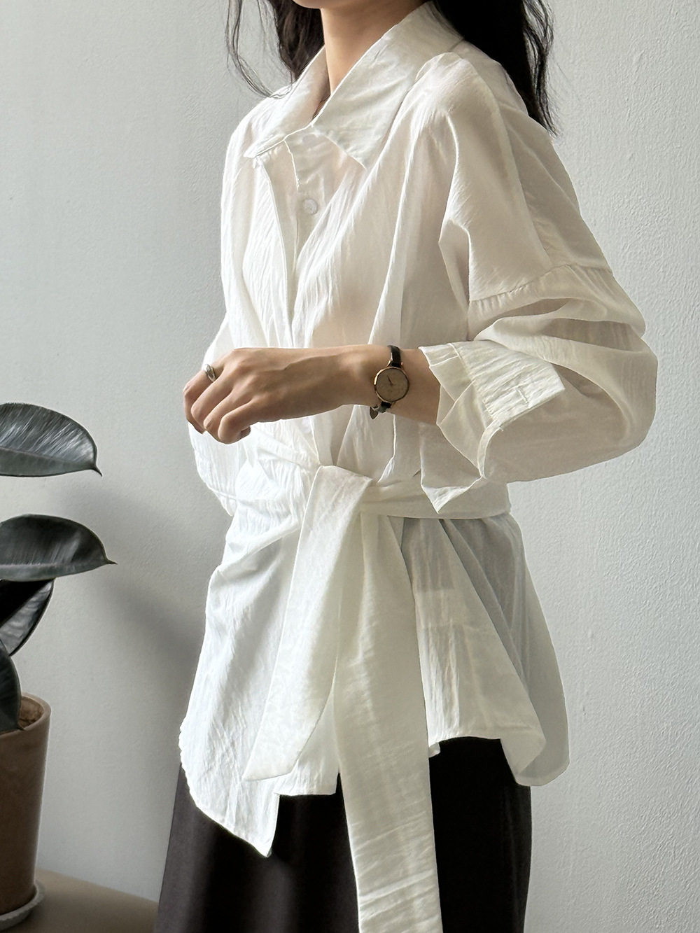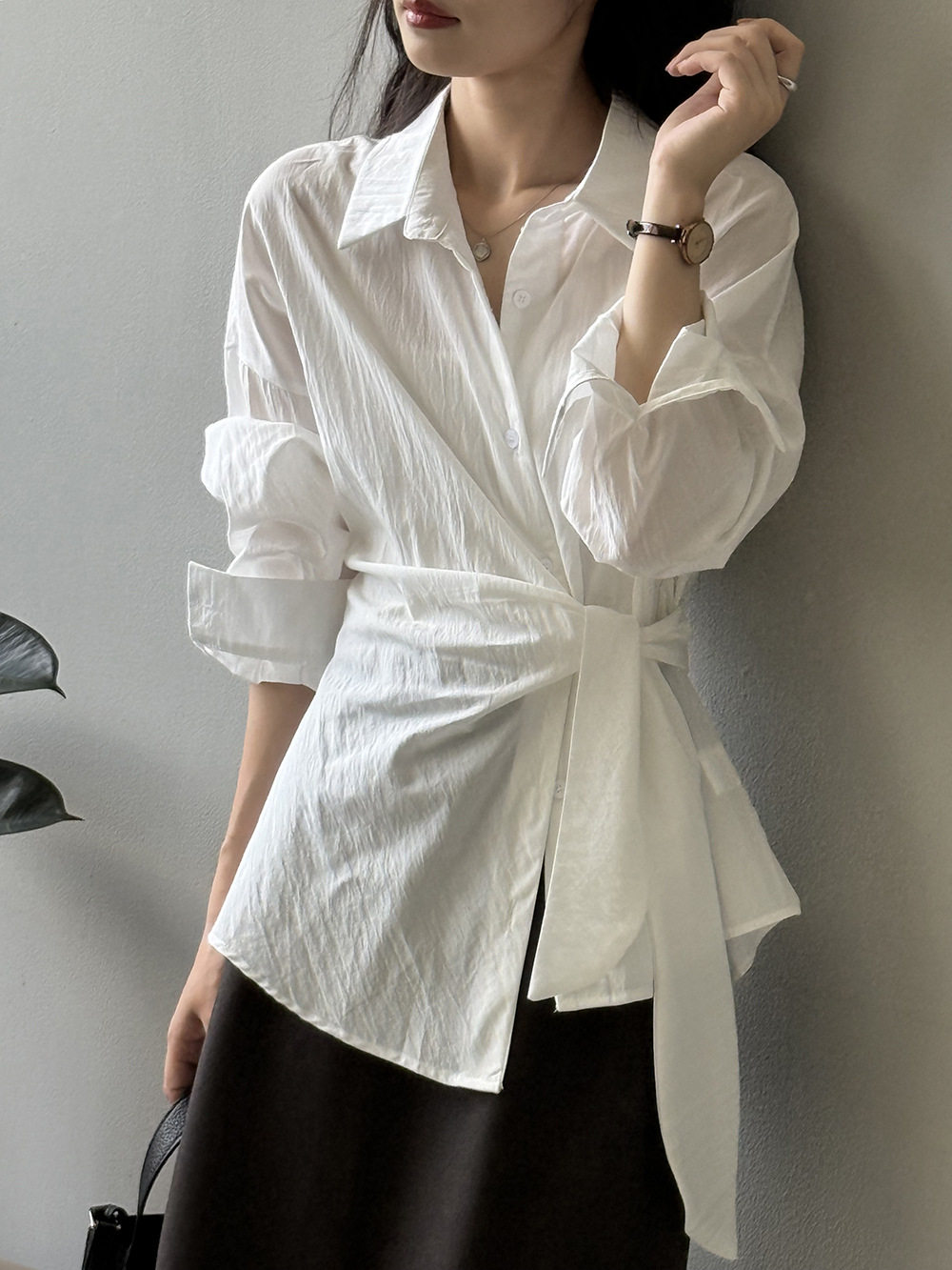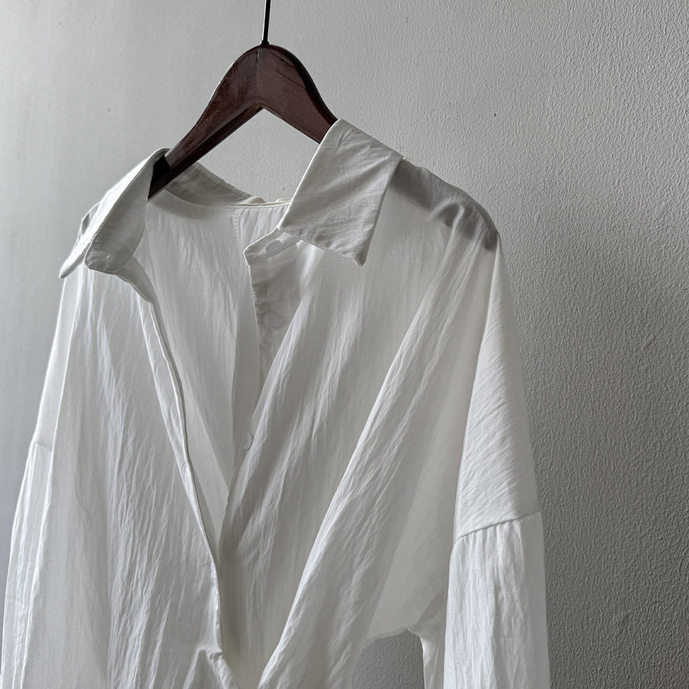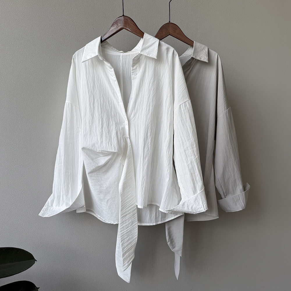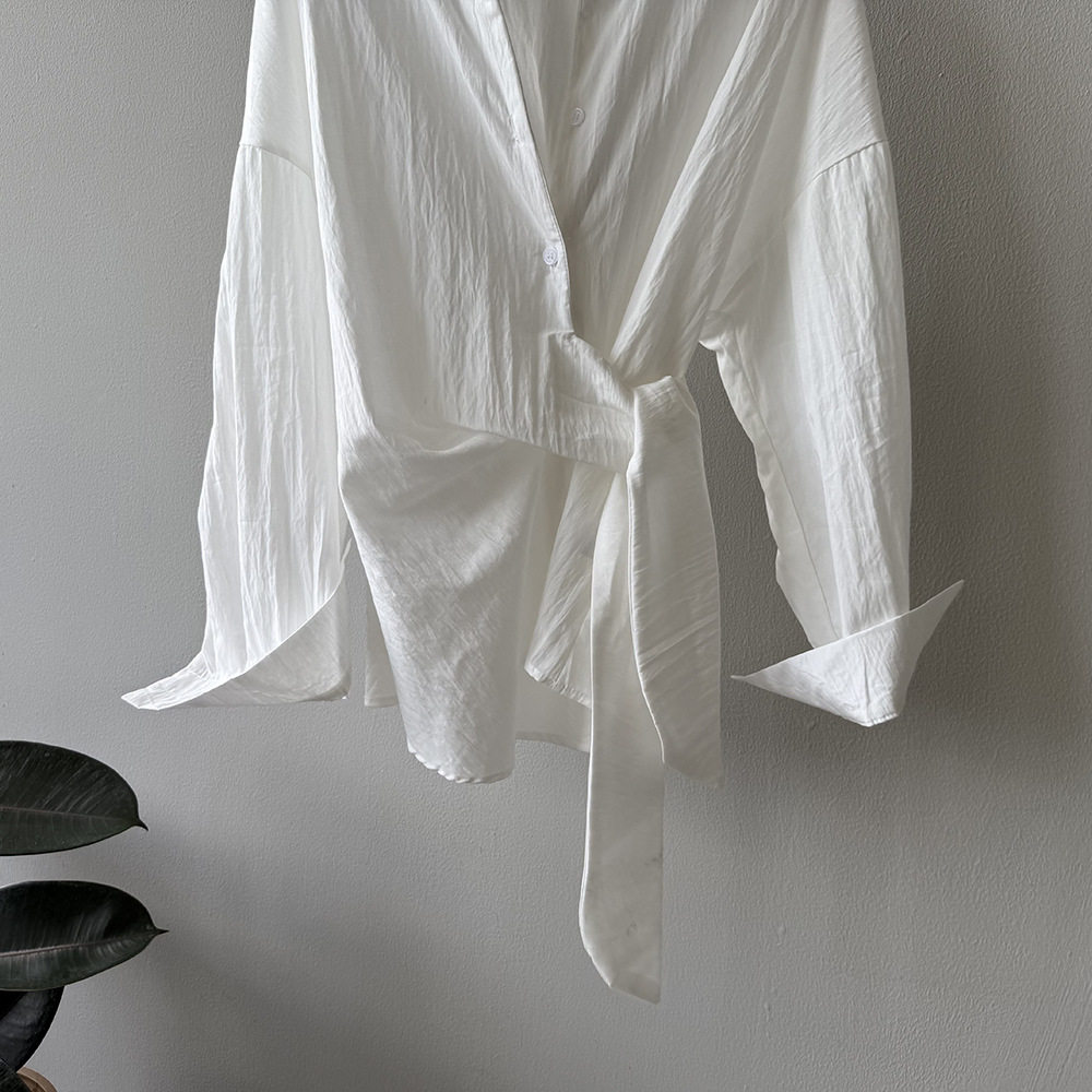 【トップス】テンセルコットン ウエストリボン シャツ レディース 秋新作 開襟シングルボタン ゆったり細見え シャツ【JZシリーズ】